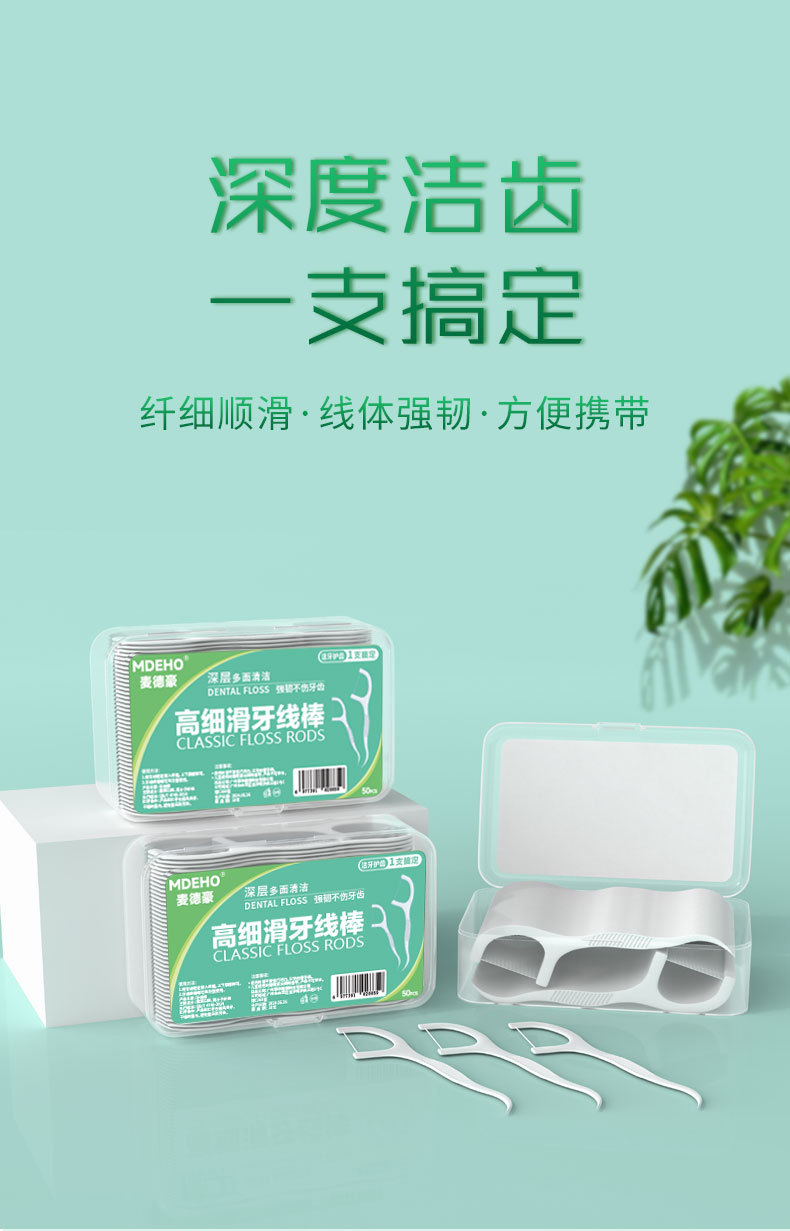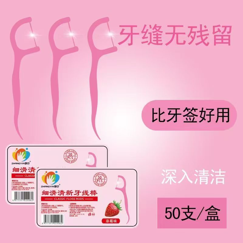 超细牙线棒50支盒装批发一次性牙线签独立包装薄荷味牙线定制logo