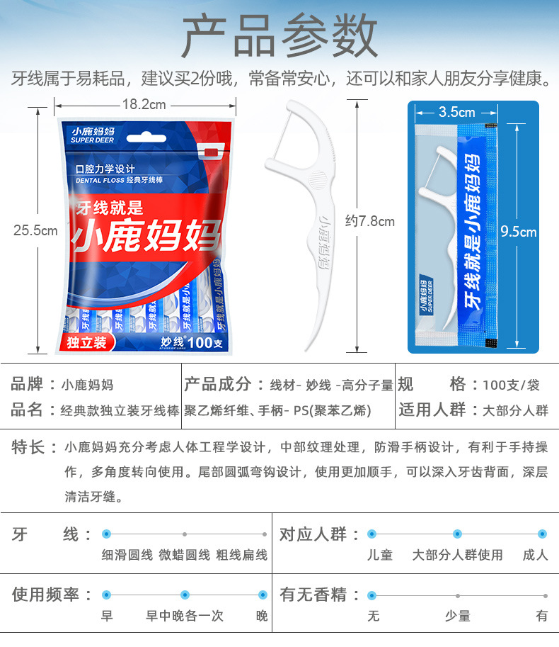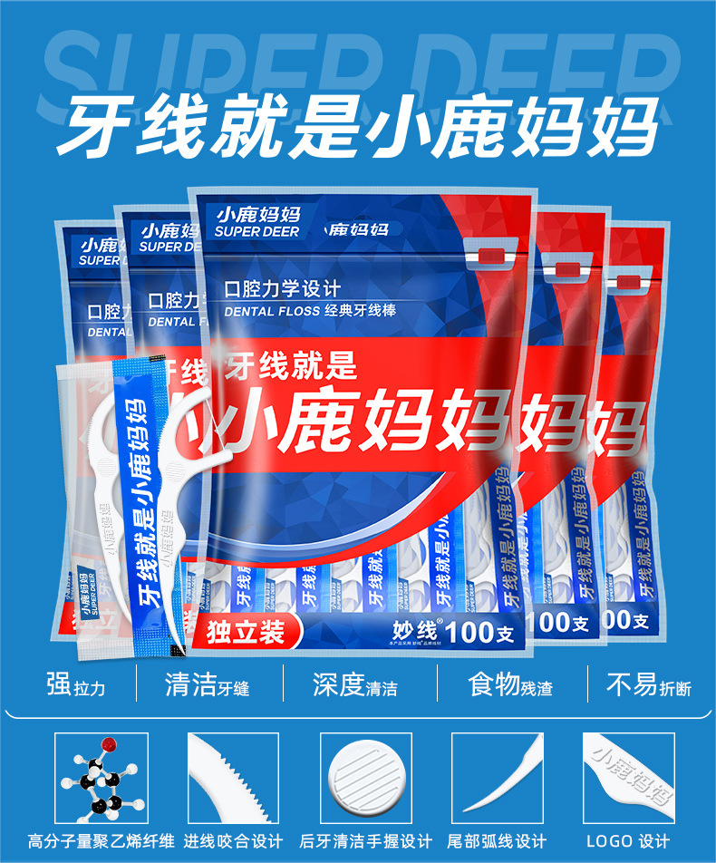 小鹿妈妈牙线 一次性牙线独立包装 独立牙线棒牙线袋装 厂家批发