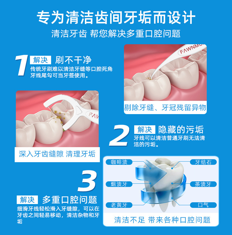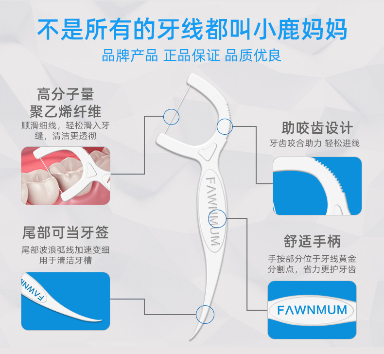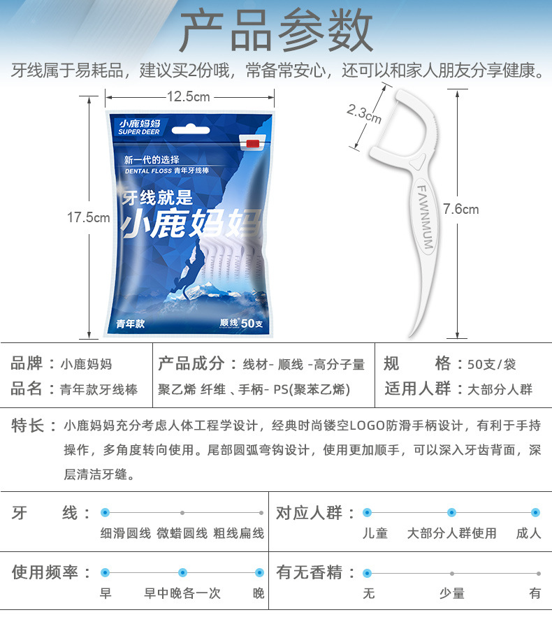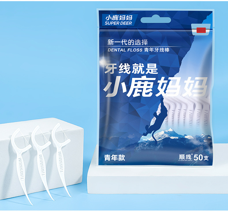 小鹿妈妈牙线 高顺一次性牙线棒袋装现货剔牙签牙线盒装批发定 制