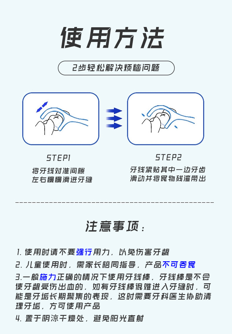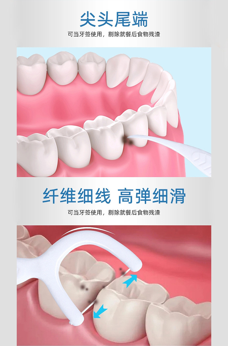 高拉力牙线便携牙齿护理剔牙线牙缝清洁器弓形牙签扁线30支50支盒