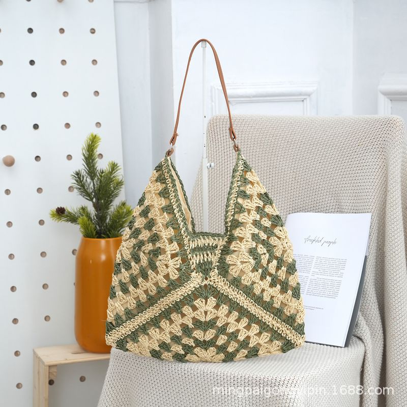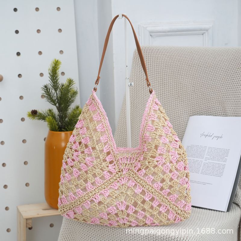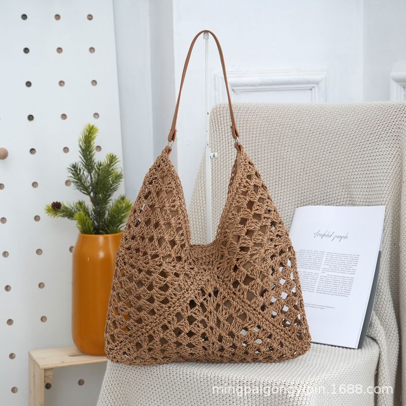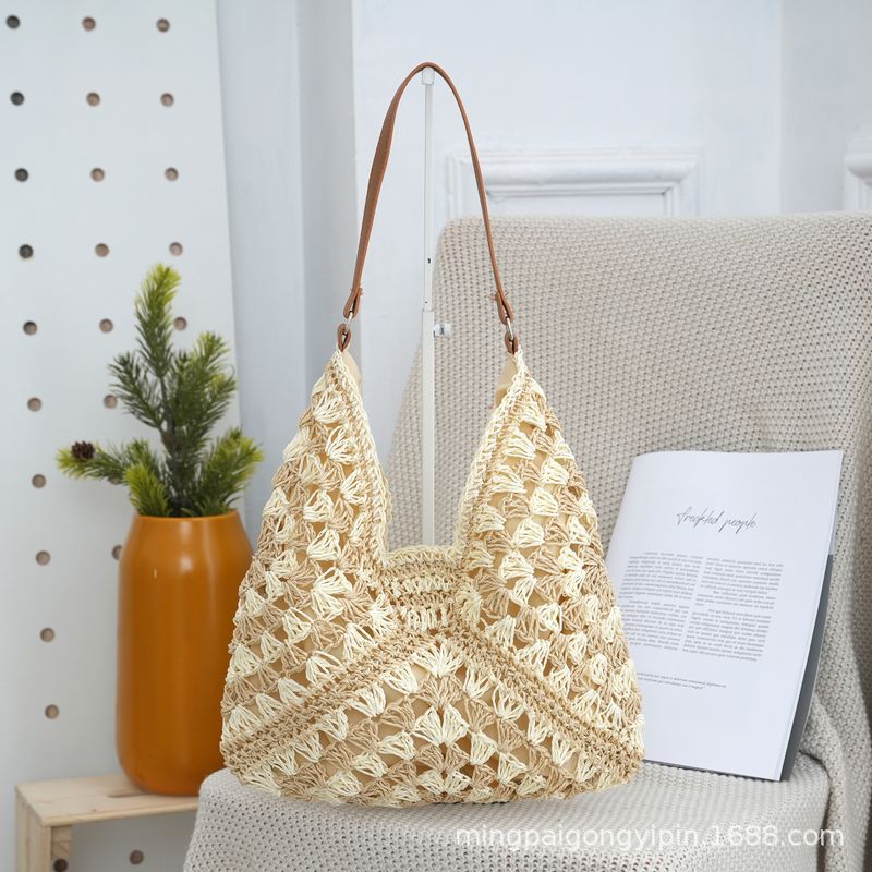 网红手工编织镂空包包厂家百搭编织包通勤度假购物草编沙滩包批发