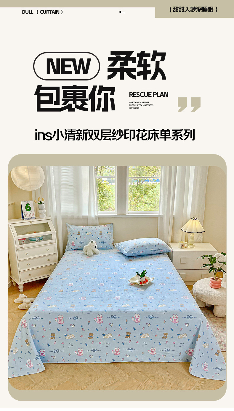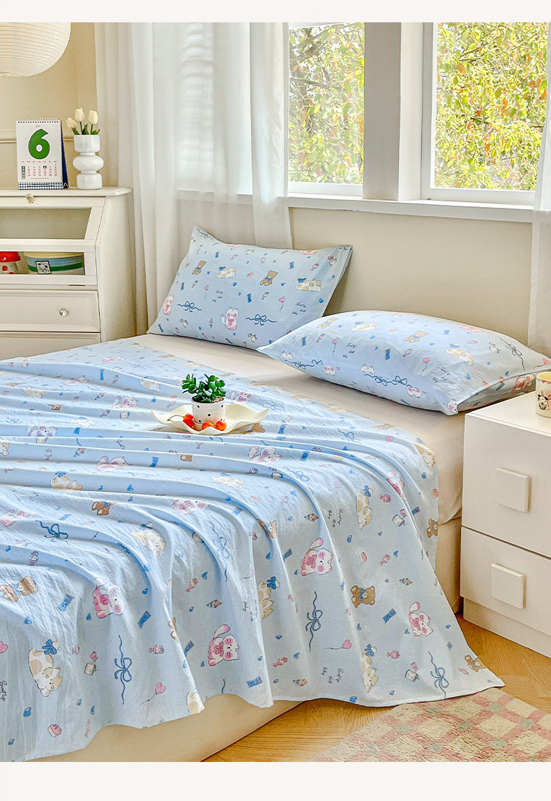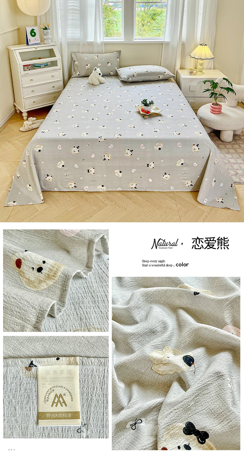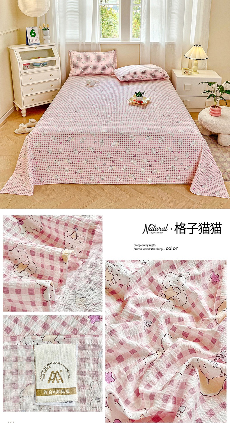 a类母婴级双层纱床单学生宿舍单件被单枕套三件套水洗棉床上用品A