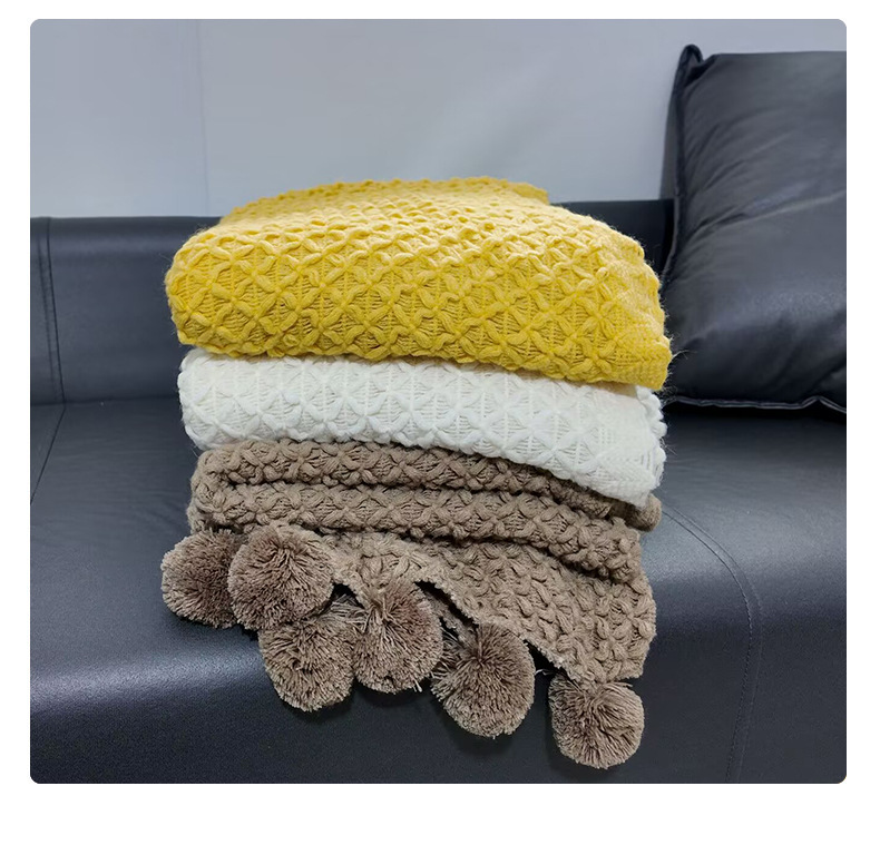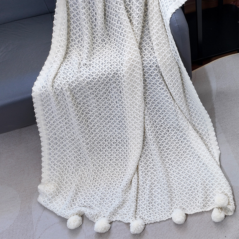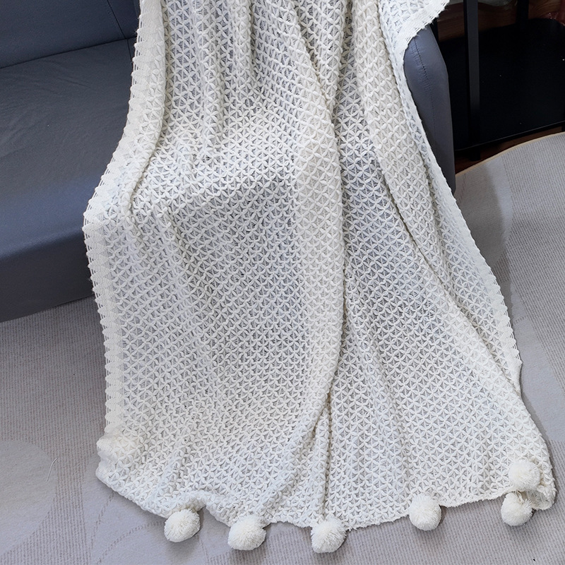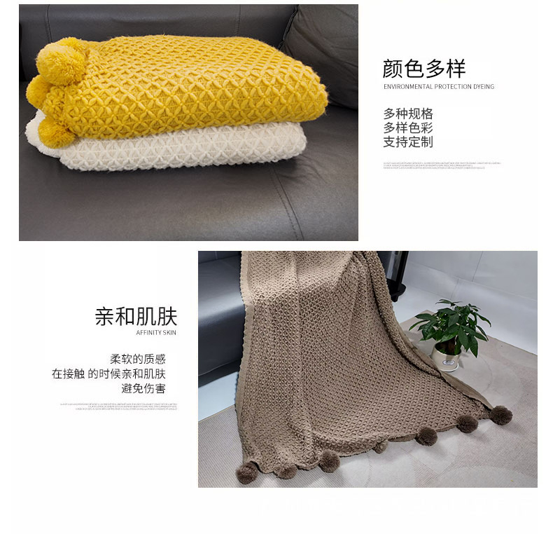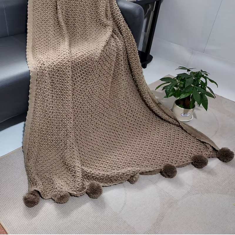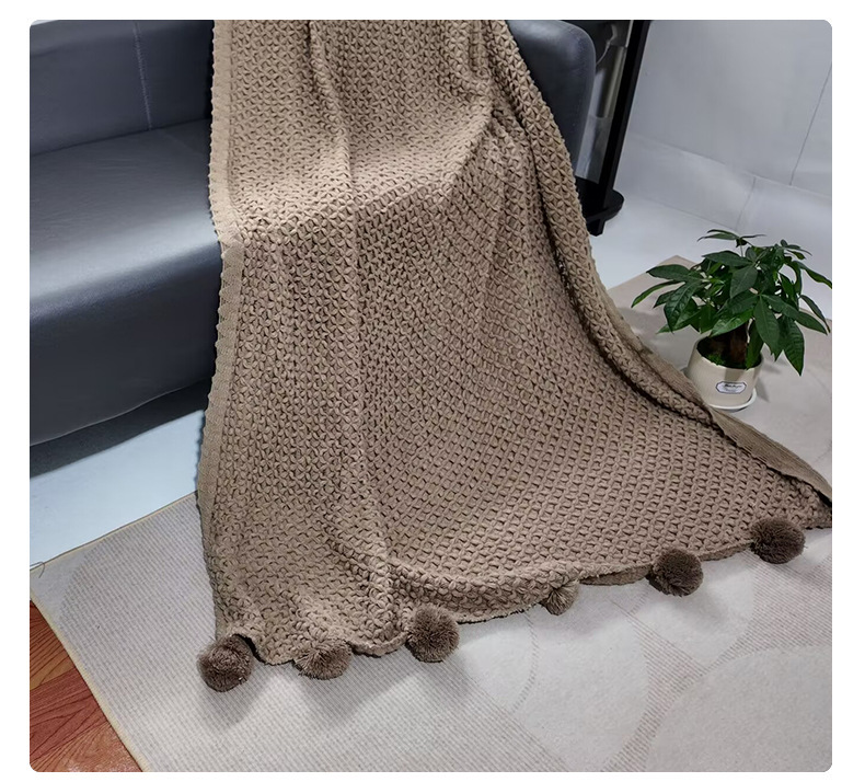 杨梅球链条盖毯北欧风简约格纹办公室午睡空调毯客厅卧室沙发毯