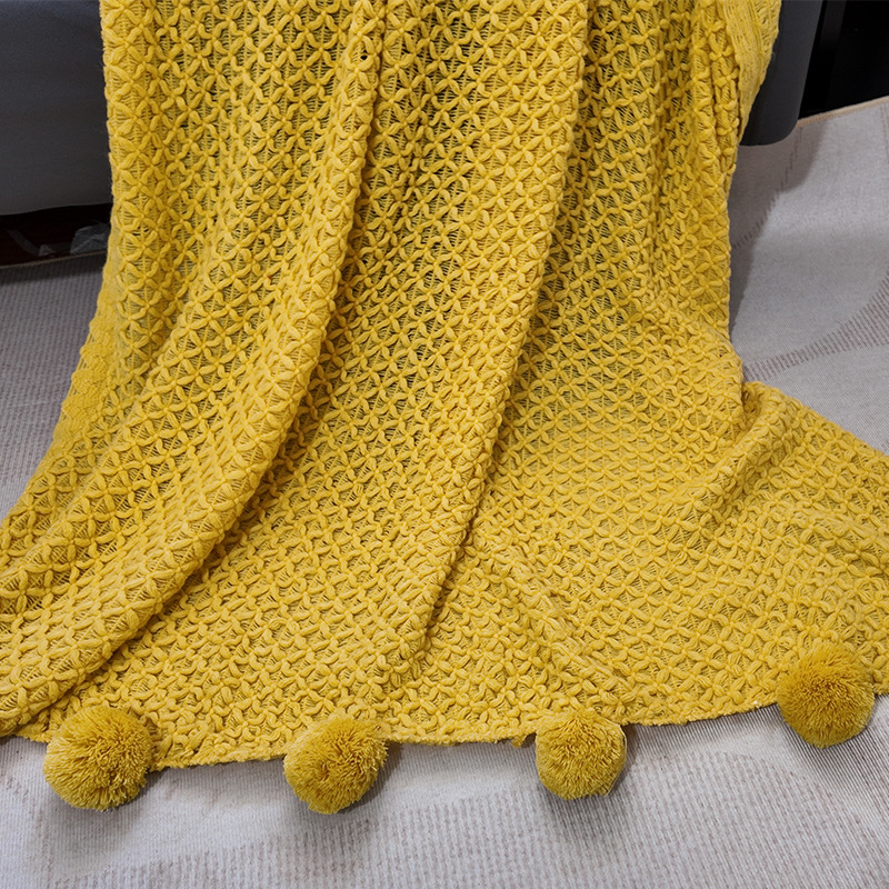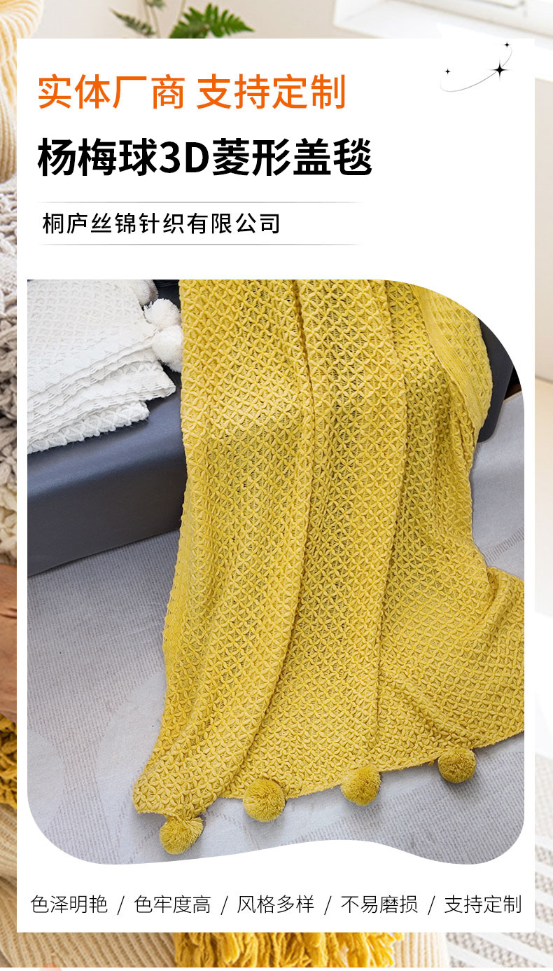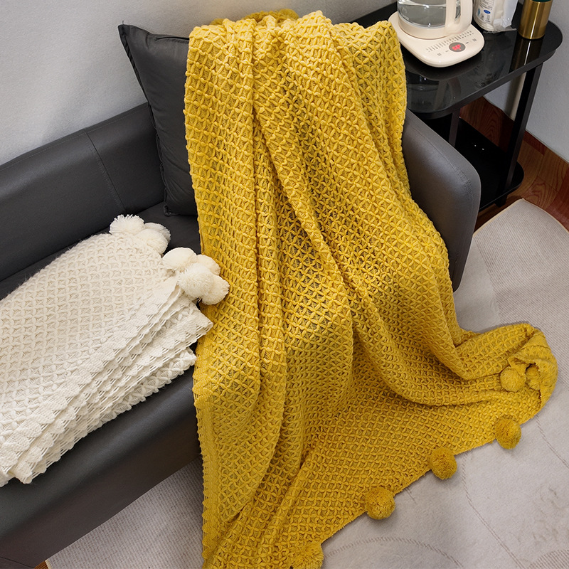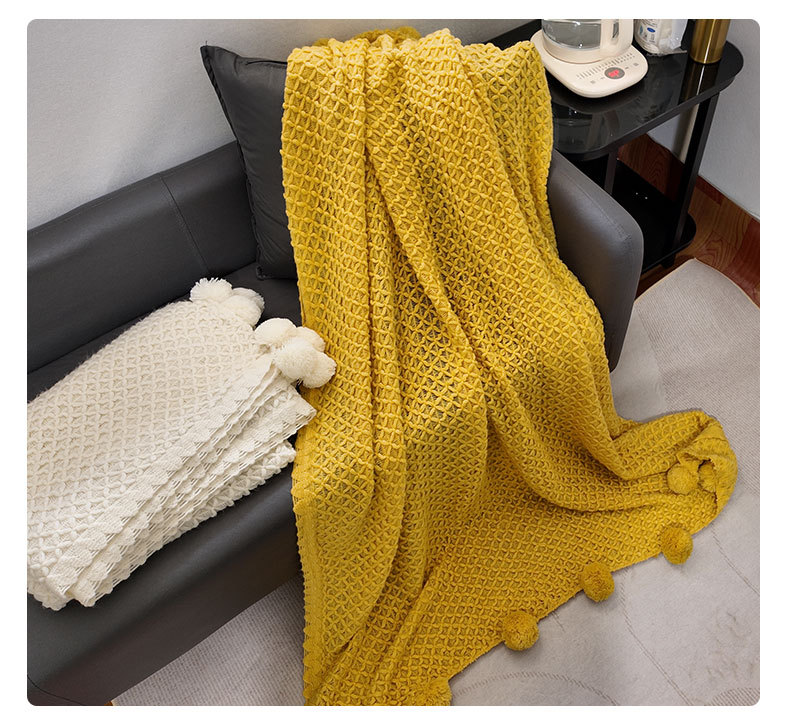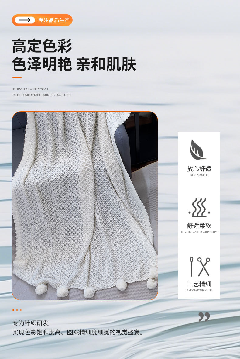 杨梅球链条盖毯北欧风简约格纹办公室午睡空调毯客厅卧室沙发毯