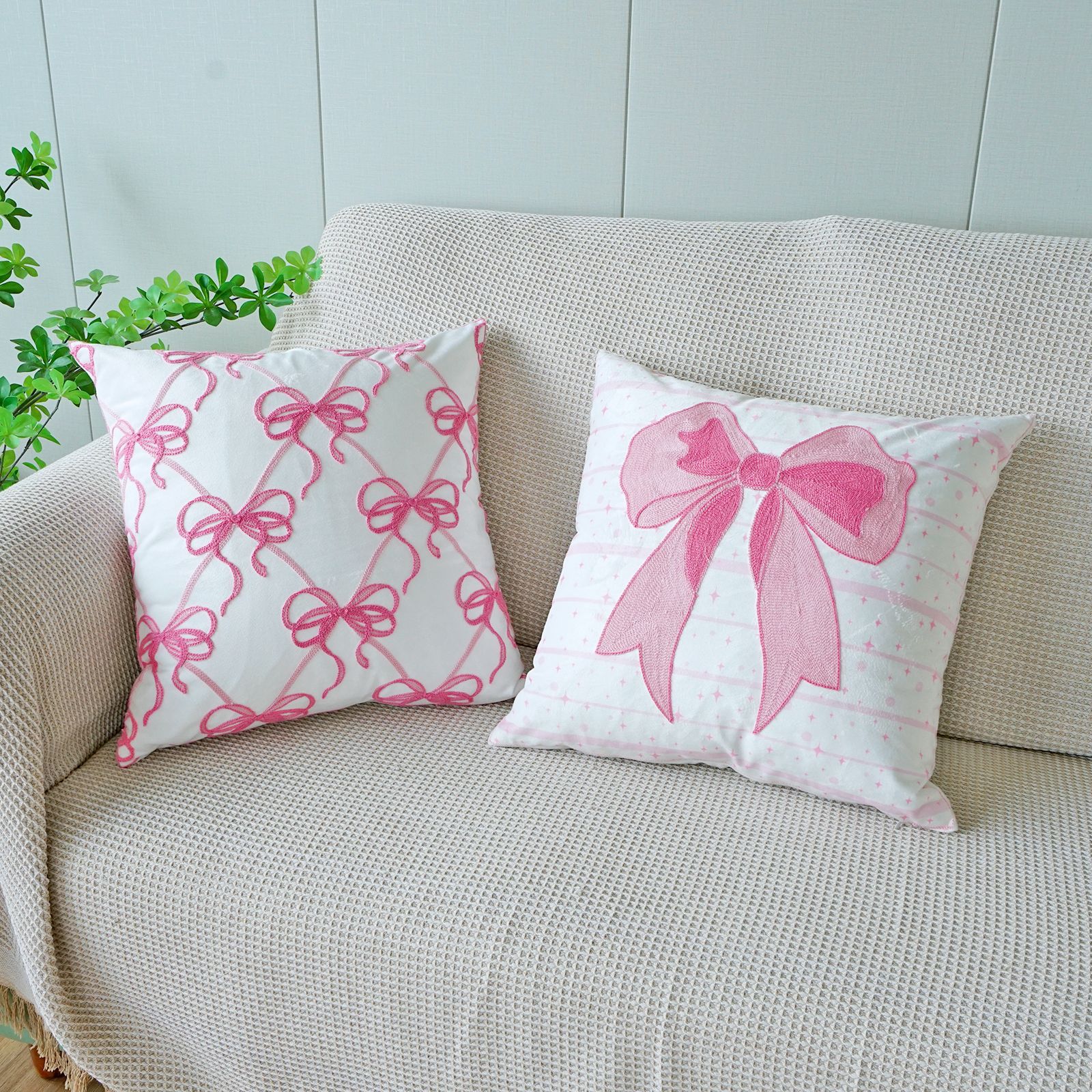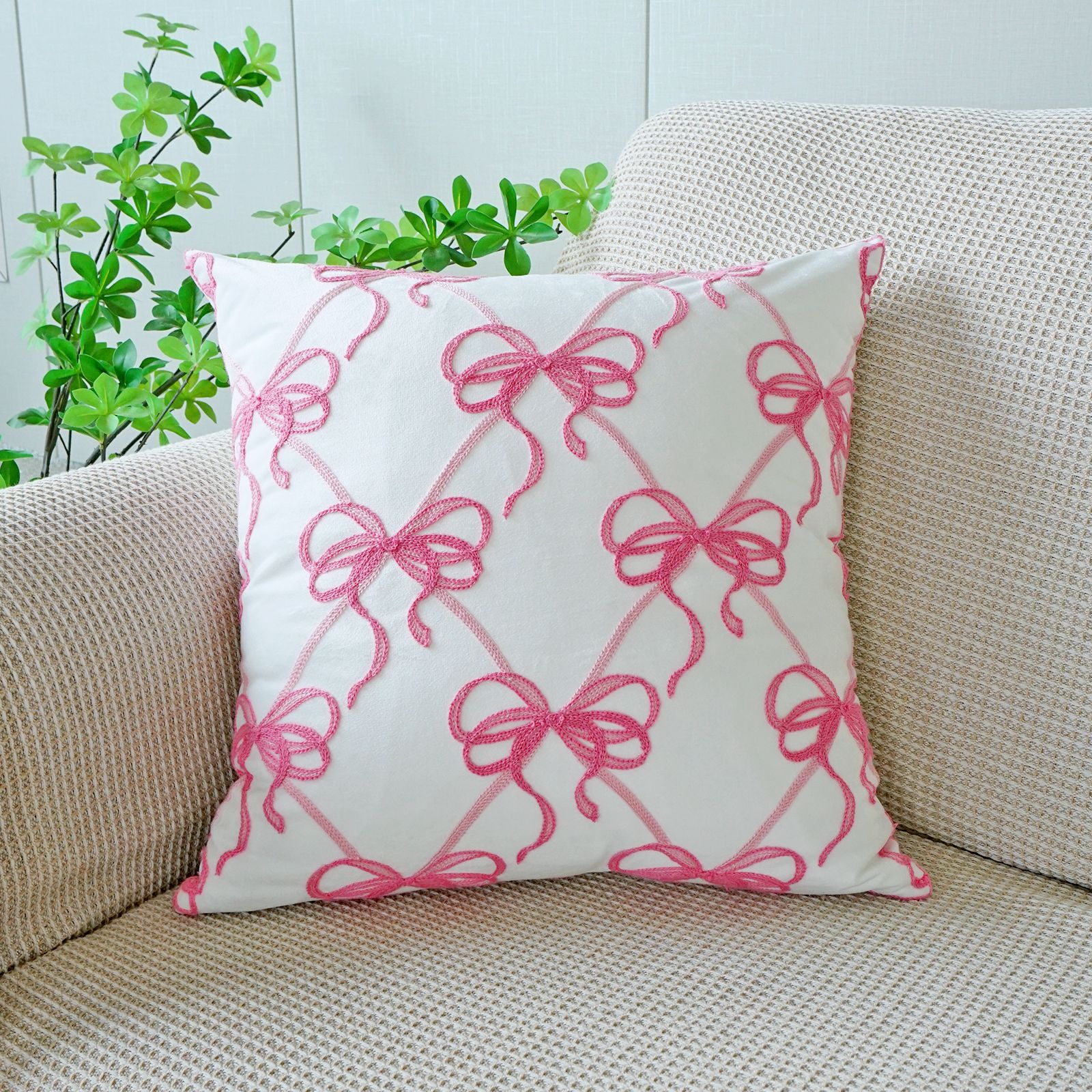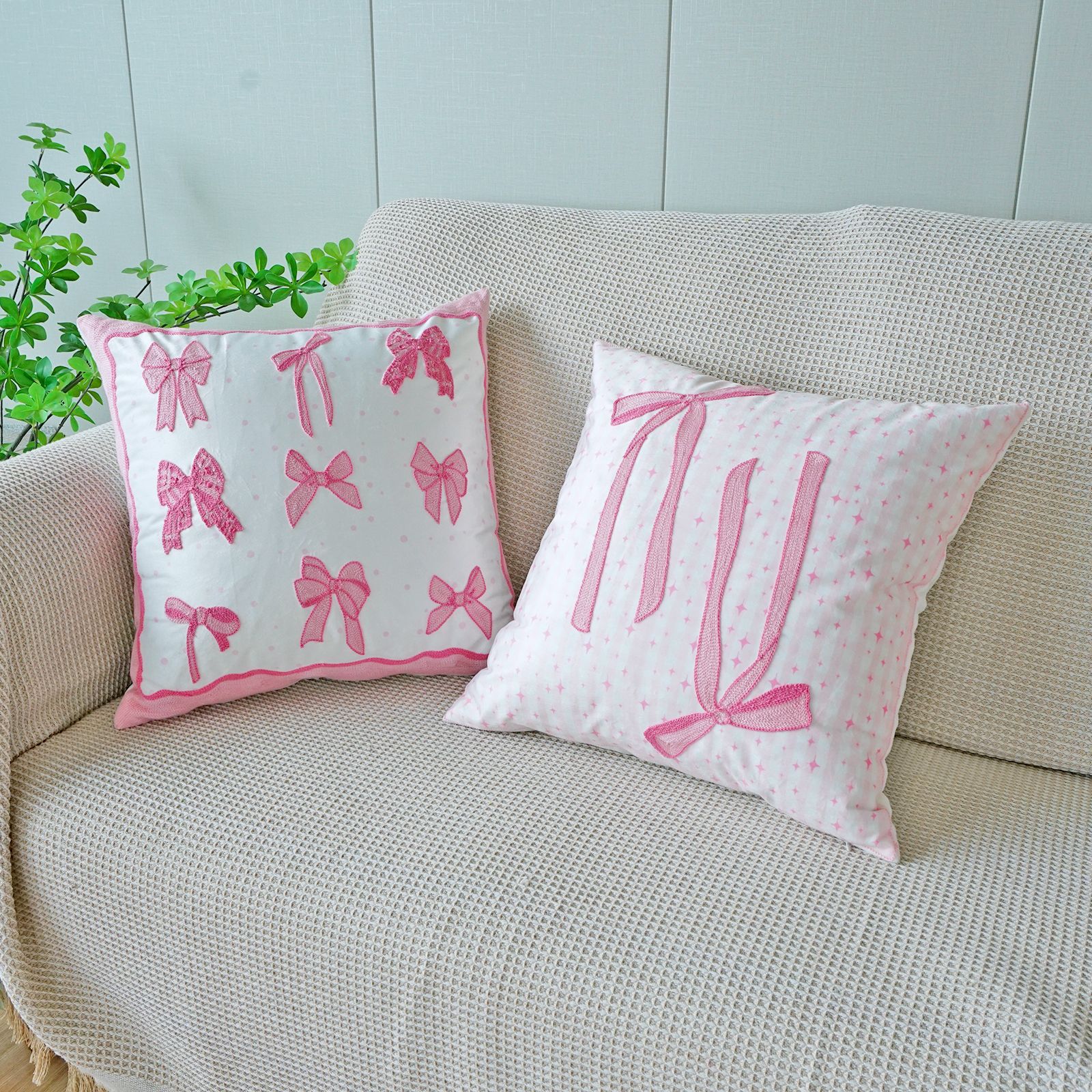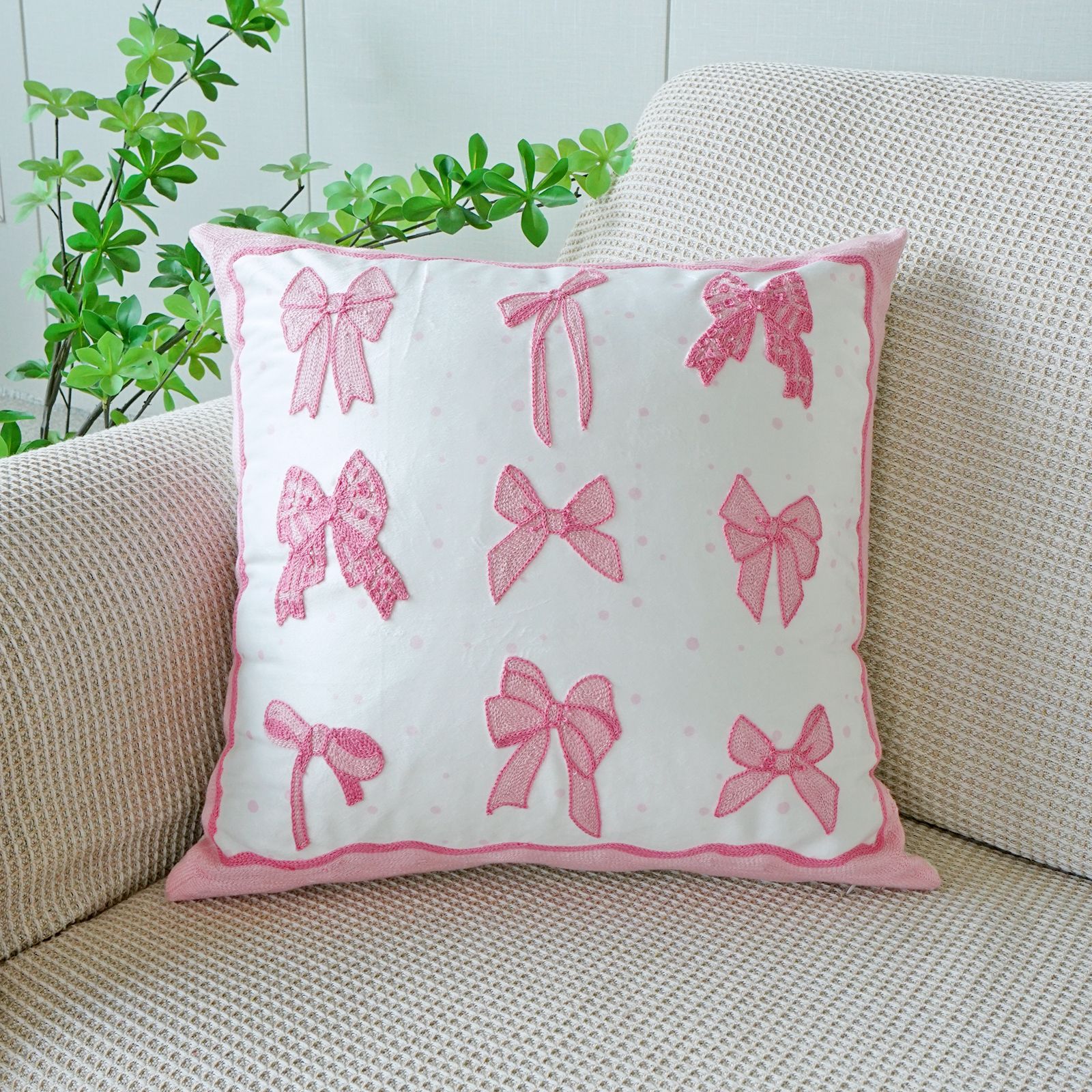 ins风客厅沙发抱枕套蝴蝶结绣花印花双重工艺抱枕套床头飘窗靠枕