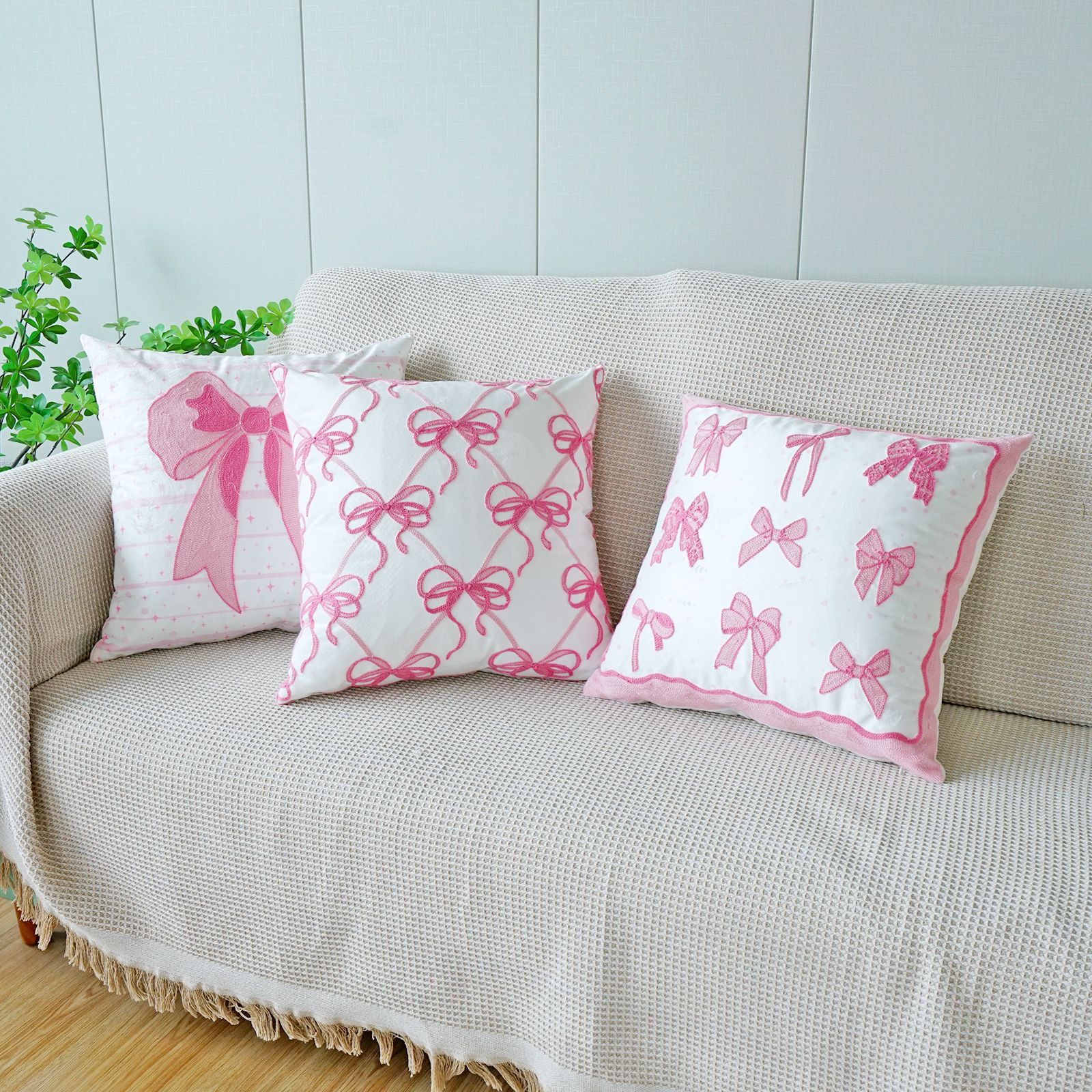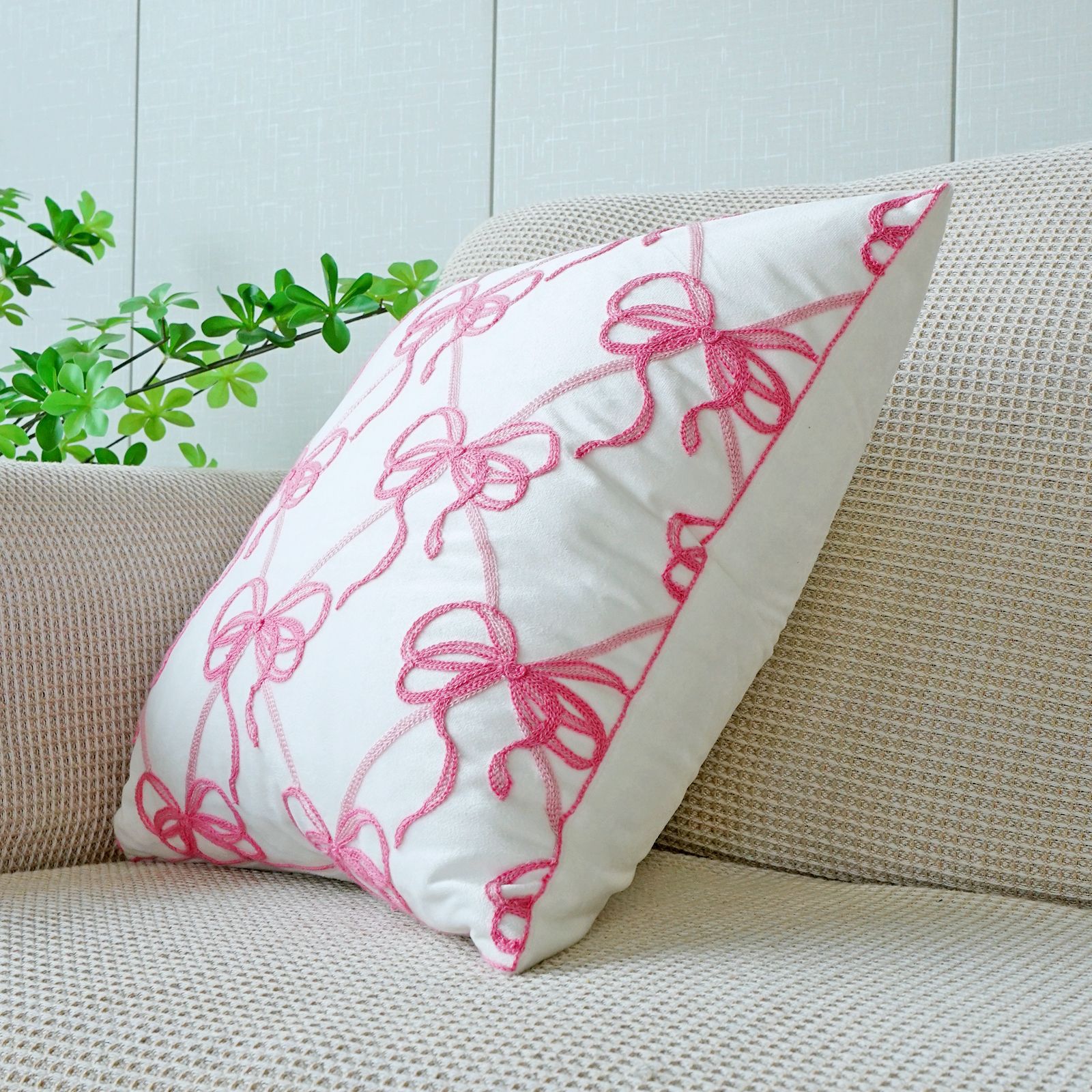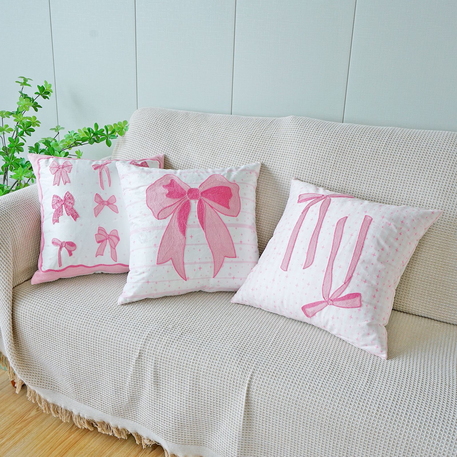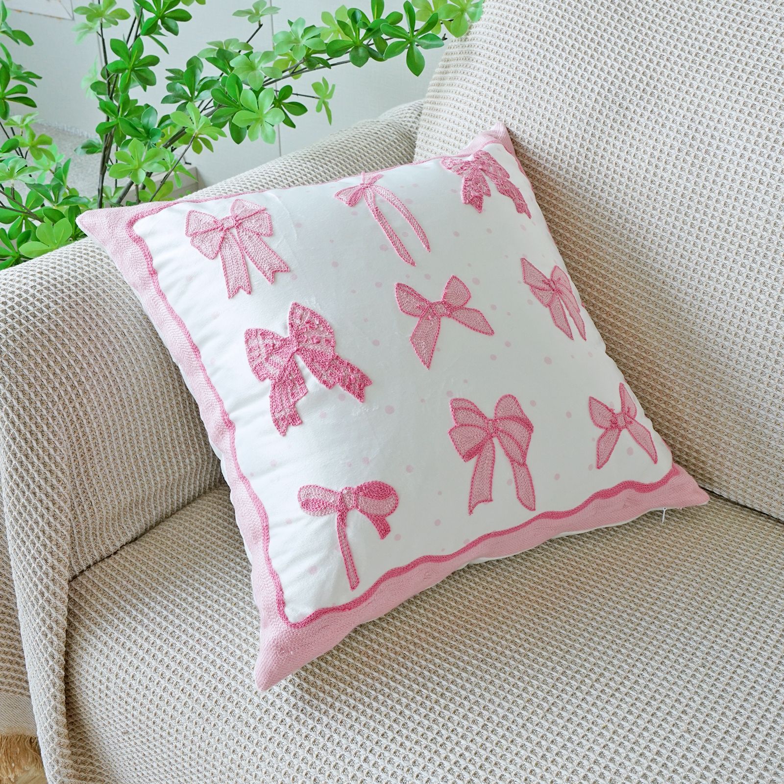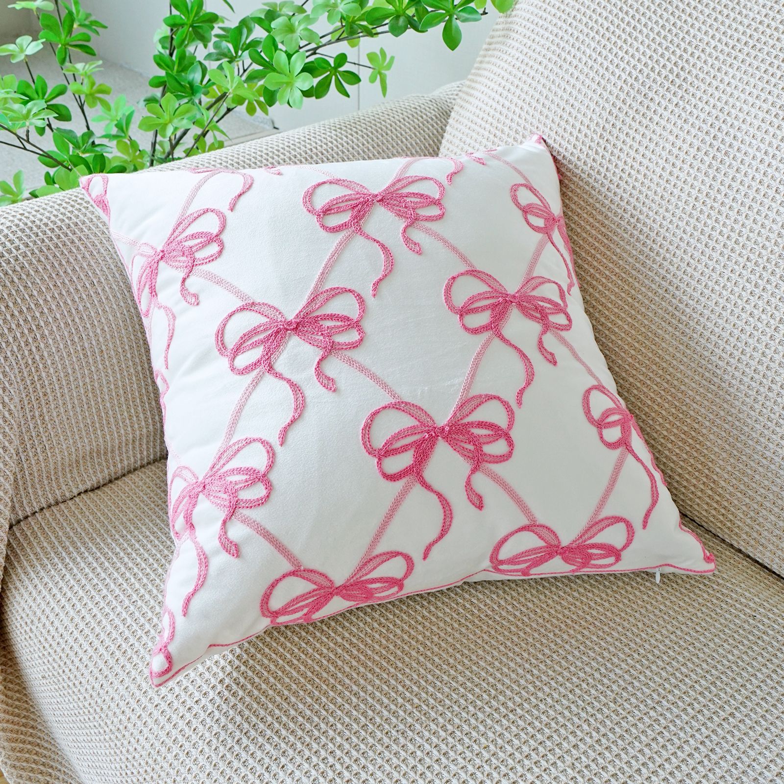 ins风客厅沙发抱枕套蝴蝶结绣花印花双重工艺抱枕套床头飘窗靠枕