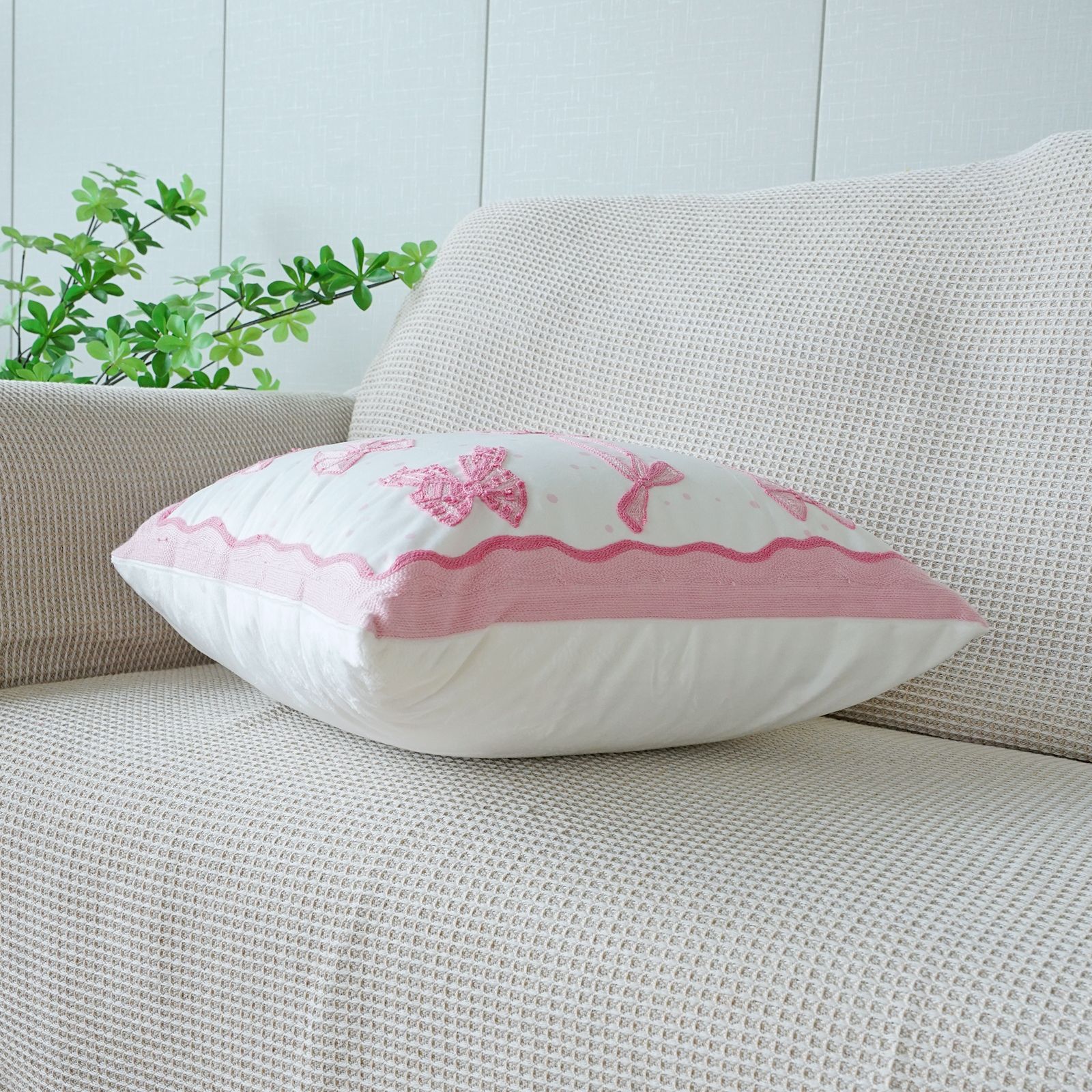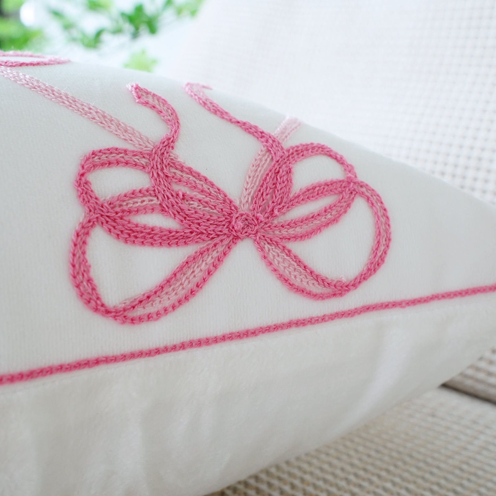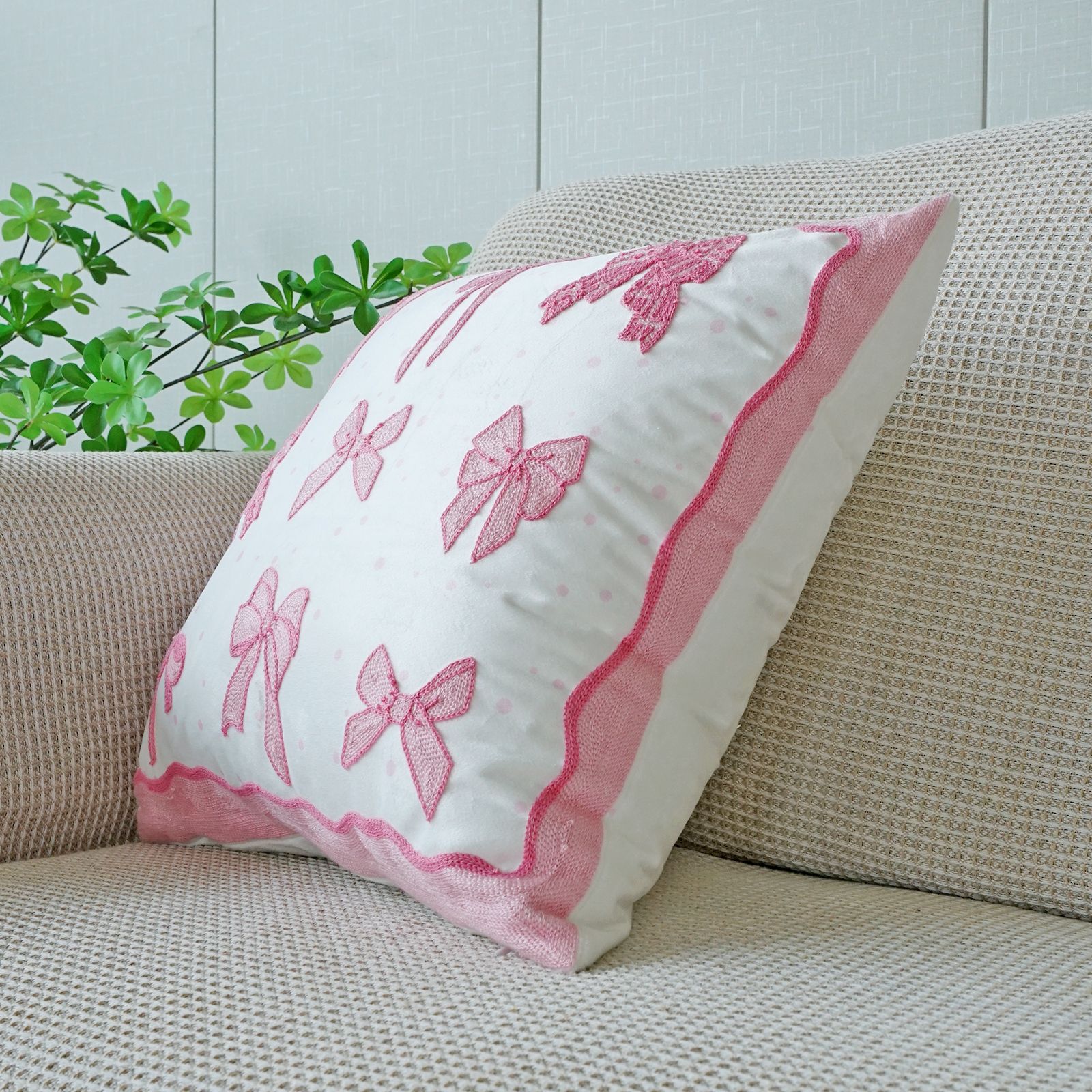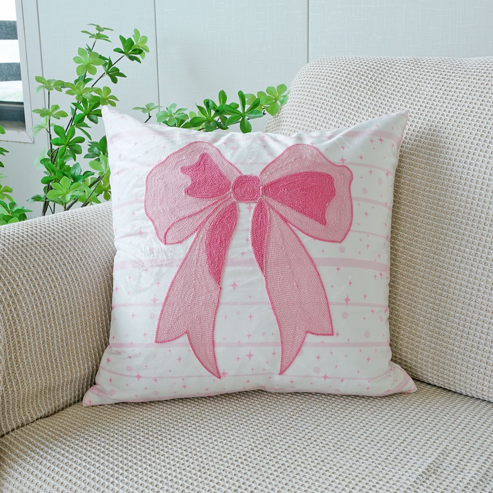 ins风客厅沙发抱枕套蝴蝶结绣花印花双重工艺抱枕套床头飘窗靠枕