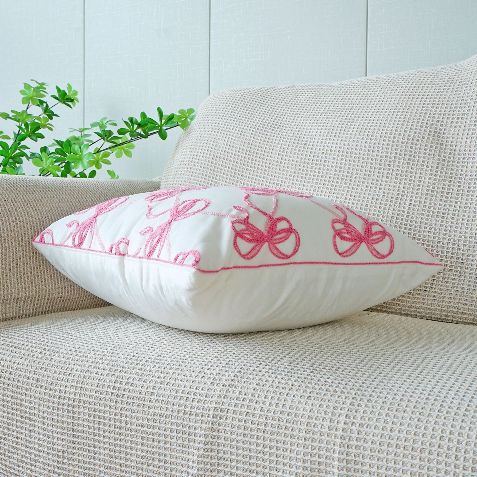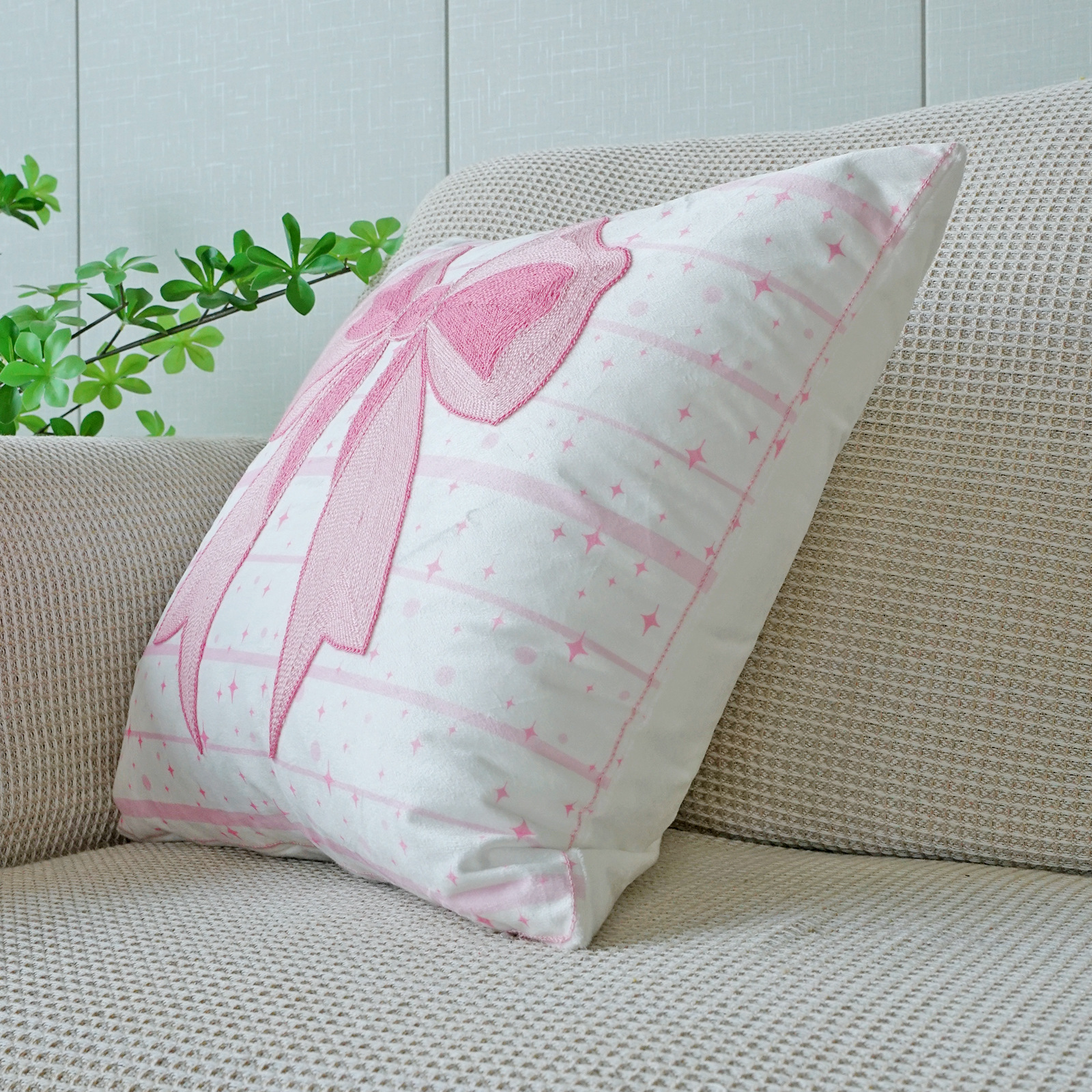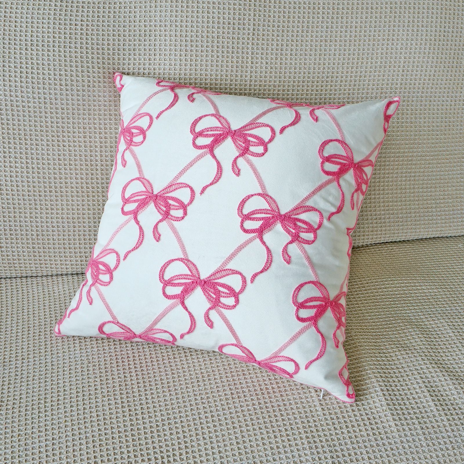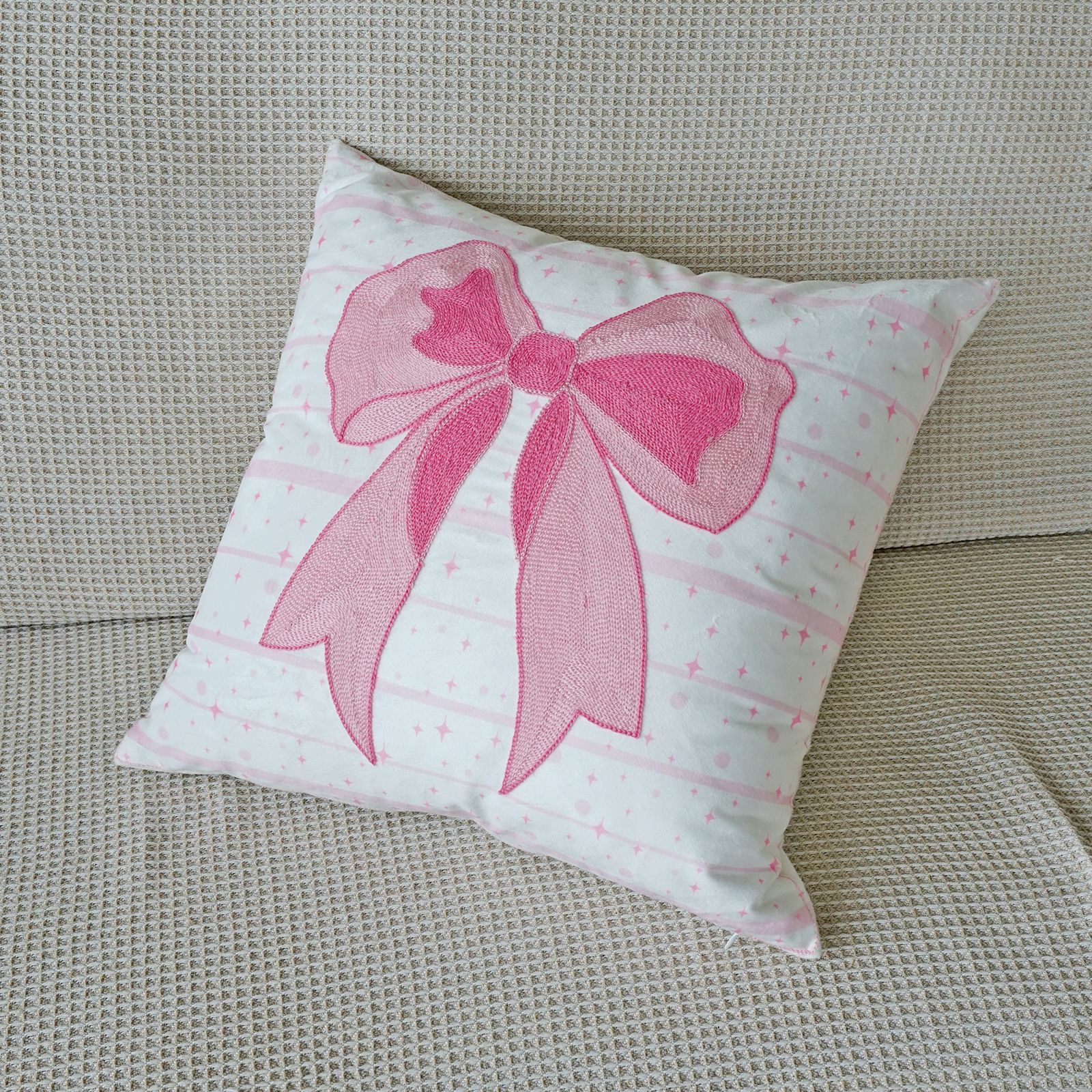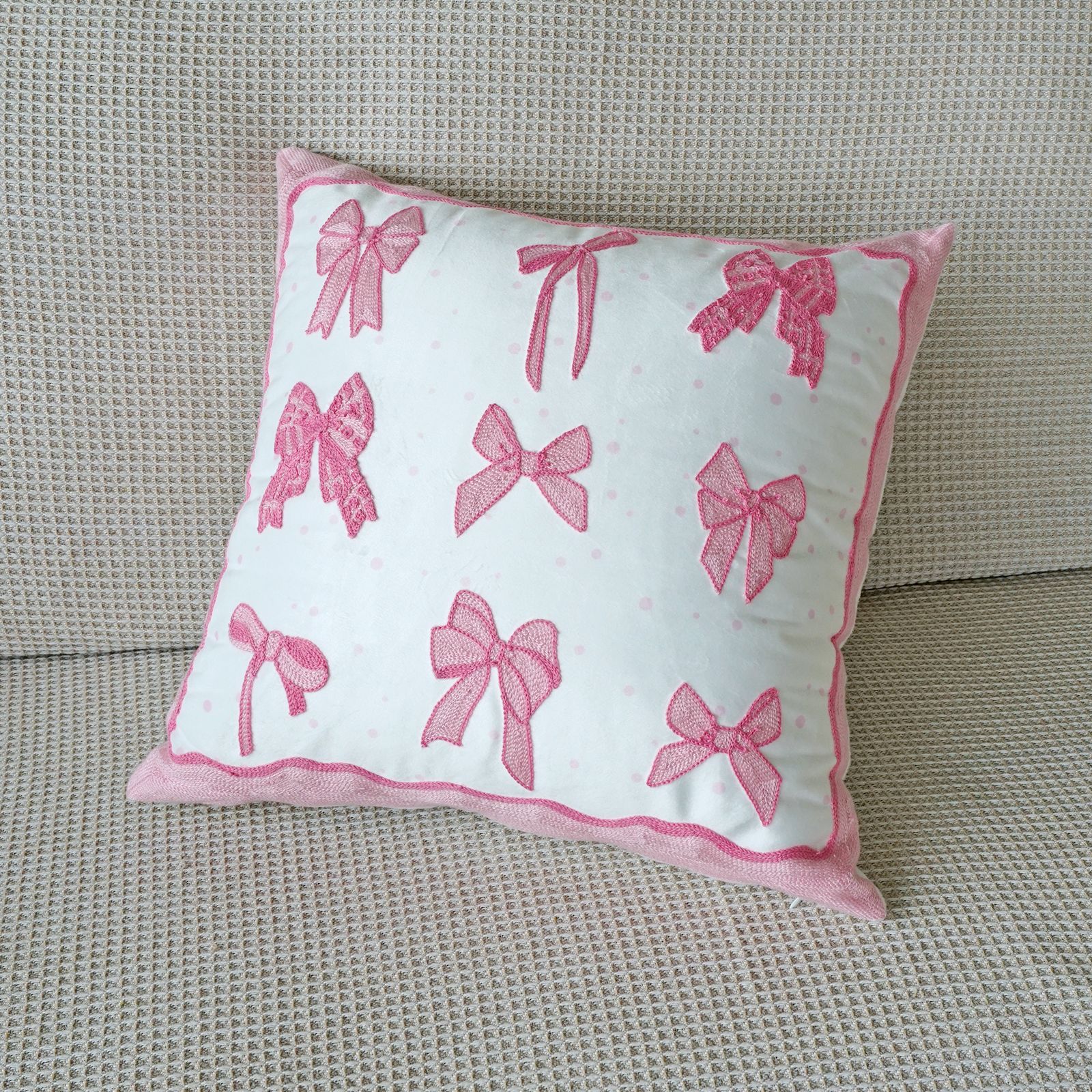 ins风客厅沙发抱枕套蝴蝶结绣花印花双重工艺抱枕套床头飘窗靠枕