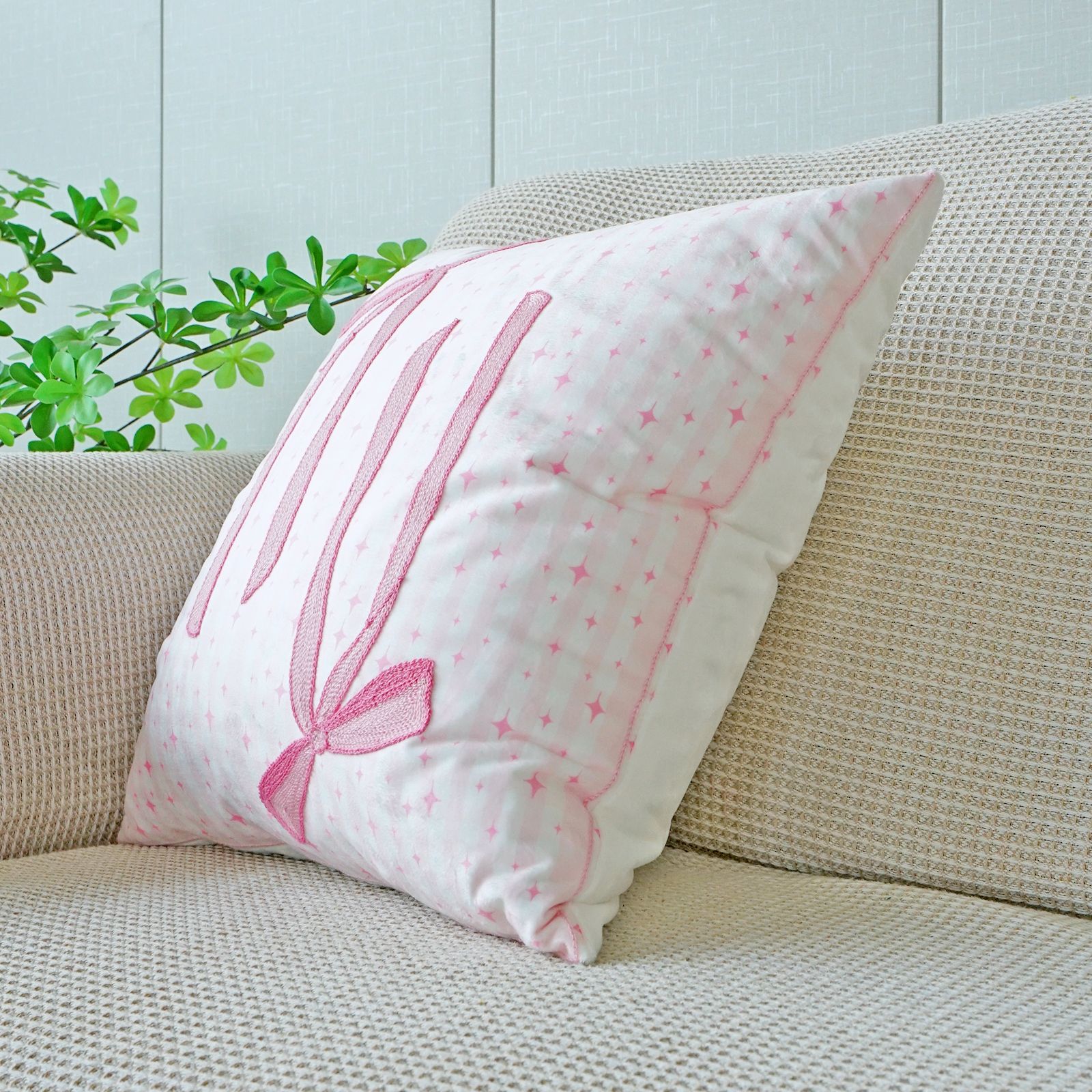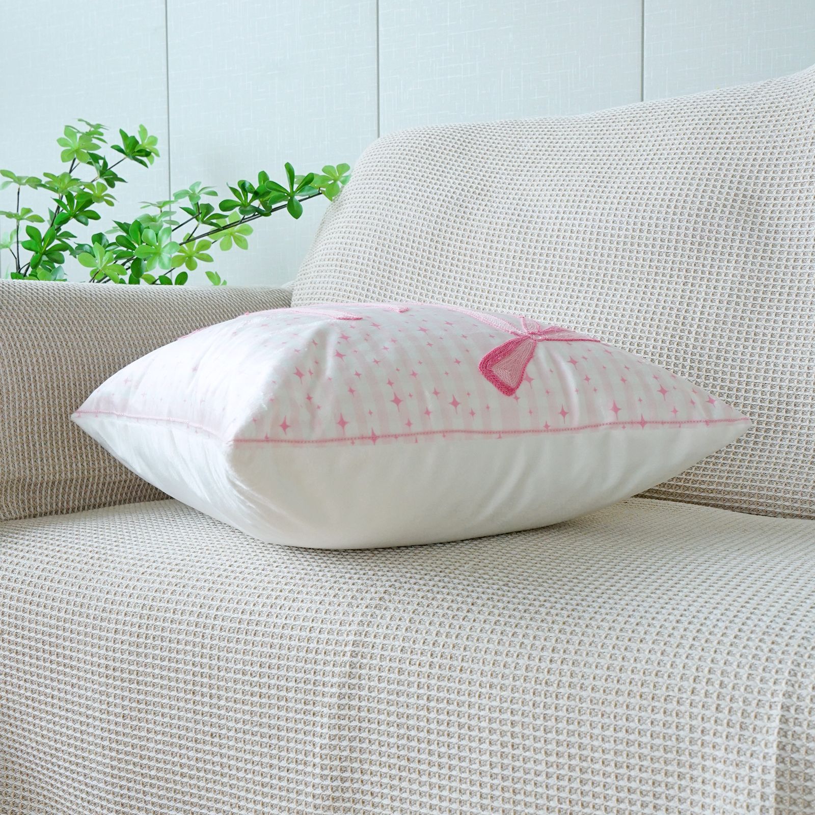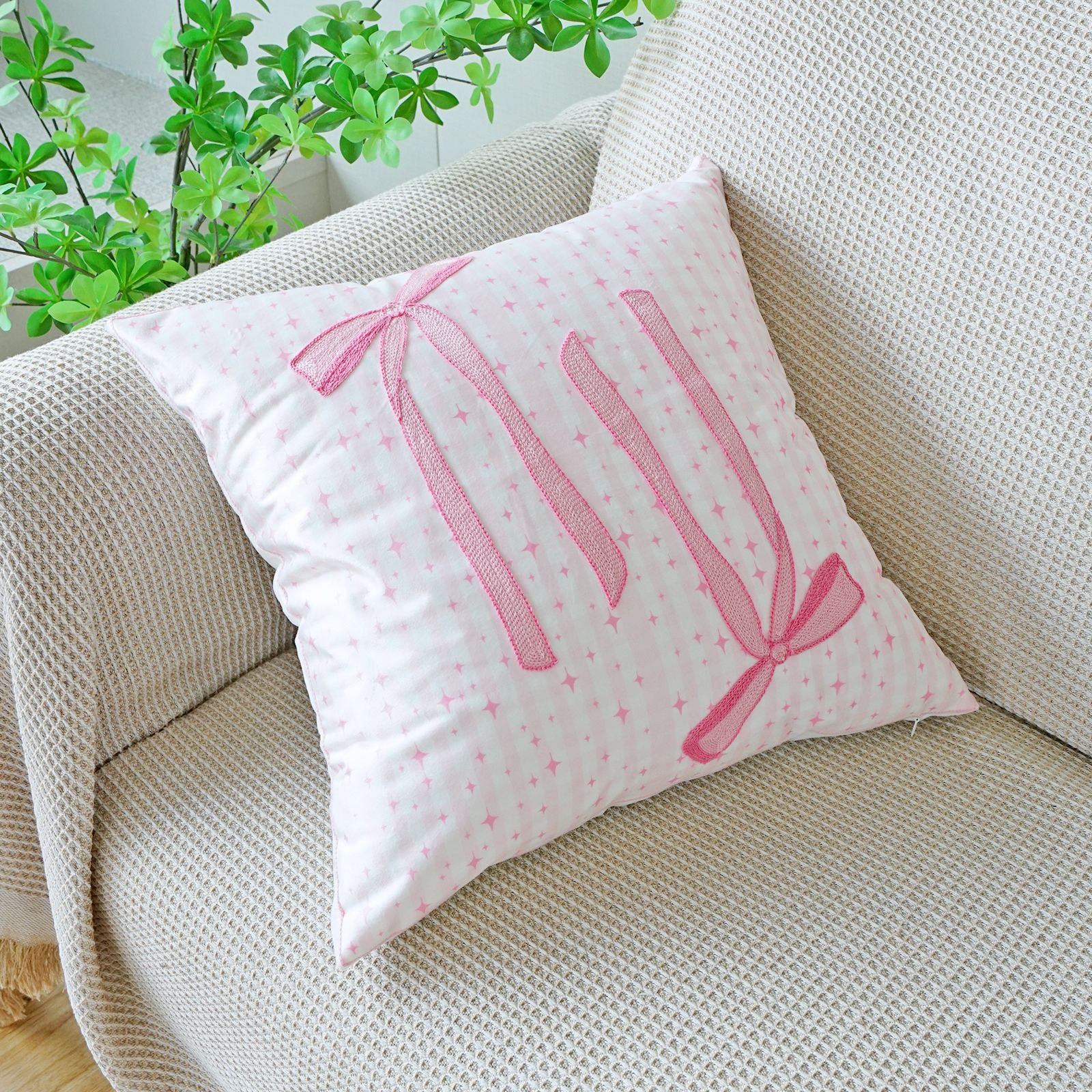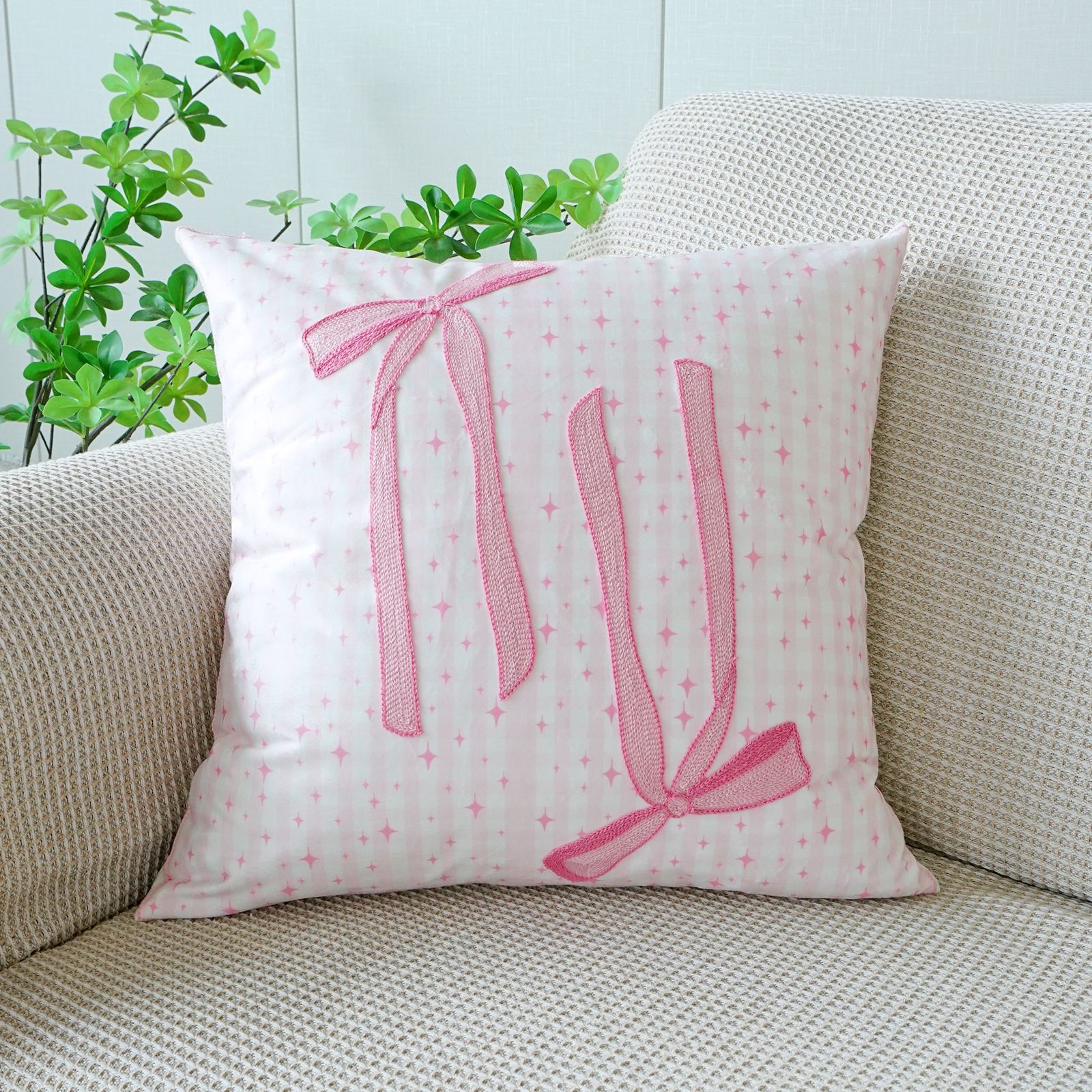 ins风客厅沙发抱枕套蝴蝶结绣花印花双重工艺抱枕套床头飘窗靠枕