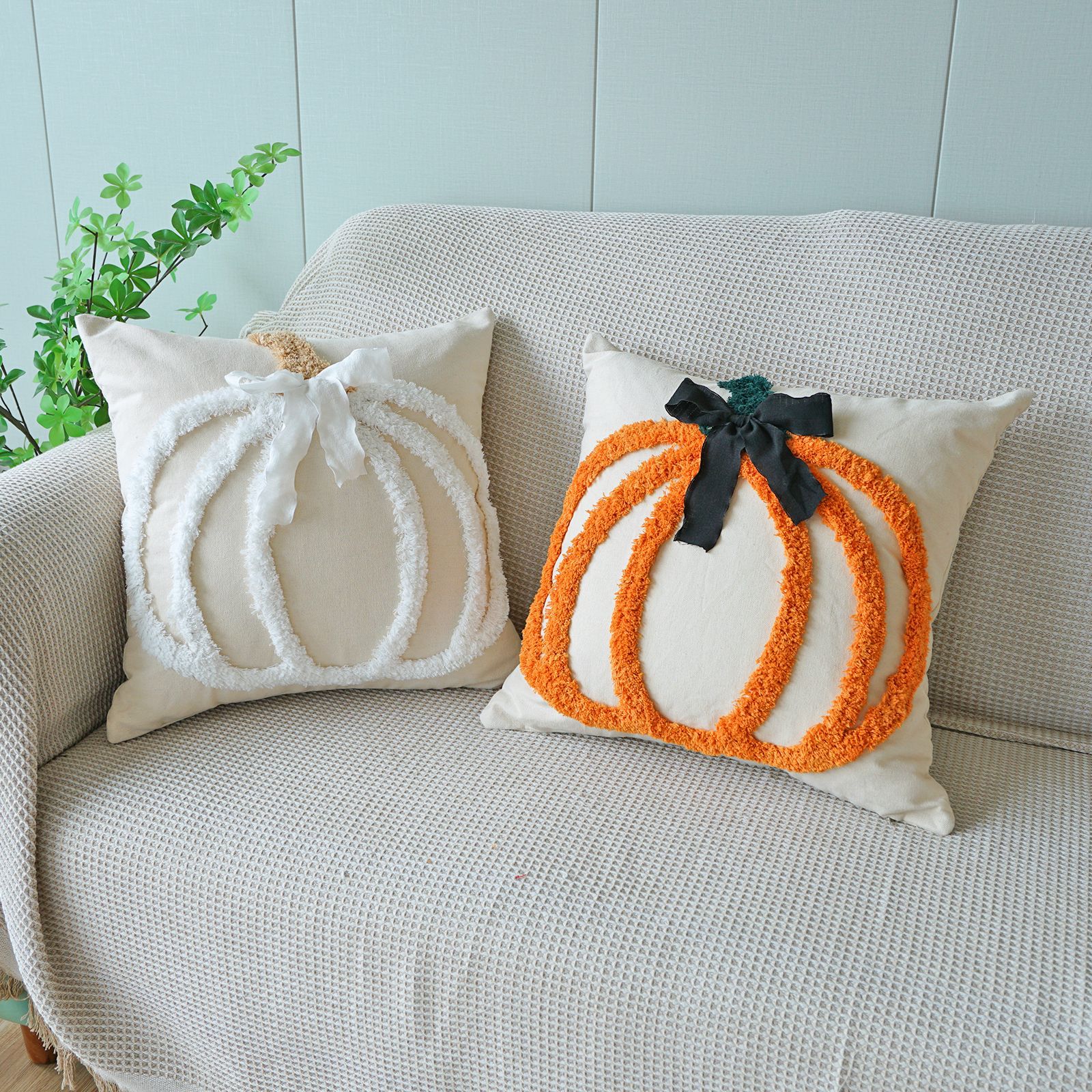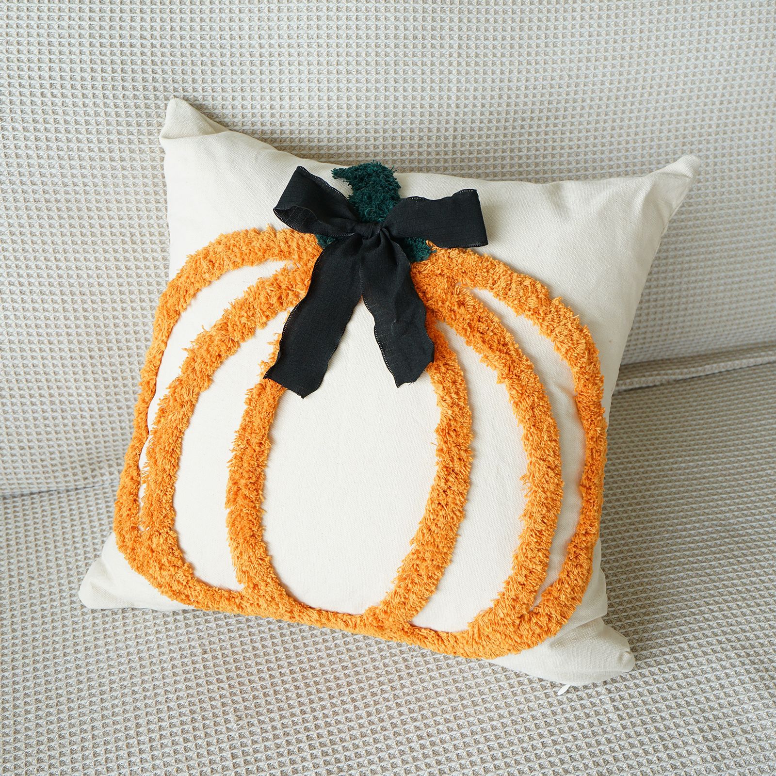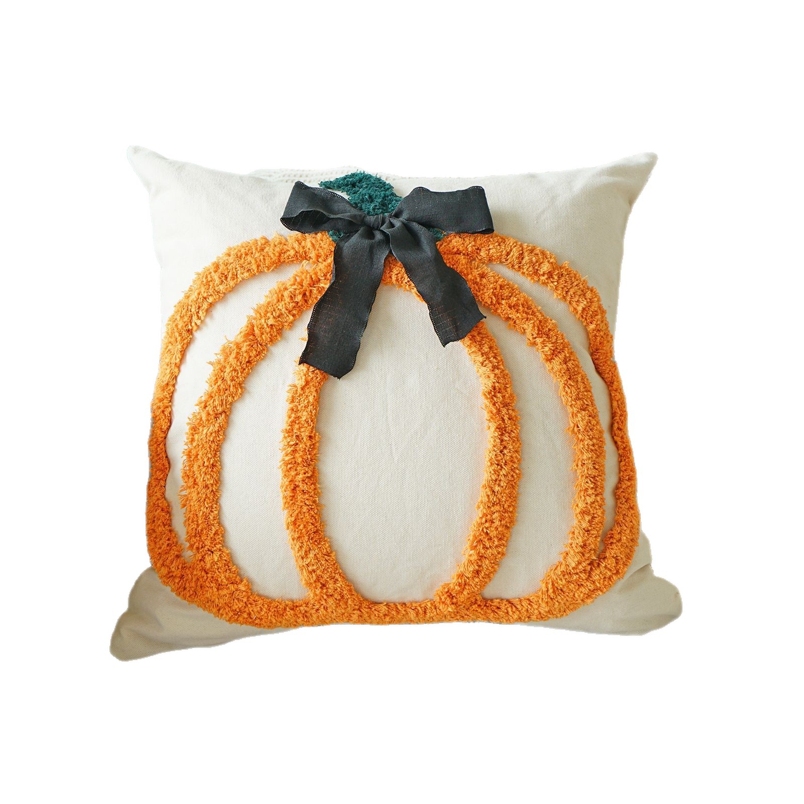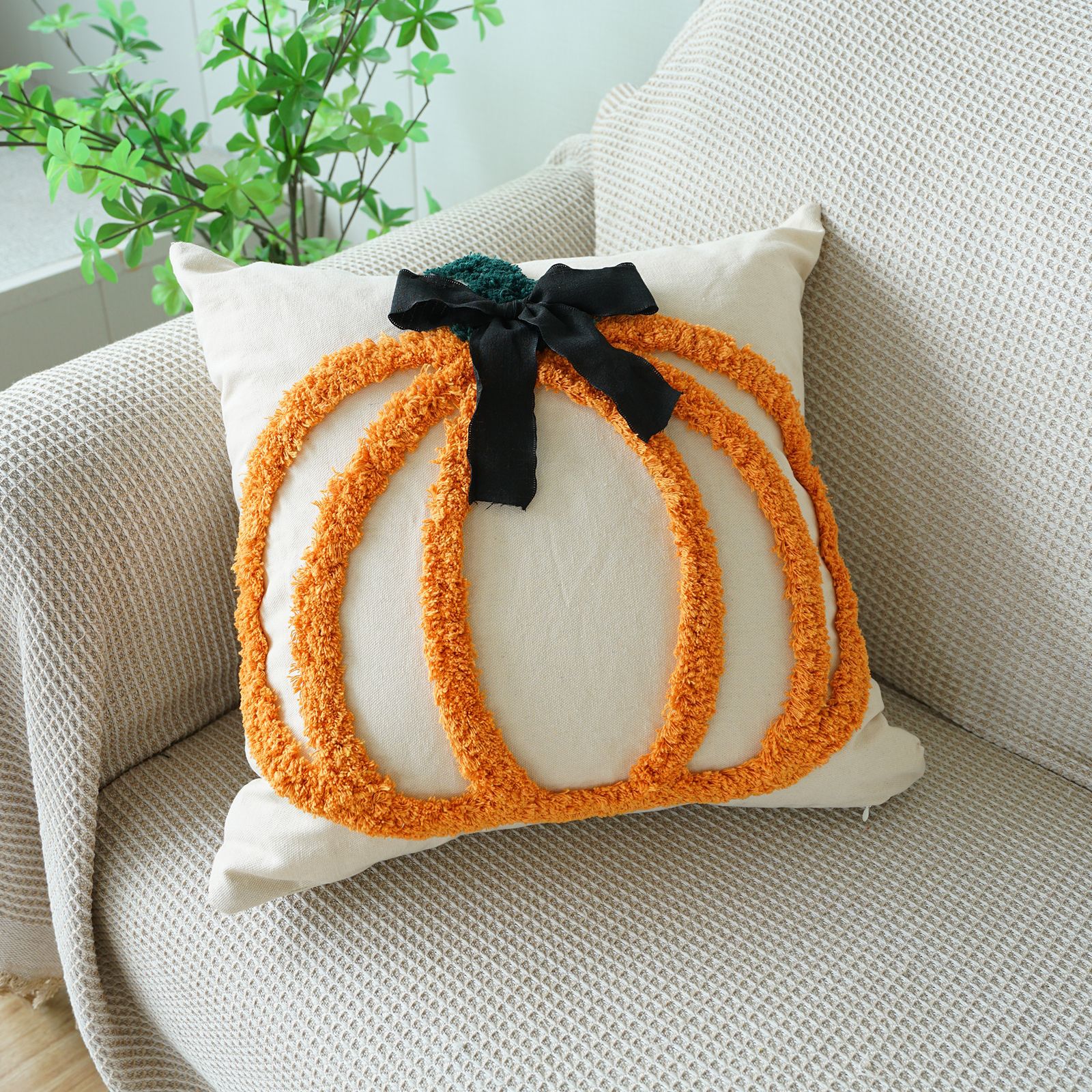 万圣节簇绒绣南瓜抱枕套客厅沙发节日氛围蝴蝶结装饰感恩节靠垫套
