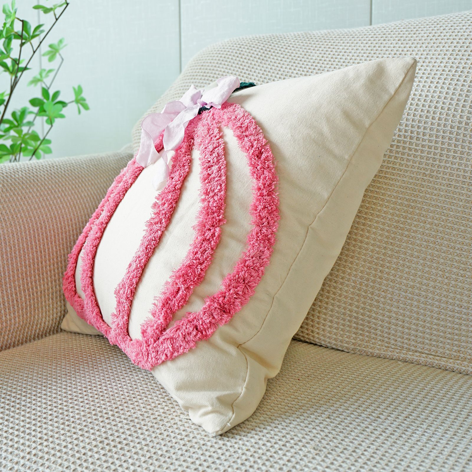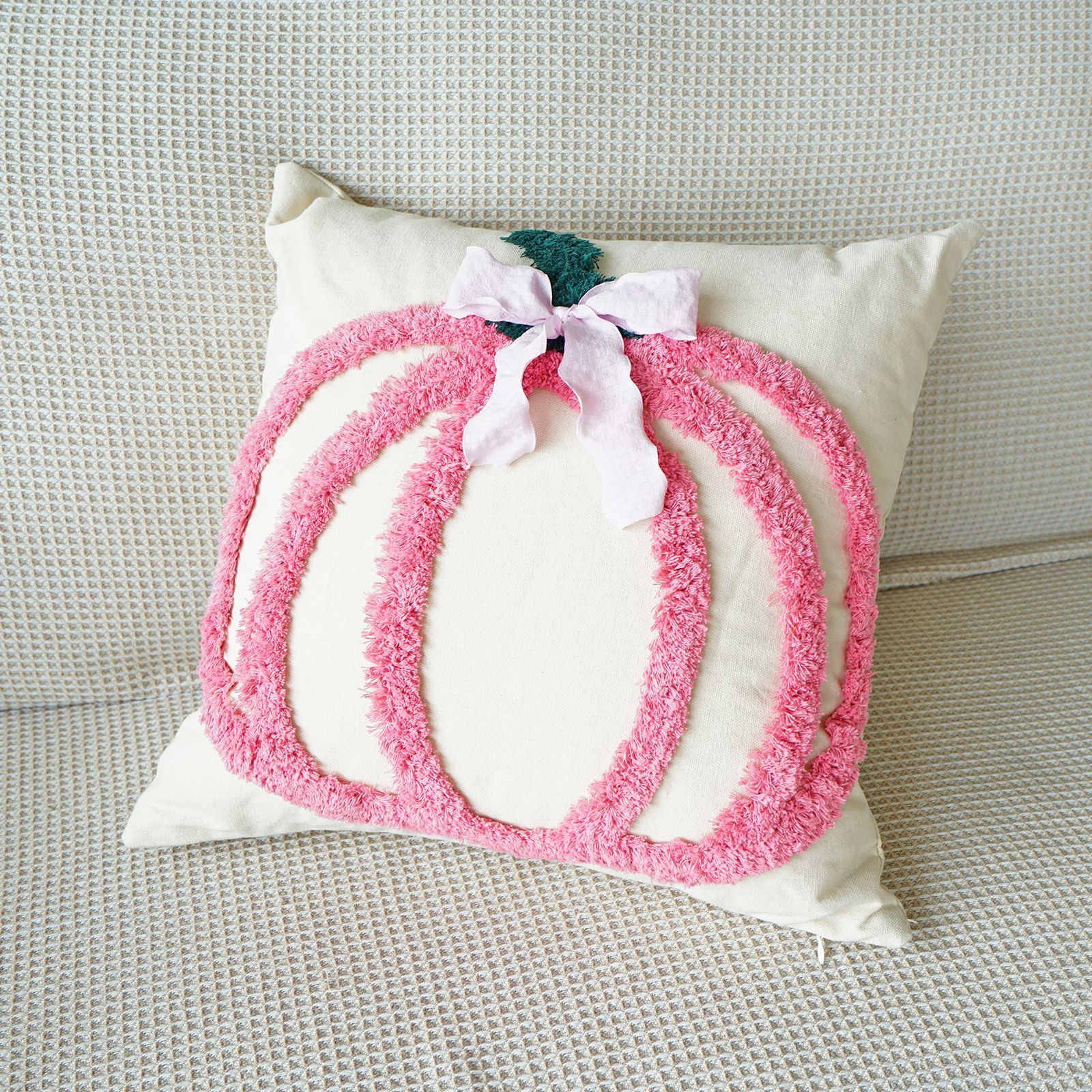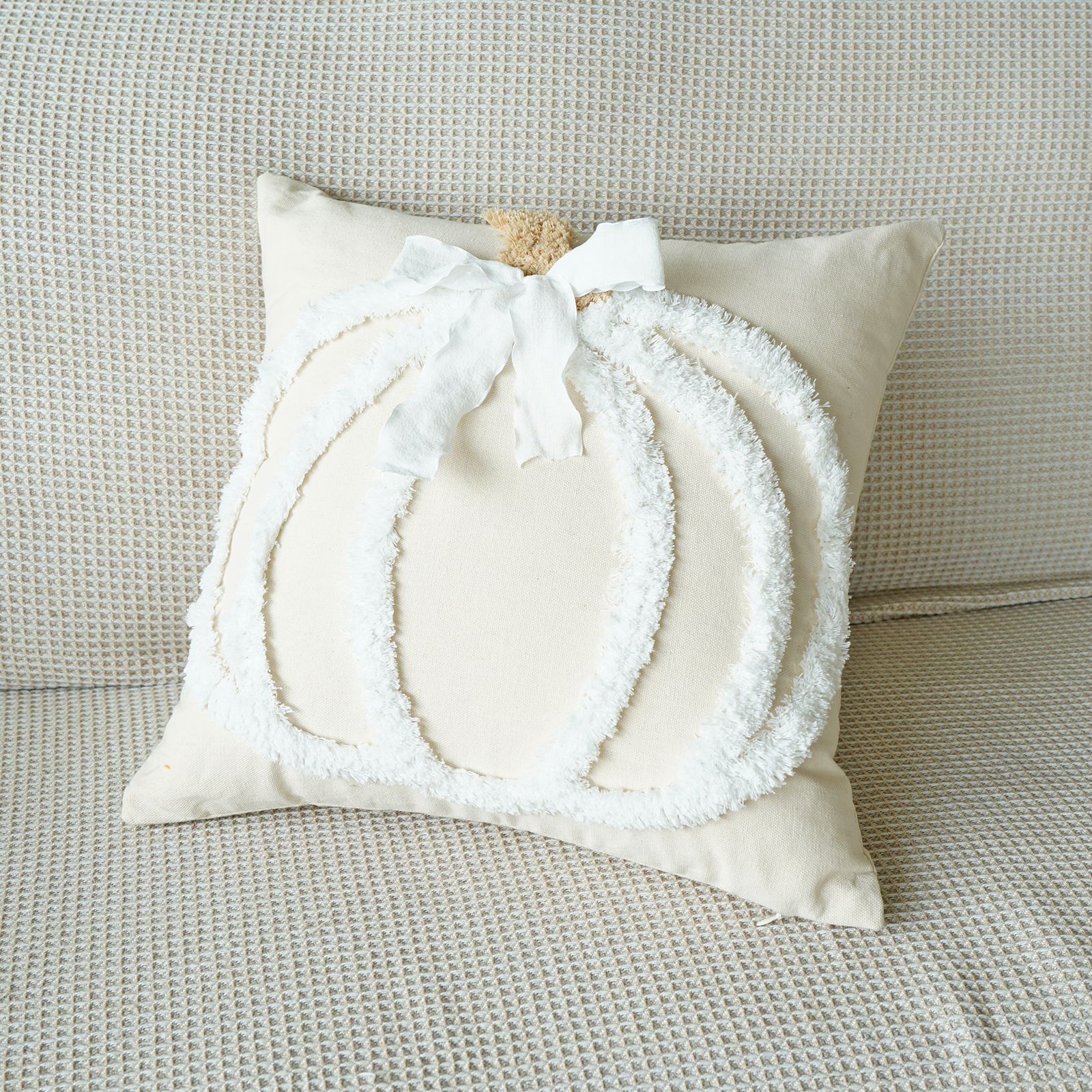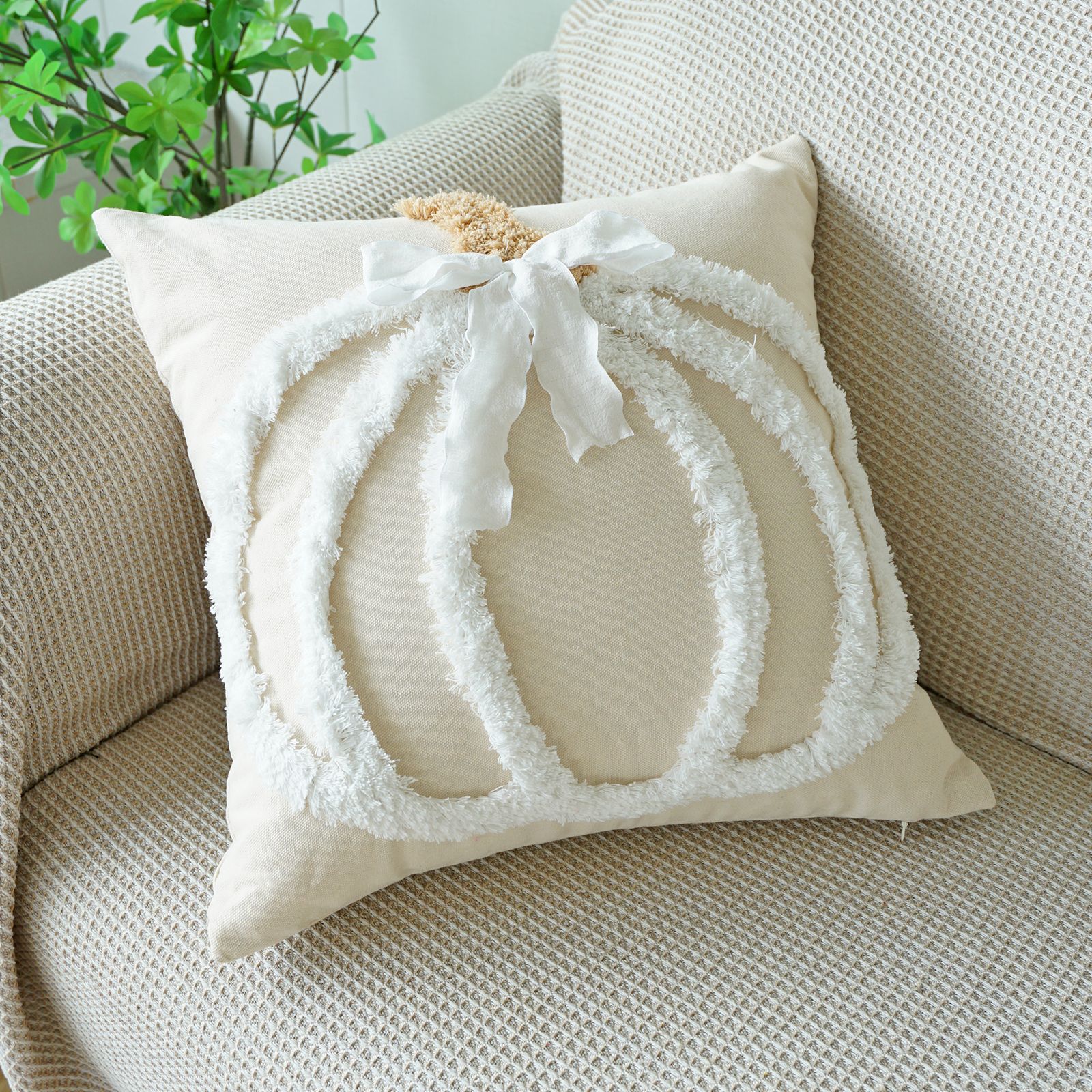 万圣节簇绒绣南瓜抱枕套客厅沙发节日氛围蝴蝶结装饰感恩节靠垫套