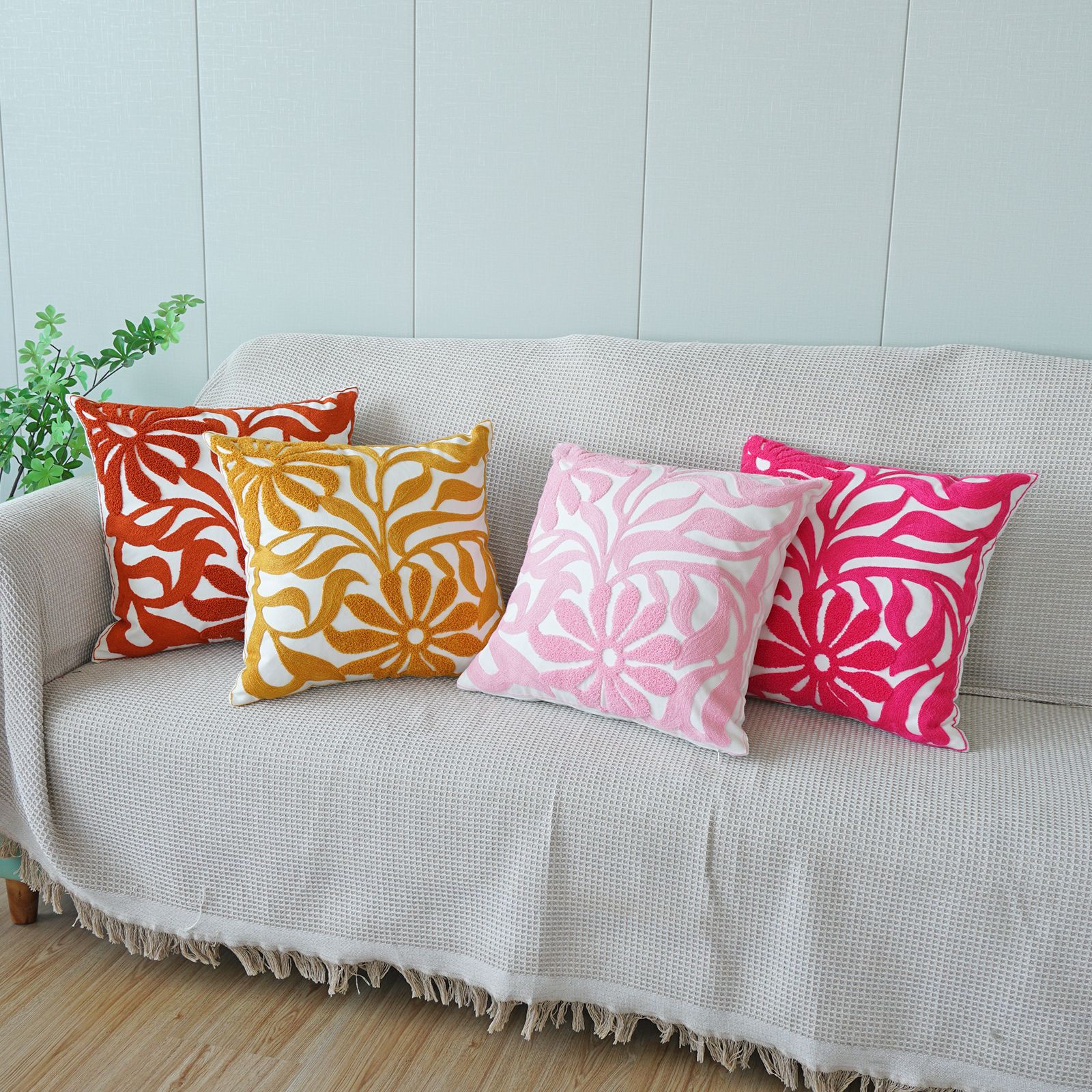 北欧ins风枝蔓花朵刺绣抱枕套沙发靠垫民宿飘窗样板房腰枕靠枕套