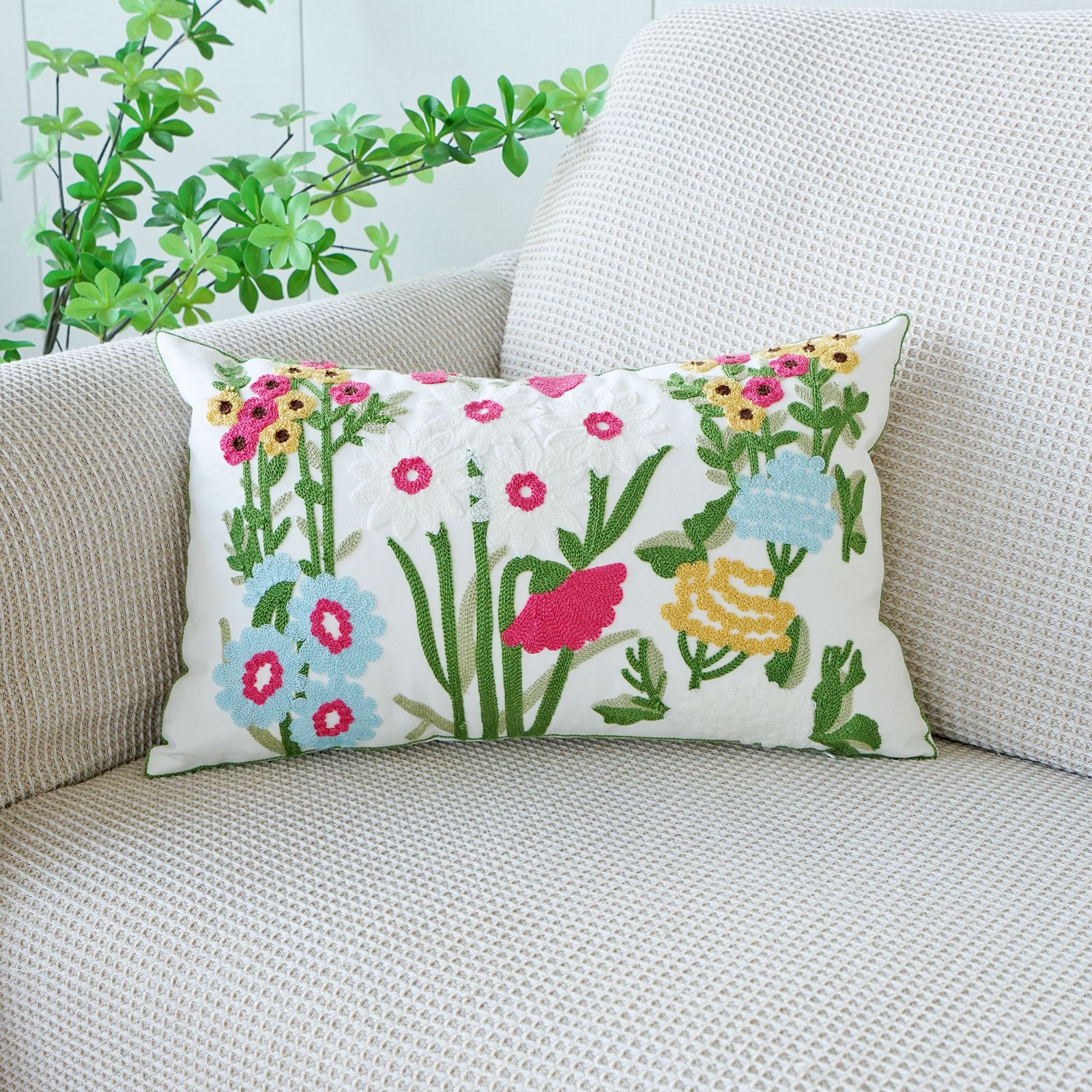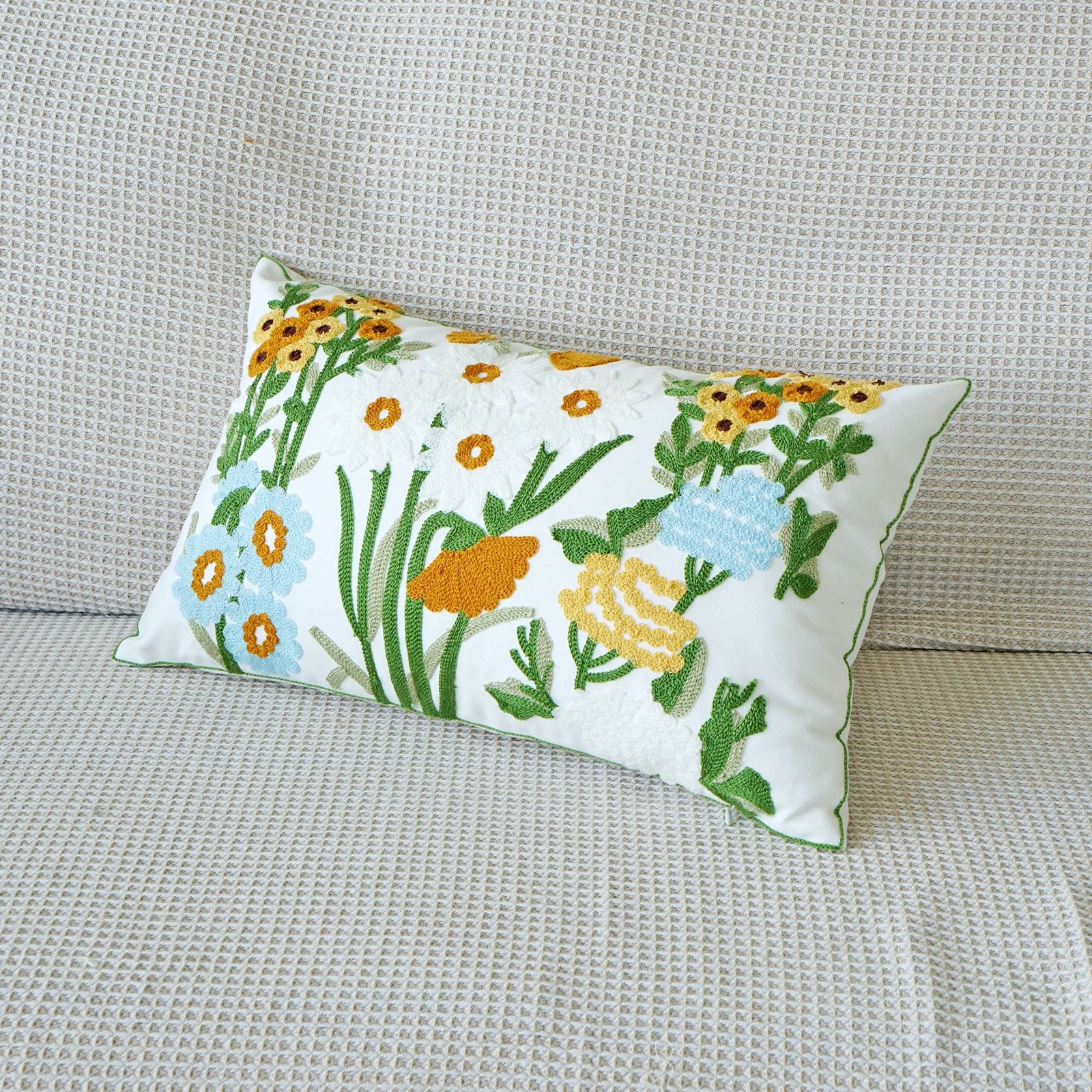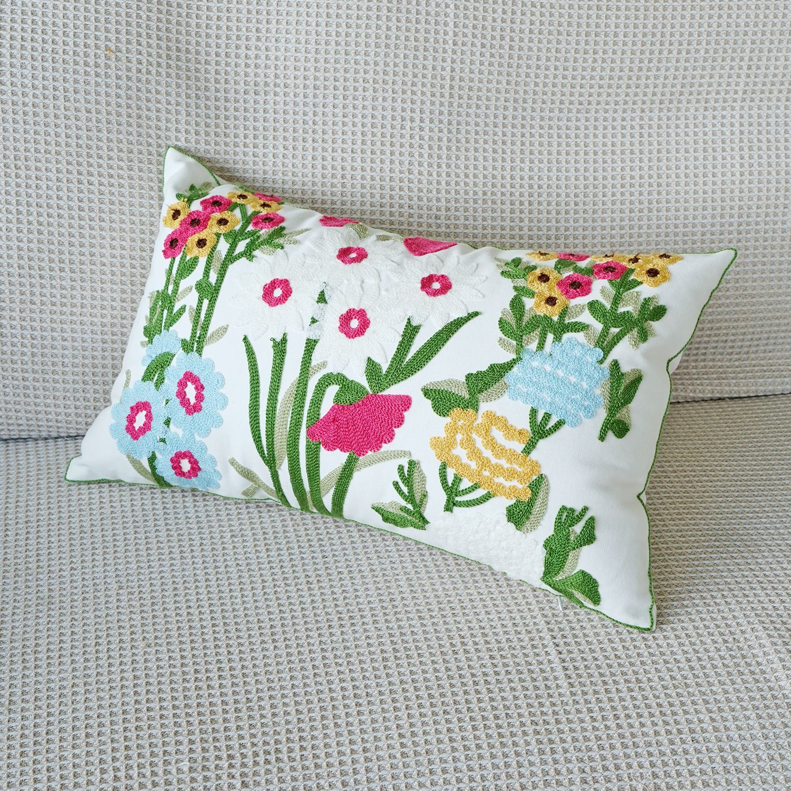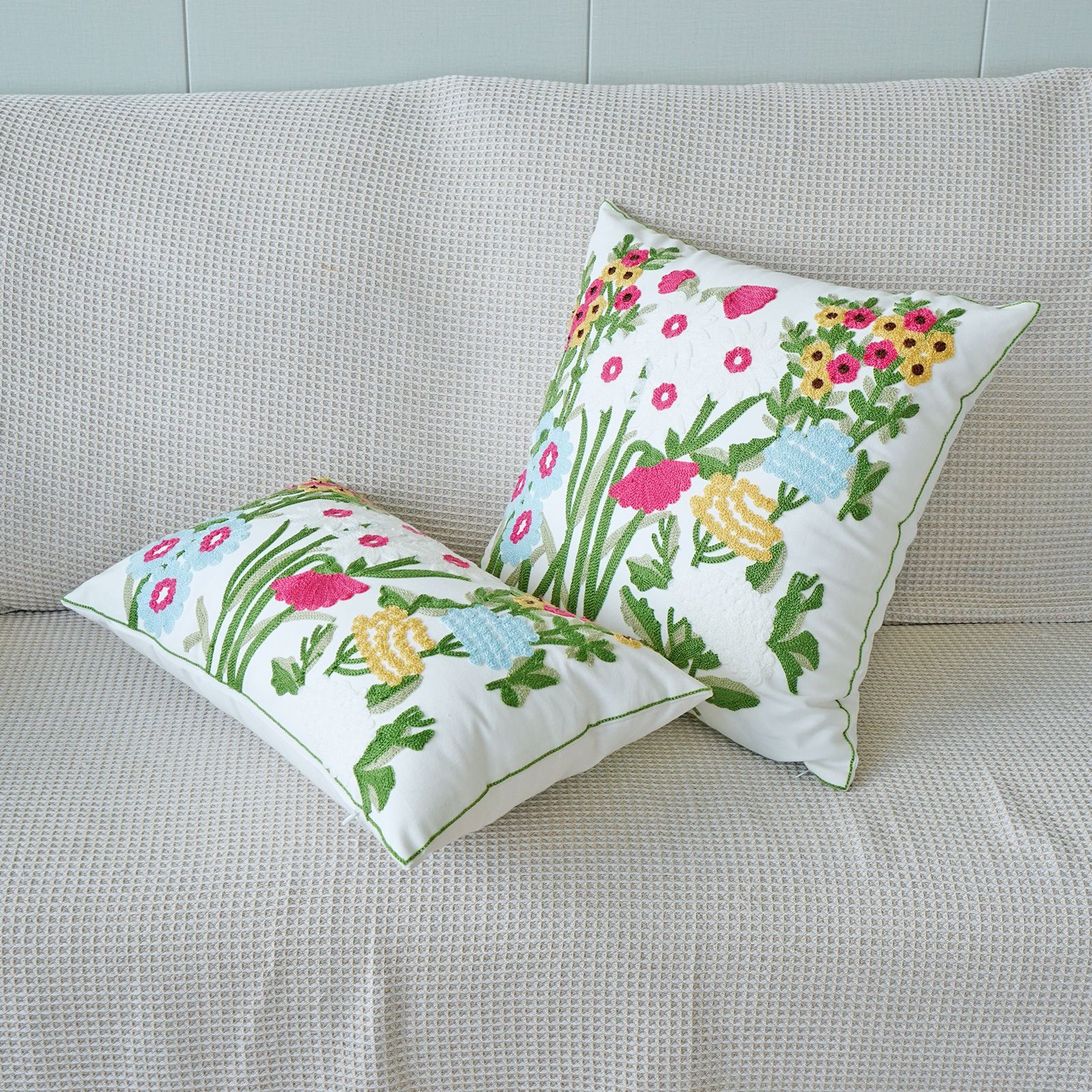 毛巾绣花朵抱枕套ins风沙发床头靠枕办公室靠垫家居装饰软包腰靠