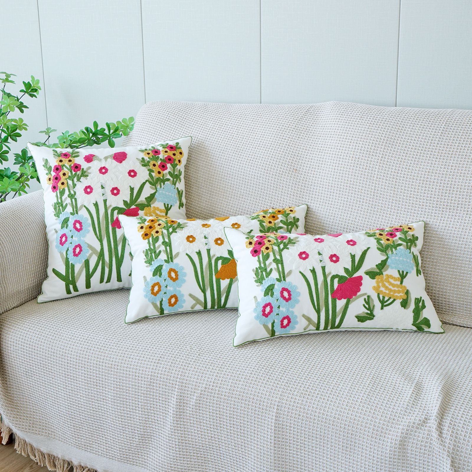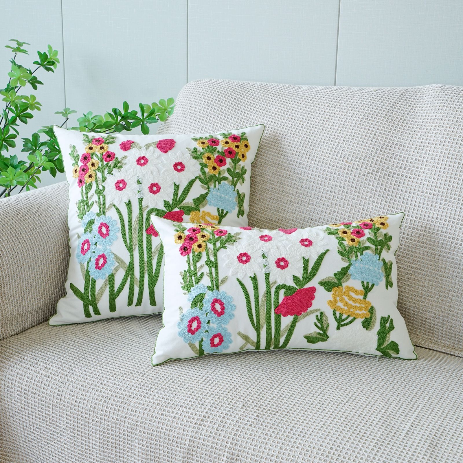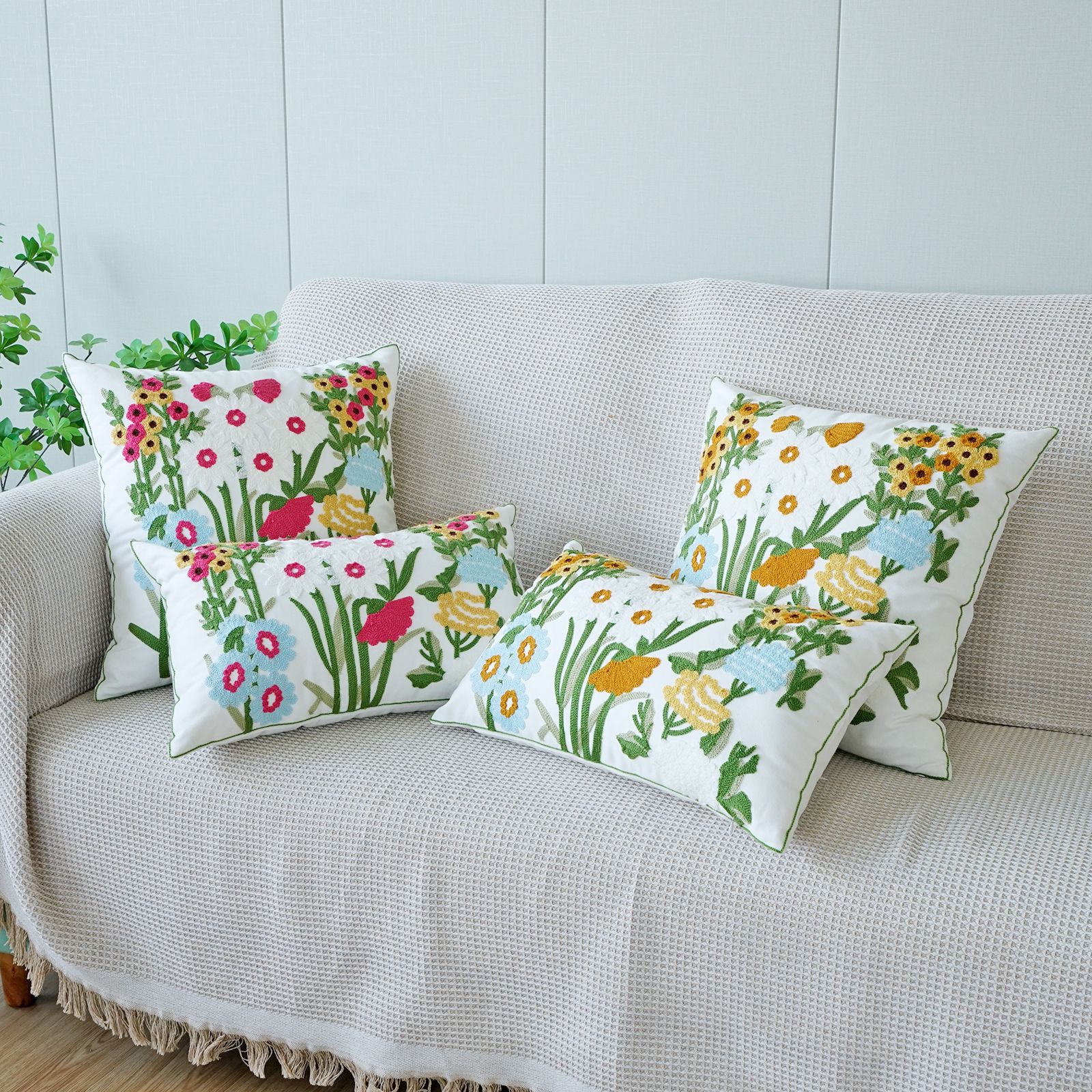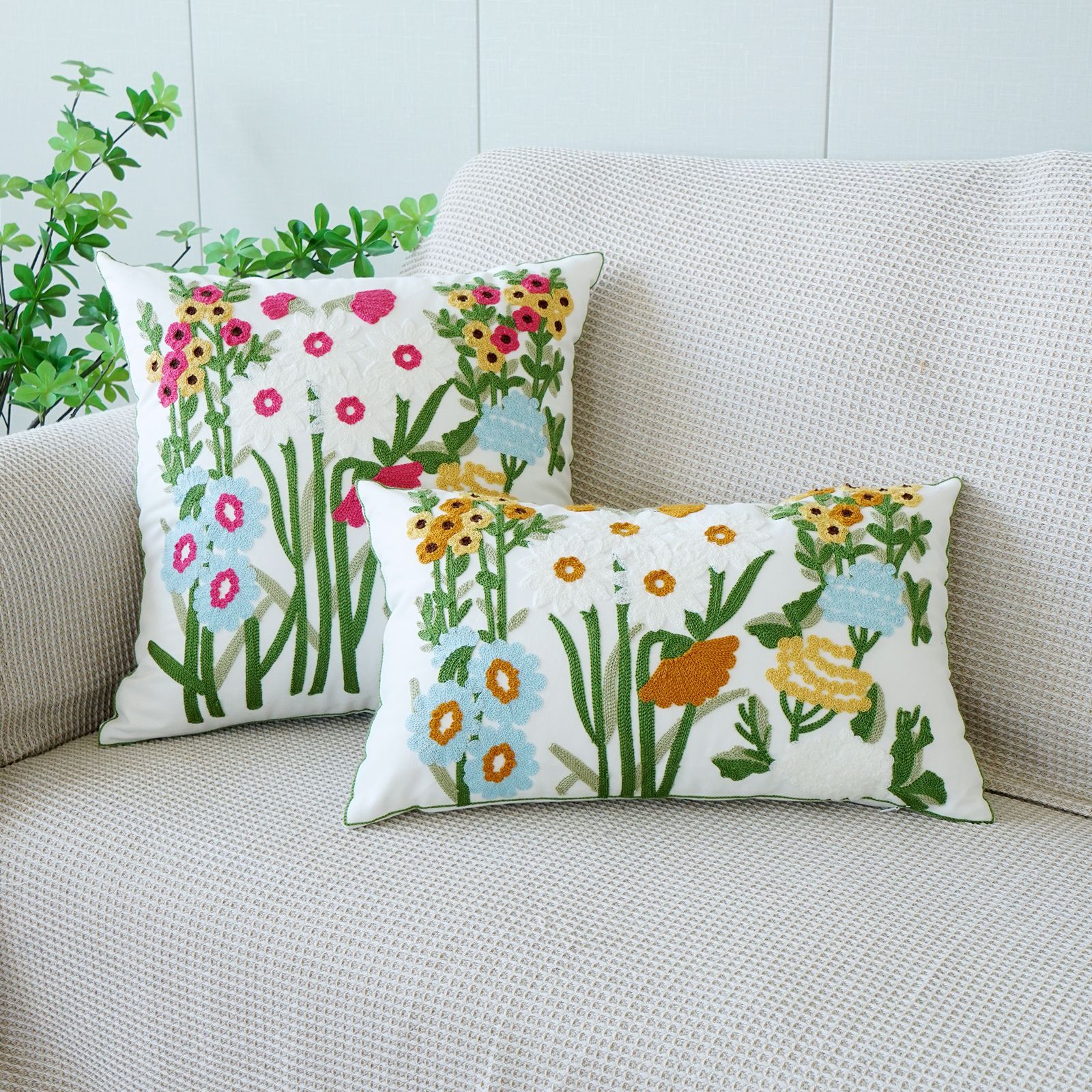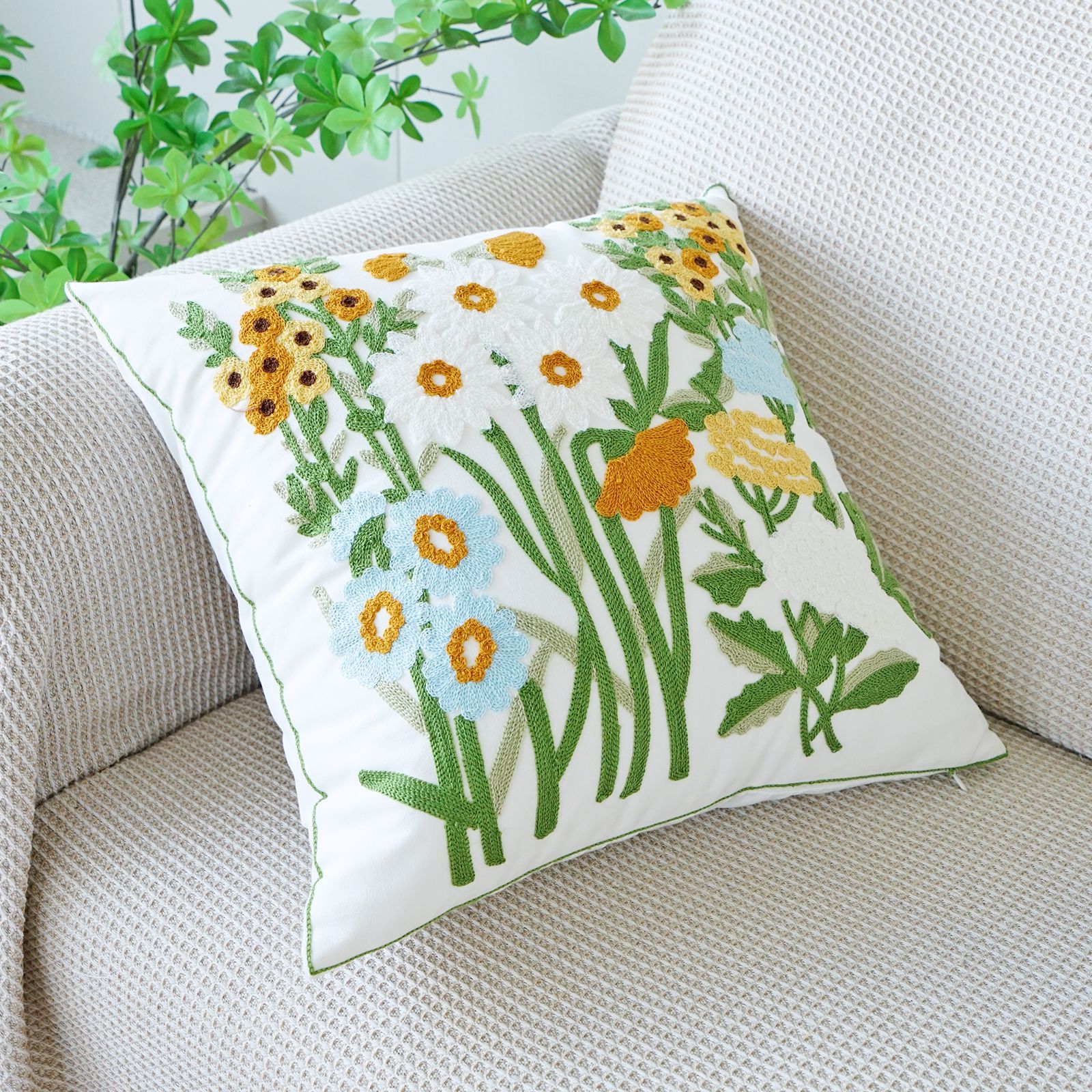 毛巾绣花朵抱枕套ins风沙发床头靠枕办公室靠垫家居装饰软包腰靠