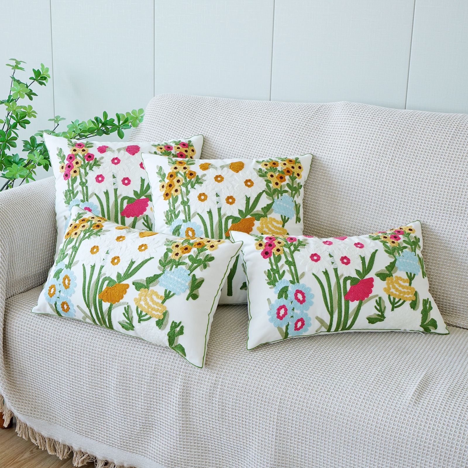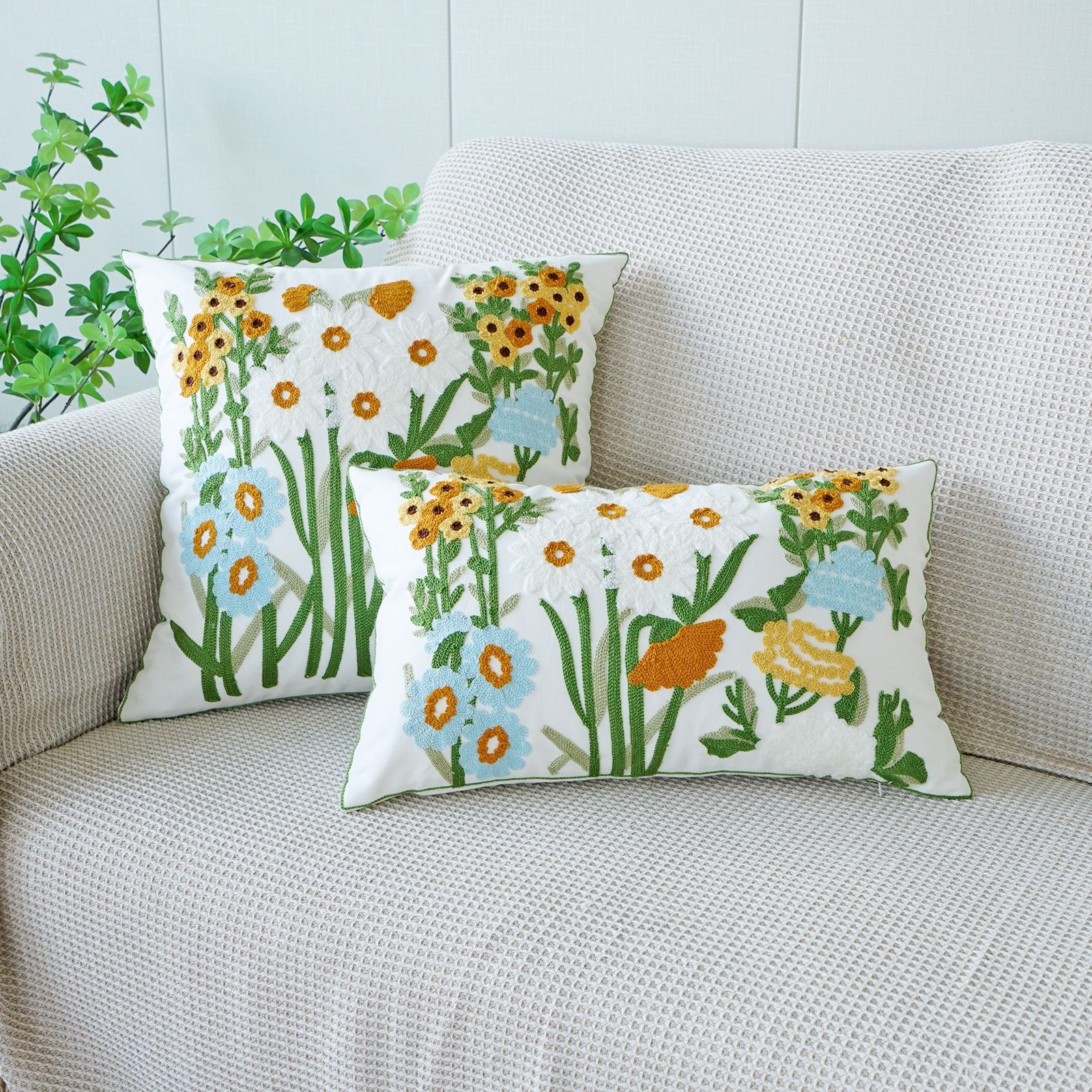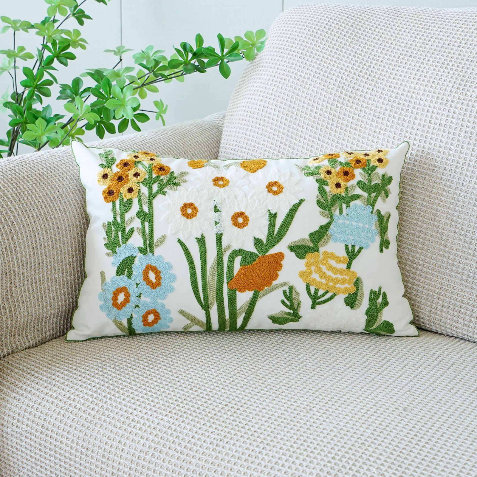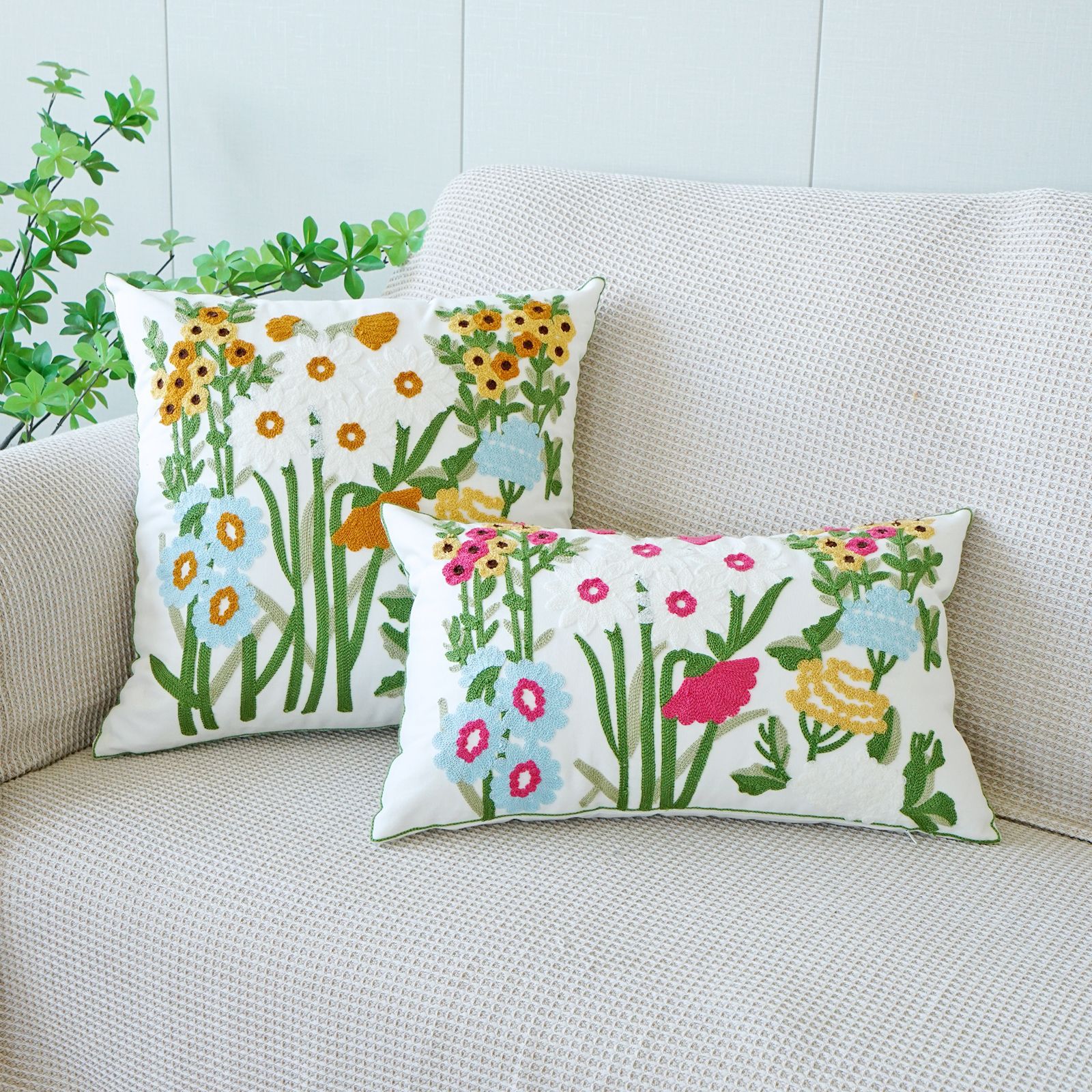毛巾绣花朵抱枕套ins风沙发床头靠枕办公室靠垫家居装饰软包腰靠