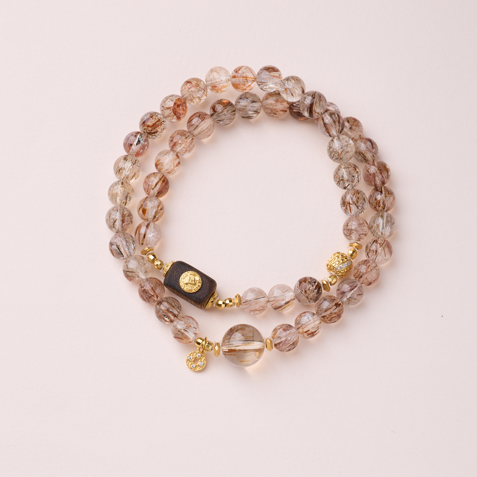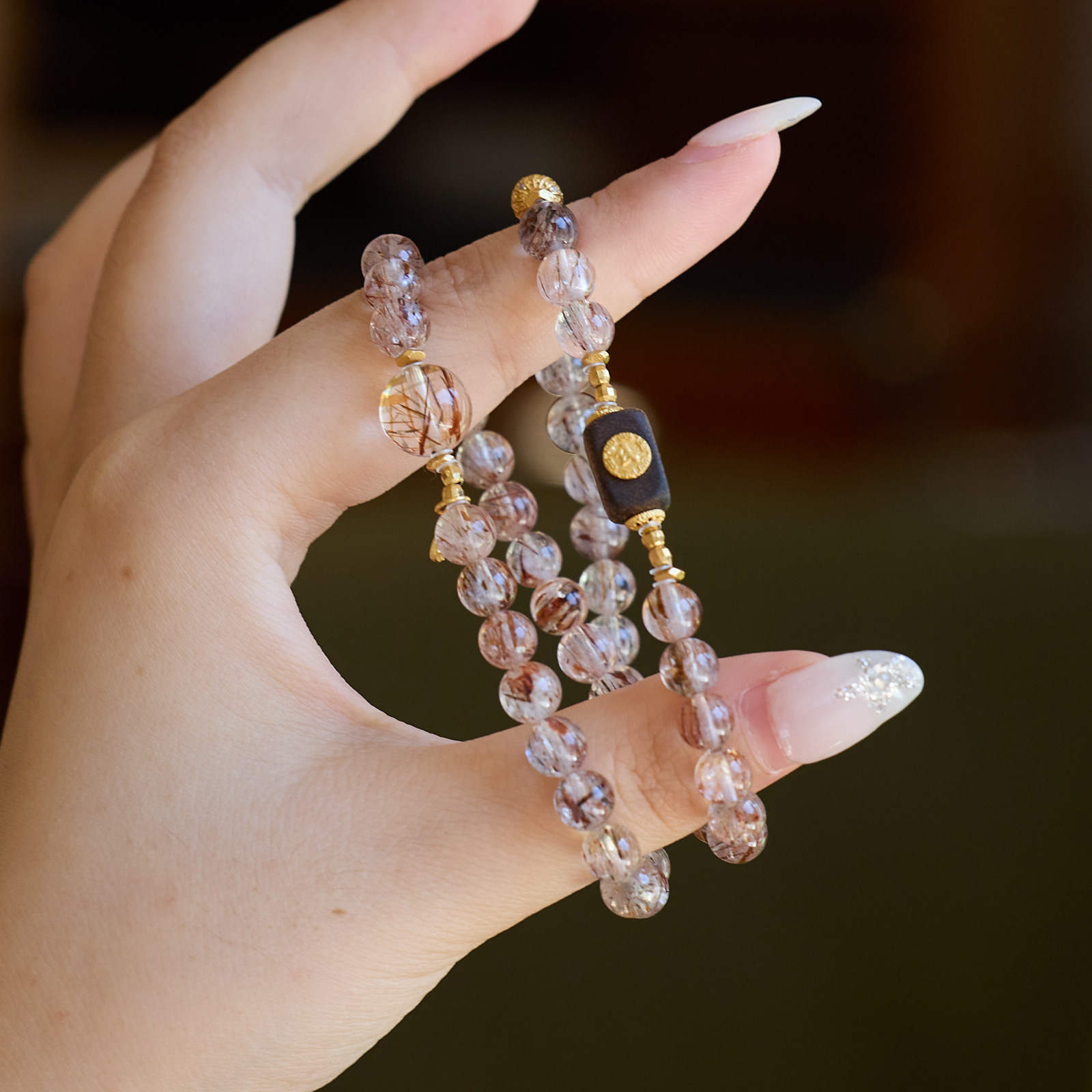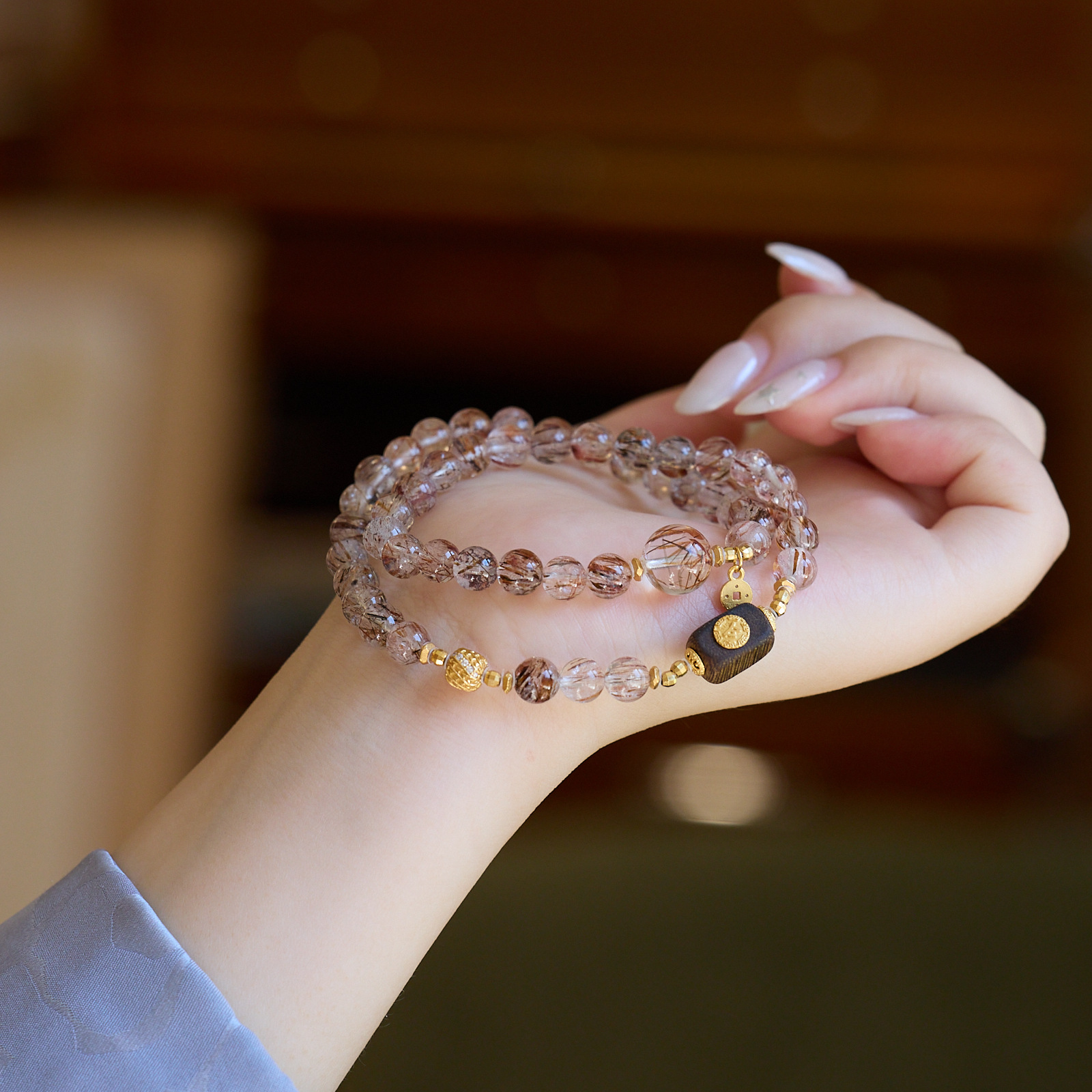 【超七疏影】黑金超七天然水晶双圈手串叠戴老钱风送闺蜜高级手链