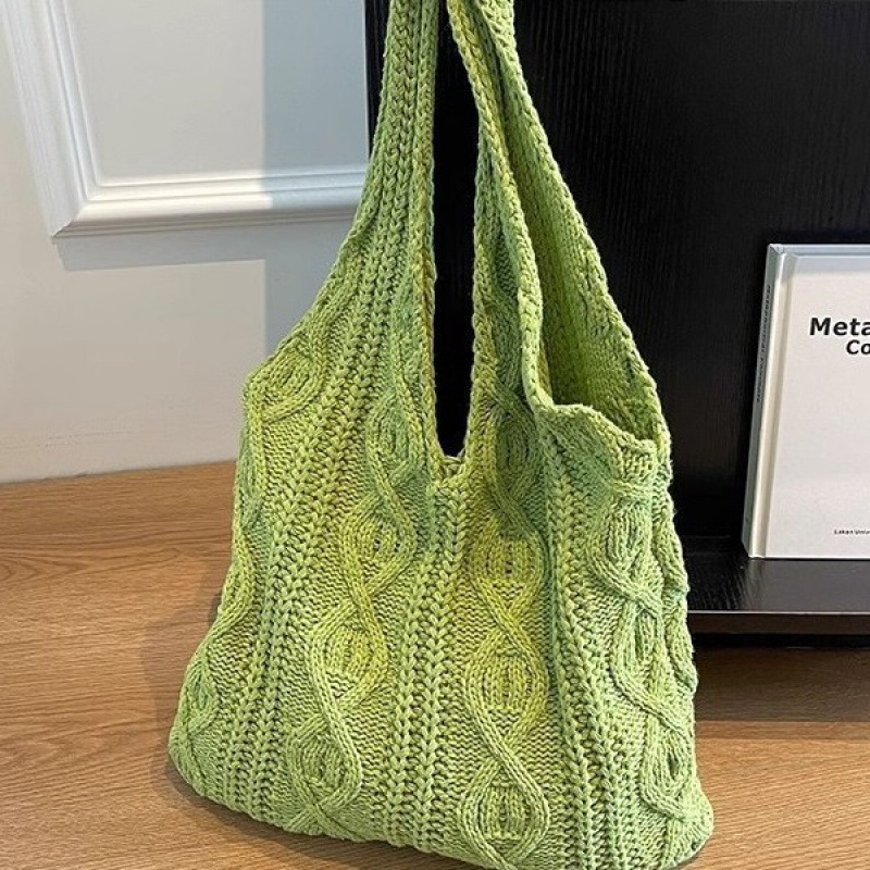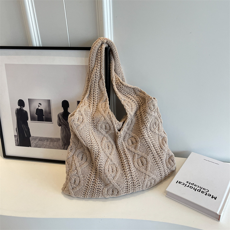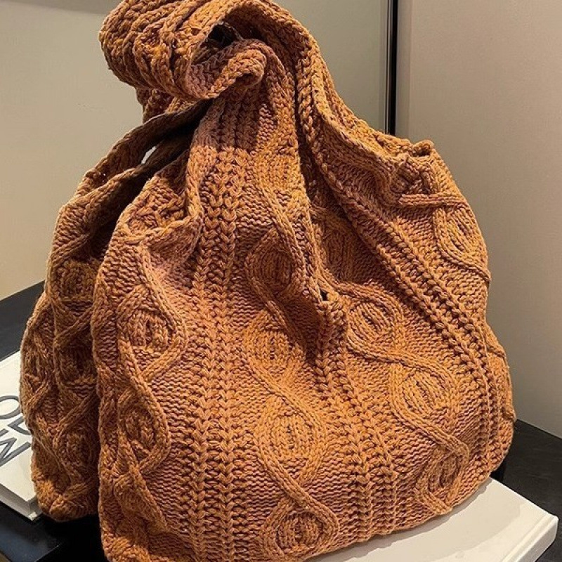 复古针织包毛线编织包托特包百搭单肩包女士手提包购物袋手工编织