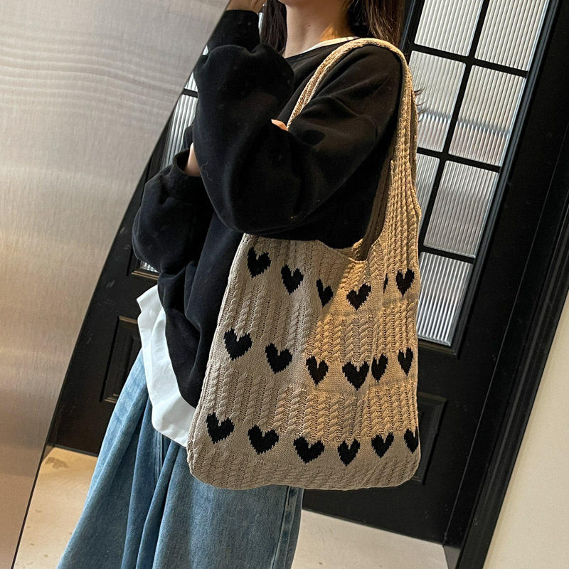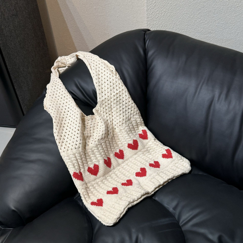 新款跨境针织包编织包爱心女包包高级感精致毛线手提单肩包购物袋