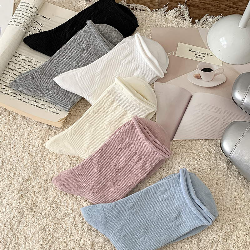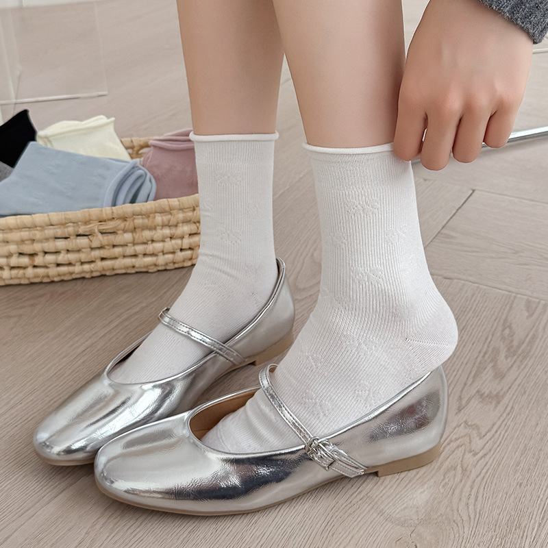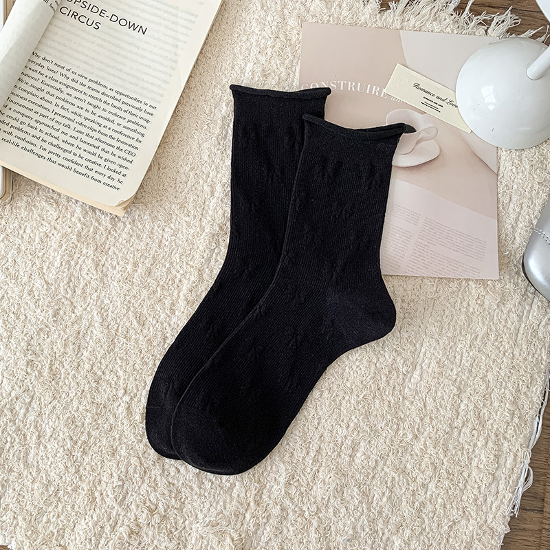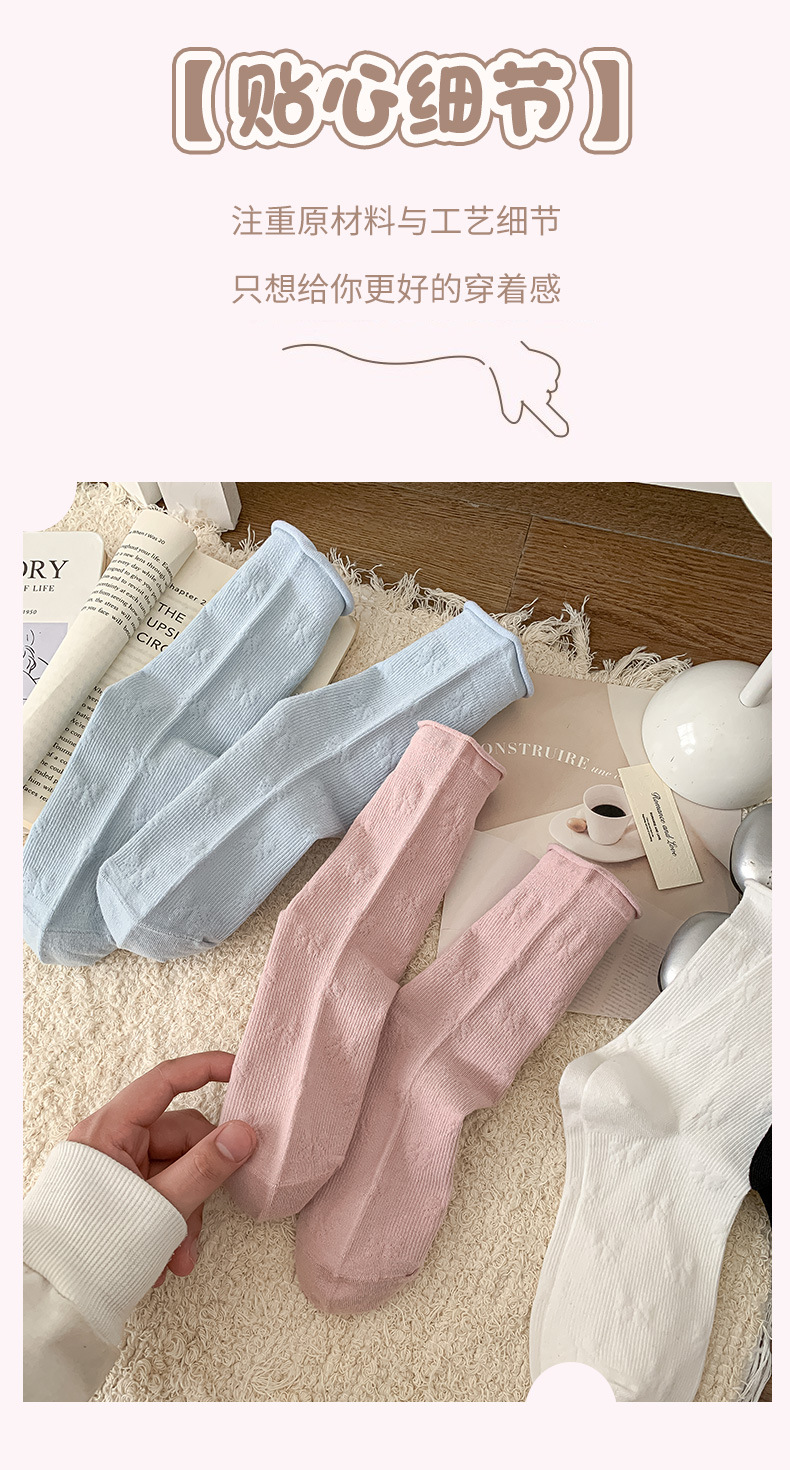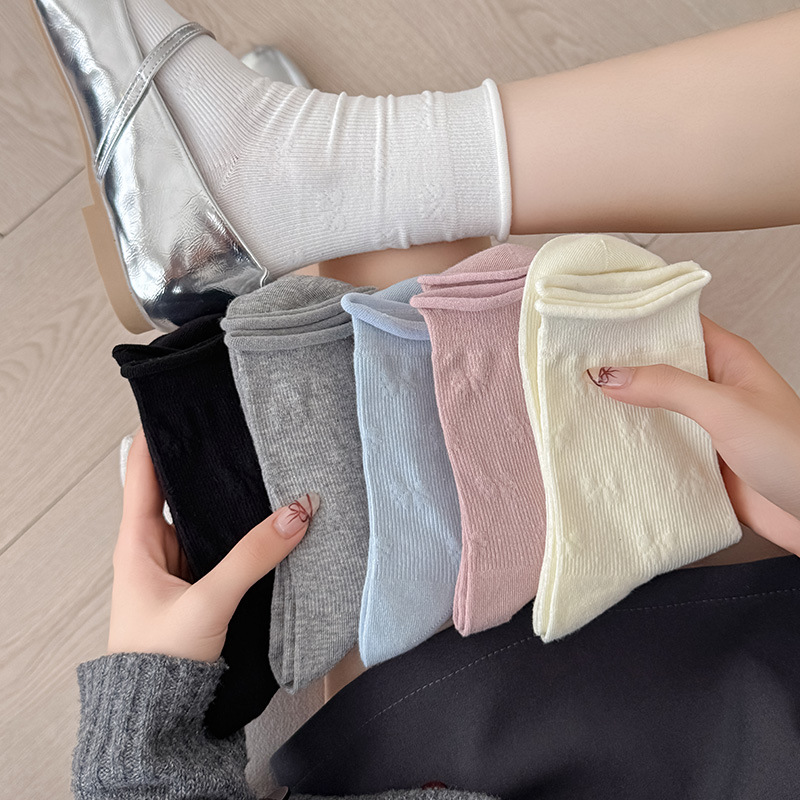 立体浮雕蝴蝶结袜子秋季新款芭蕾风中筒袜时尚百搭卷边堆堆袜