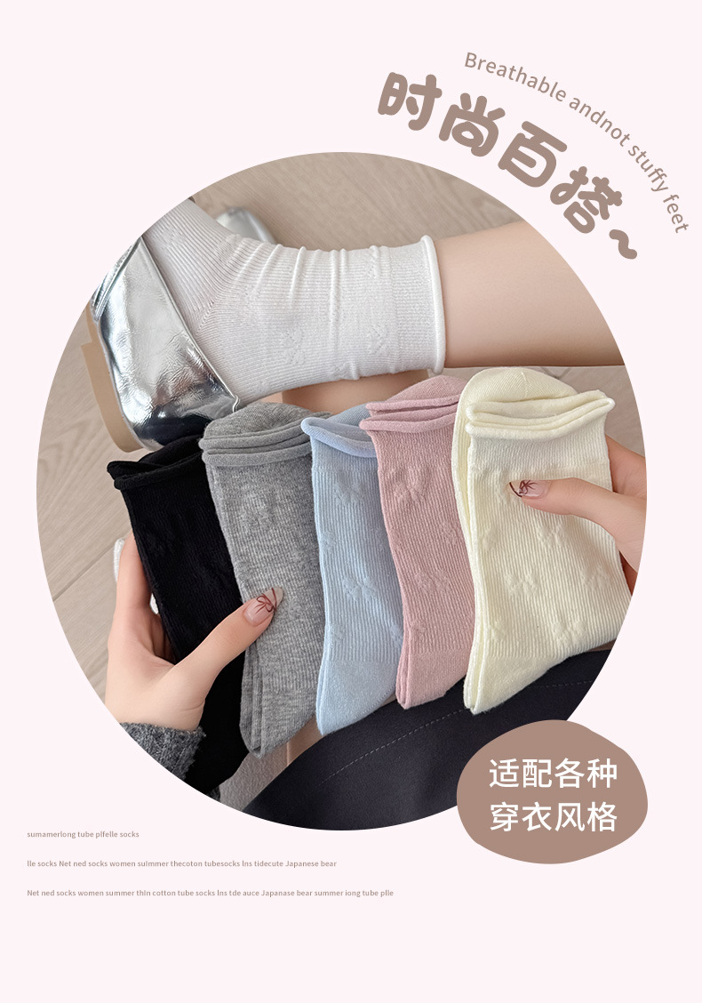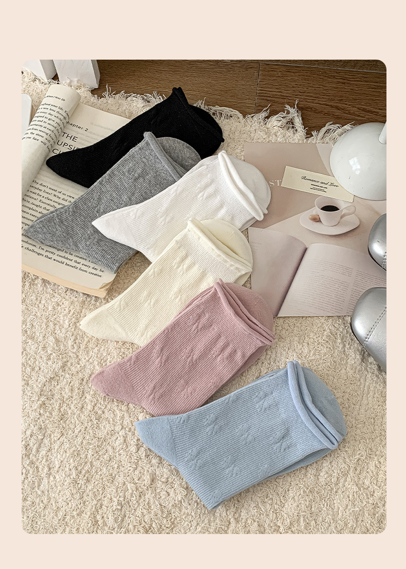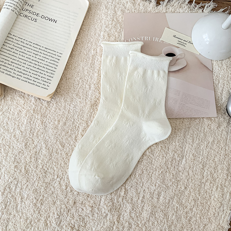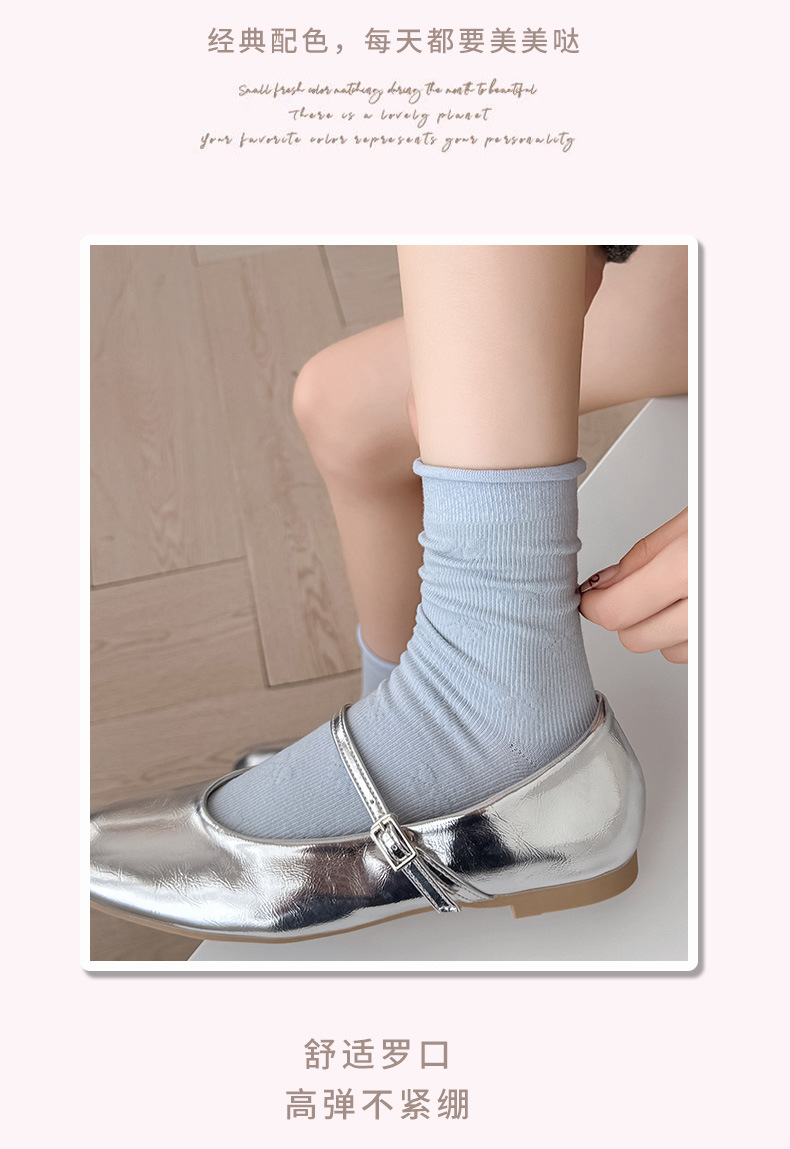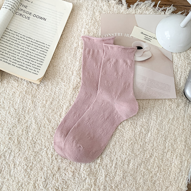 立体浮雕蝴蝶结袜子秋季新款芭蕾风中筒袜时尚百搭卷边堆堆袜