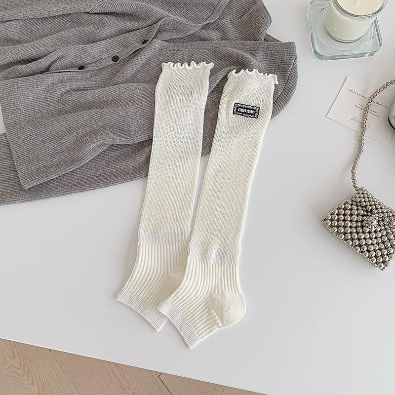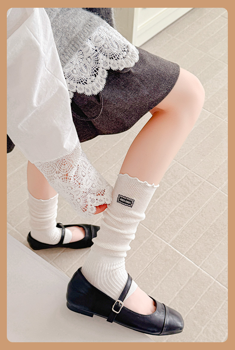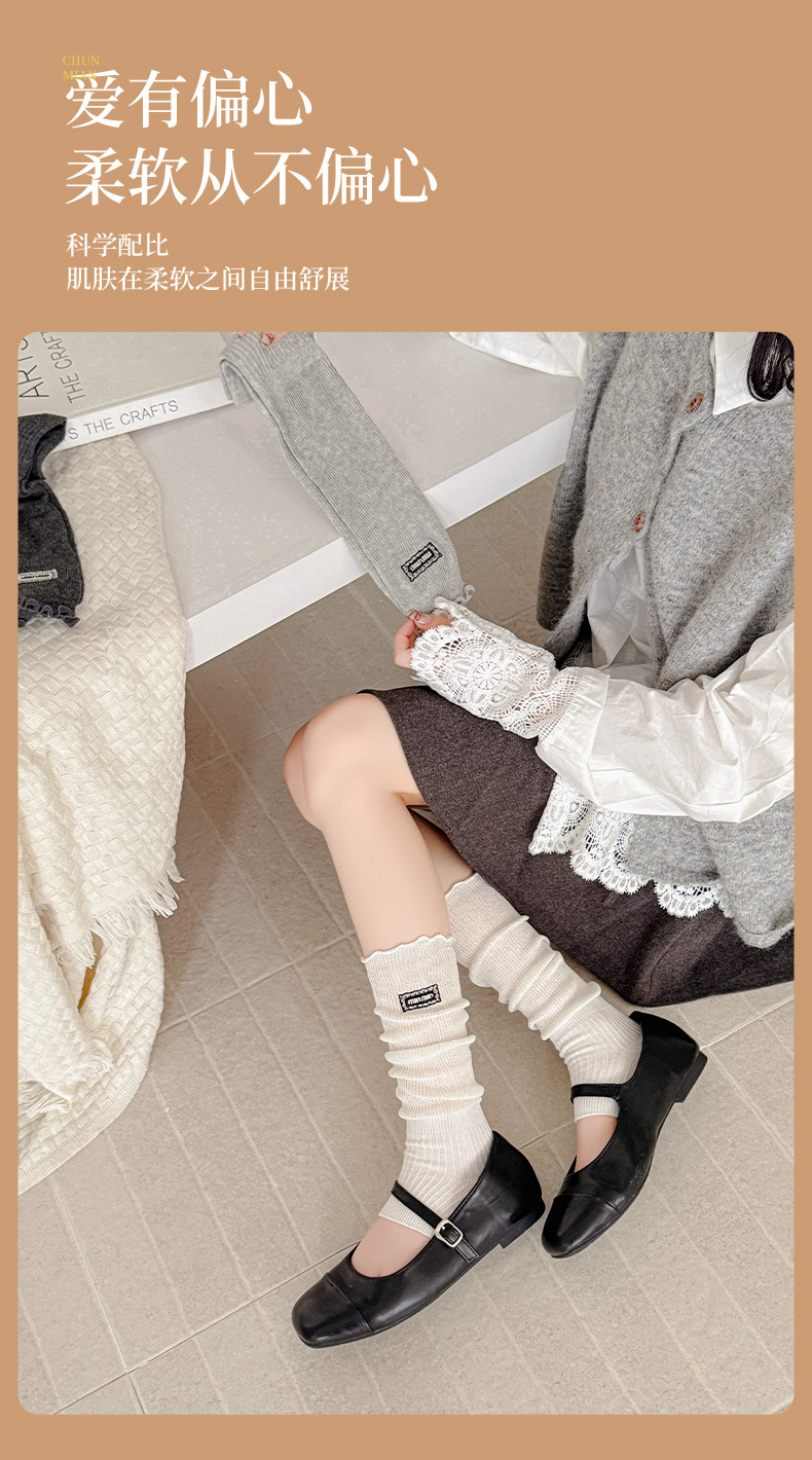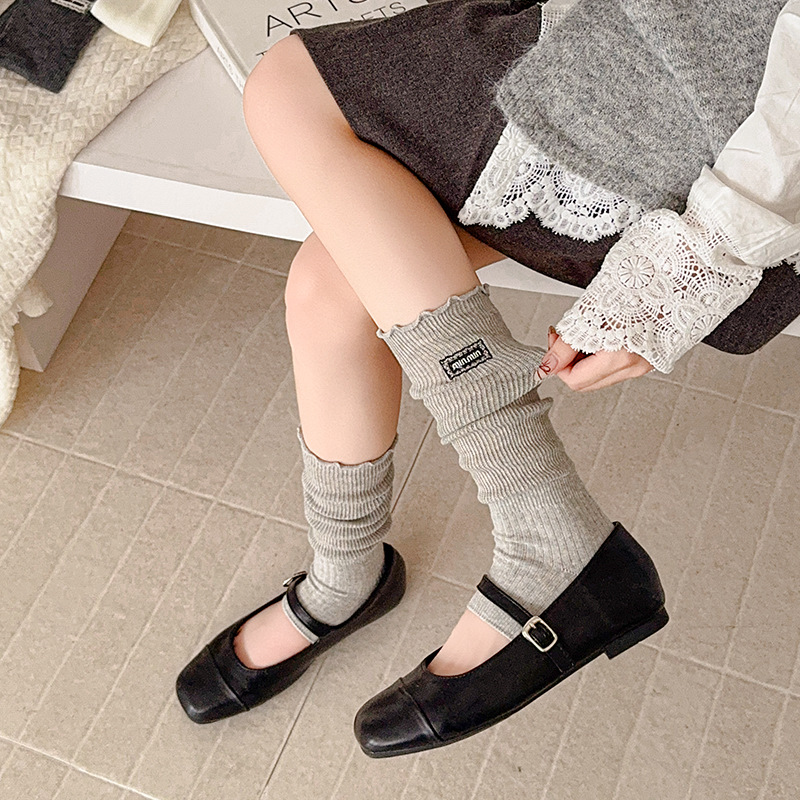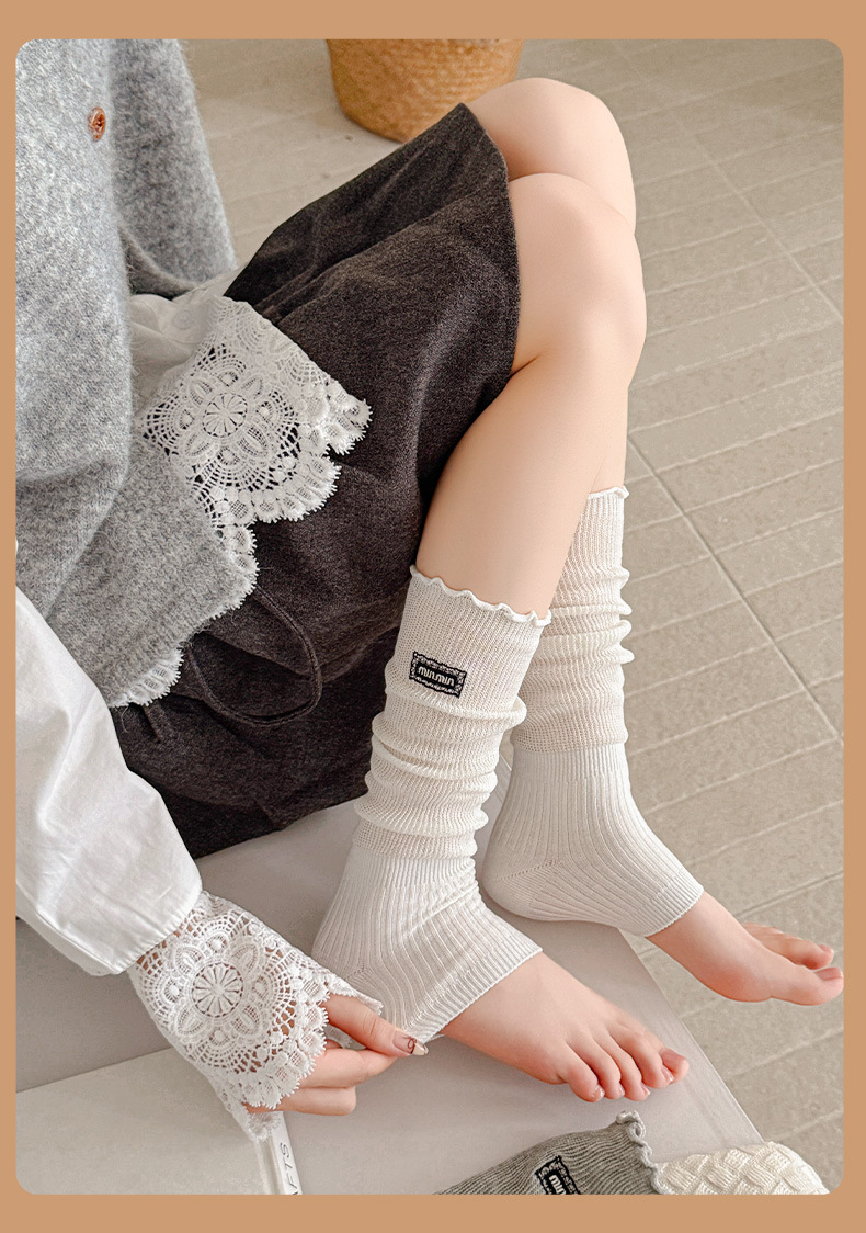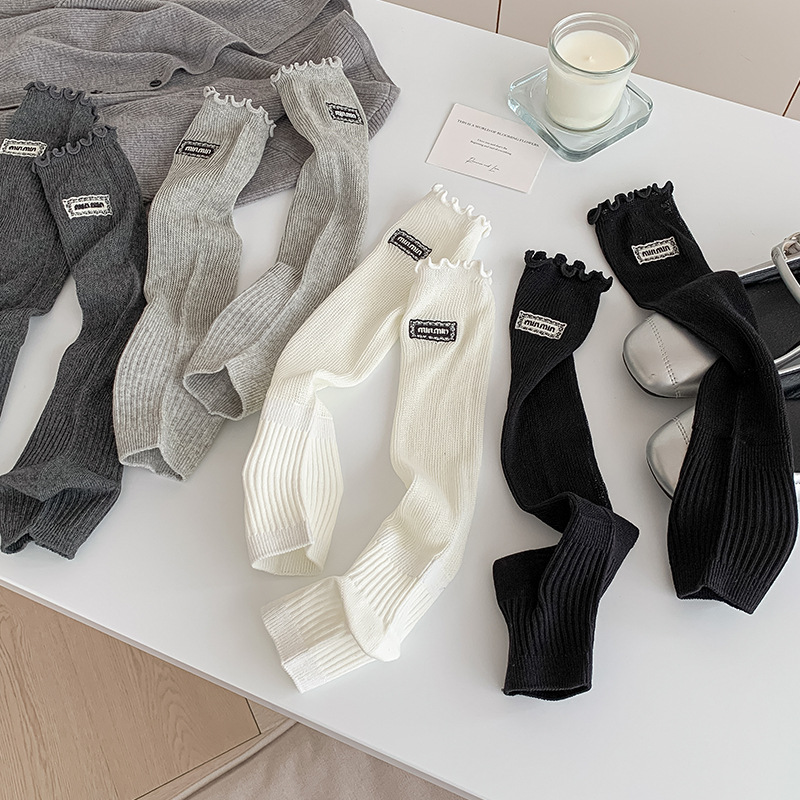 miu系踩脚袜套女韩版字母刺绣脚套双针木耳边堆堆袜春秋薄款腿套