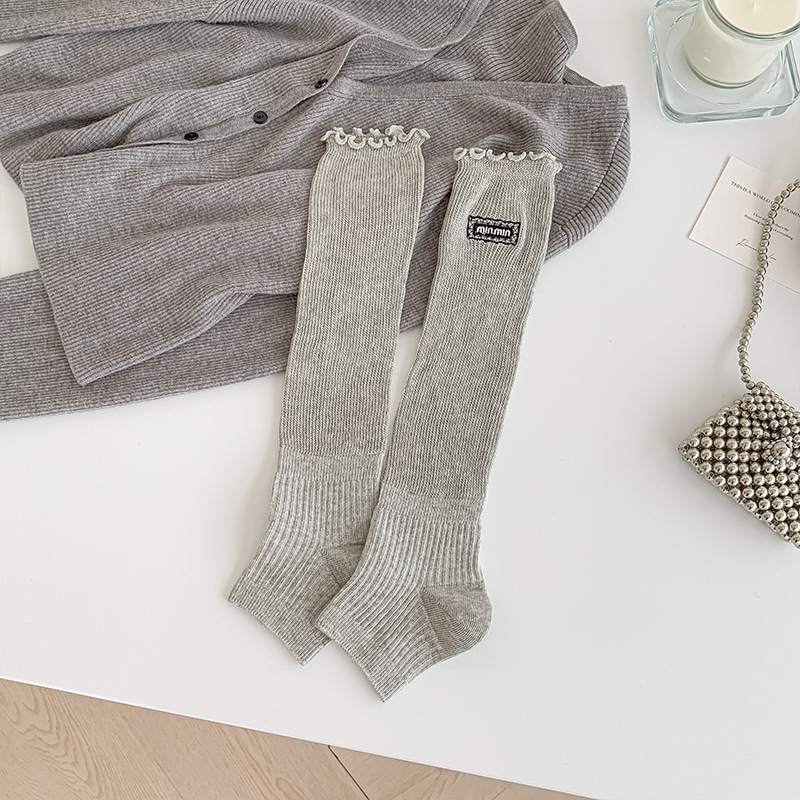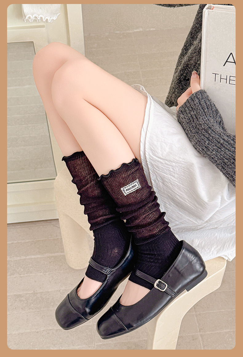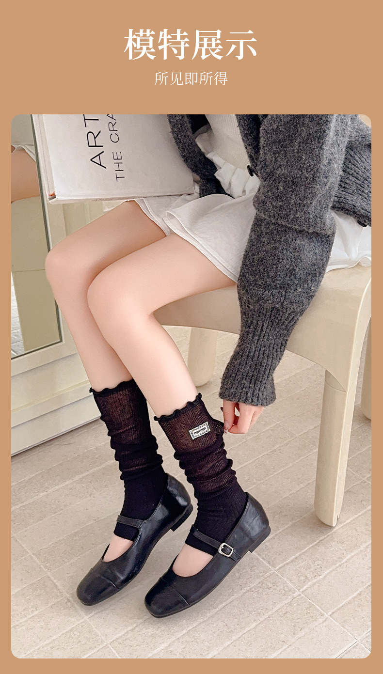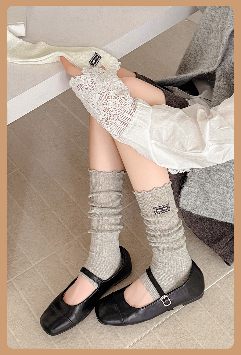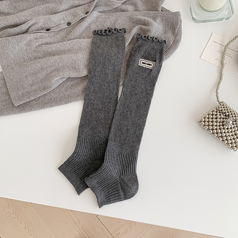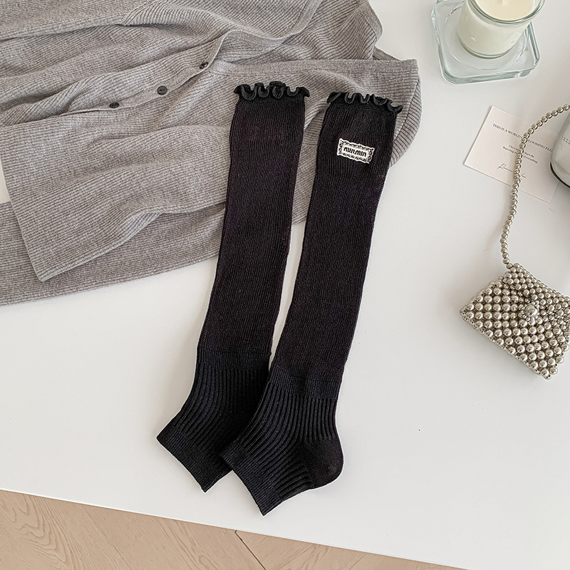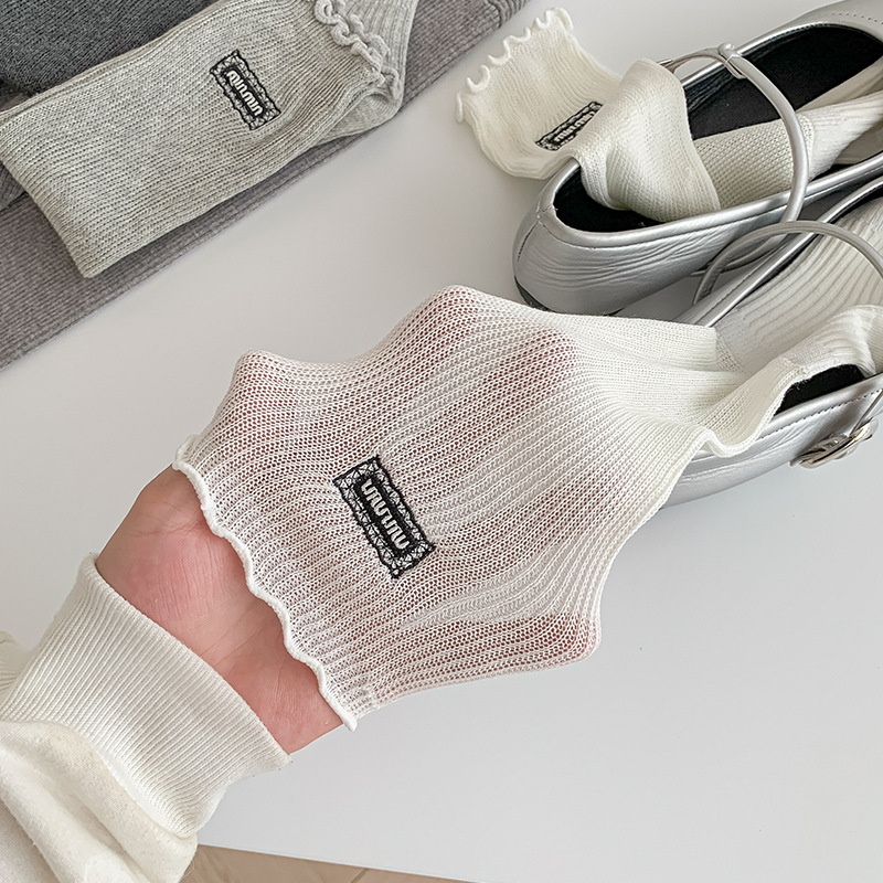 miu系踩脚袜套女韩版字母刺绣脚套双针木耳边堆堆袜春秋薄款腿套
