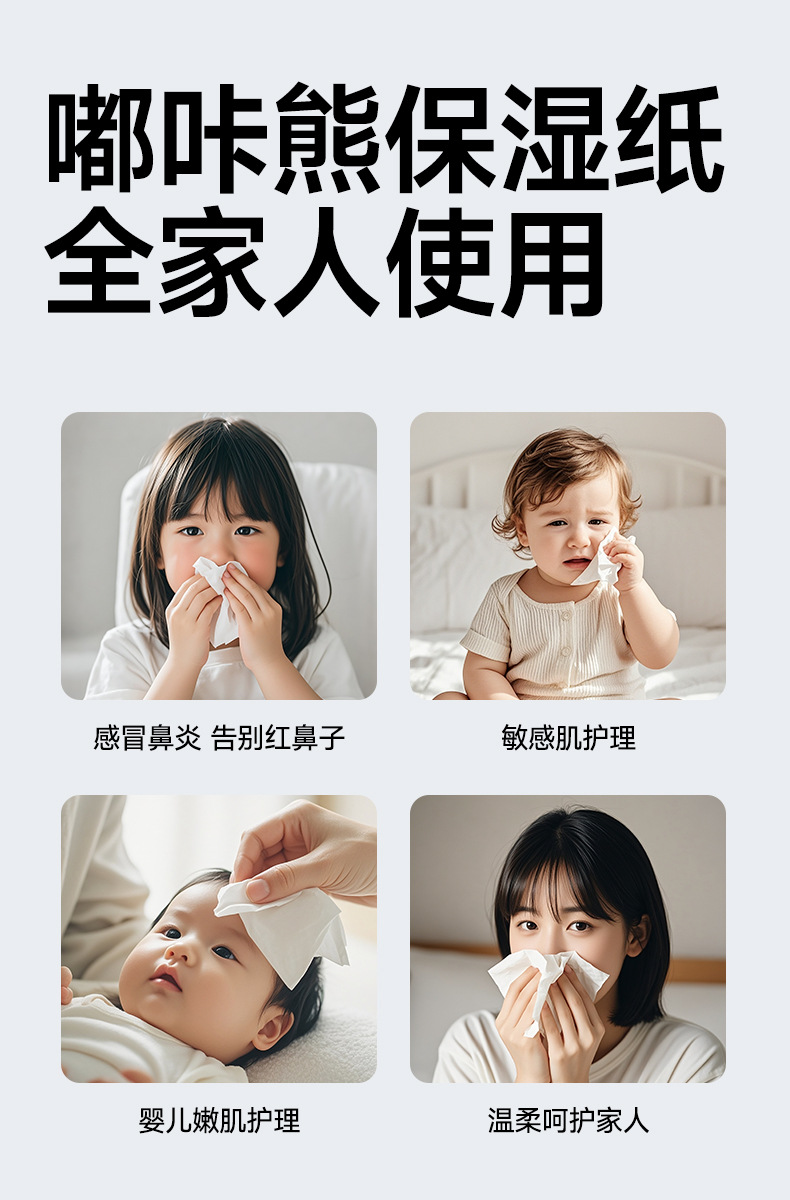 嘟咔熊乳霜纸家用150抽云柔巾婴儿专用保湿纸巾擦鼻子面巾纸抽纸