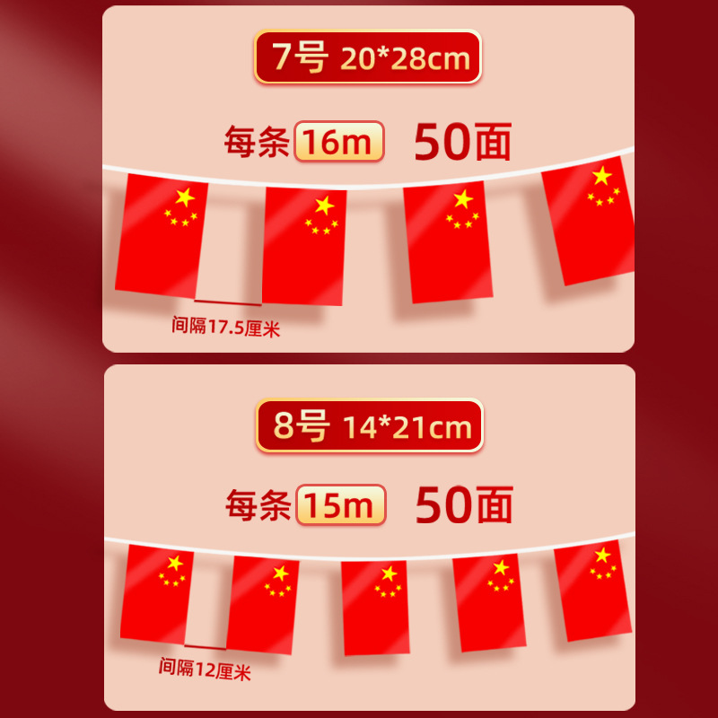 7号8号中国小国旗串吊旗挂旗批发国庆节装饰五星红旗国旗串旗