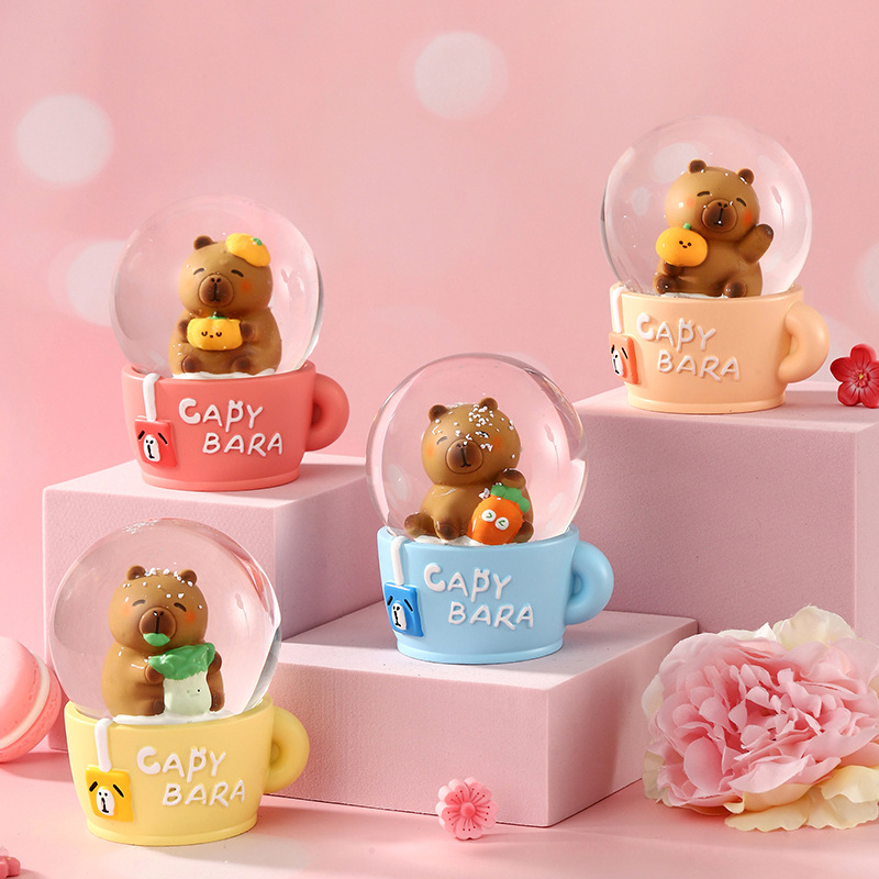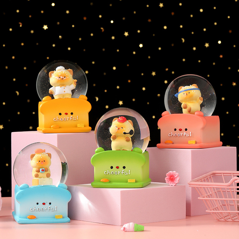 新款卡通星星兔提篮水晶球发光玻璃球树脂摆件少女心儿童玩具批发