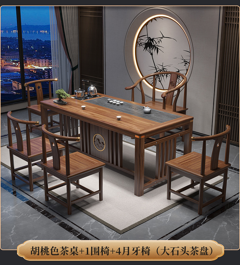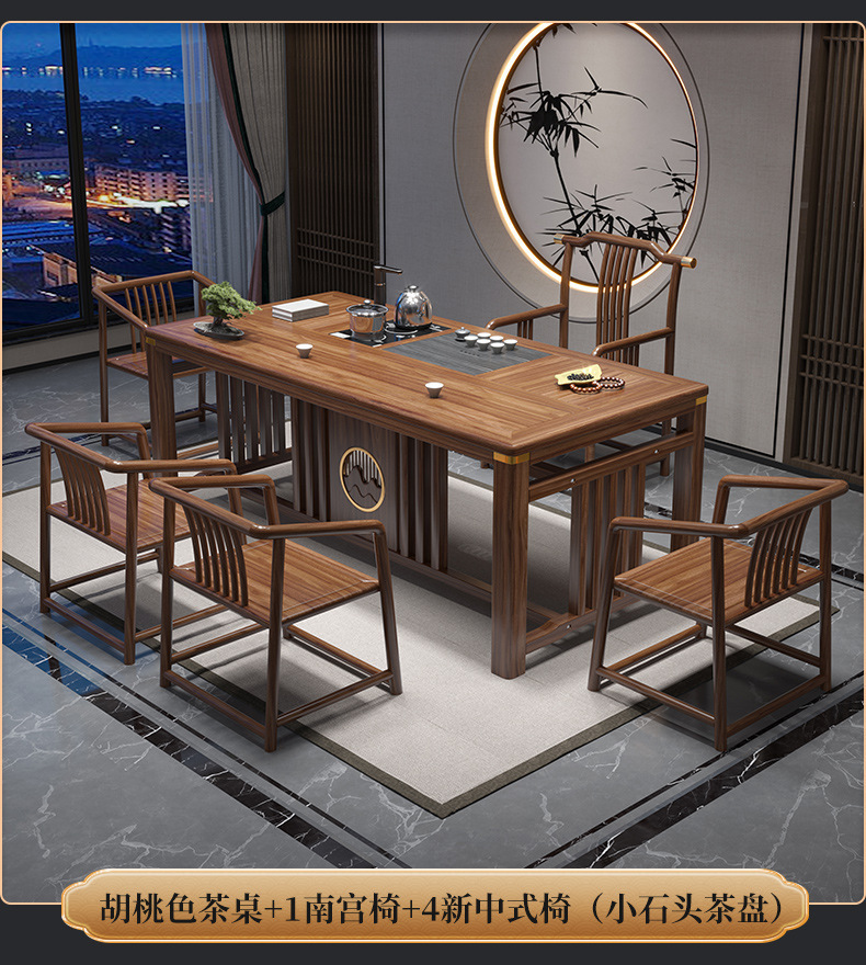 新中式实木茶桌椅组合功夫茶台办公室家用全自动烧水一体泡茶桌