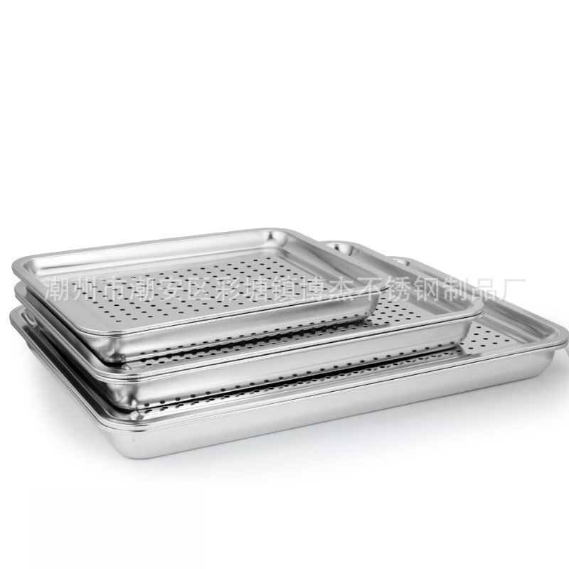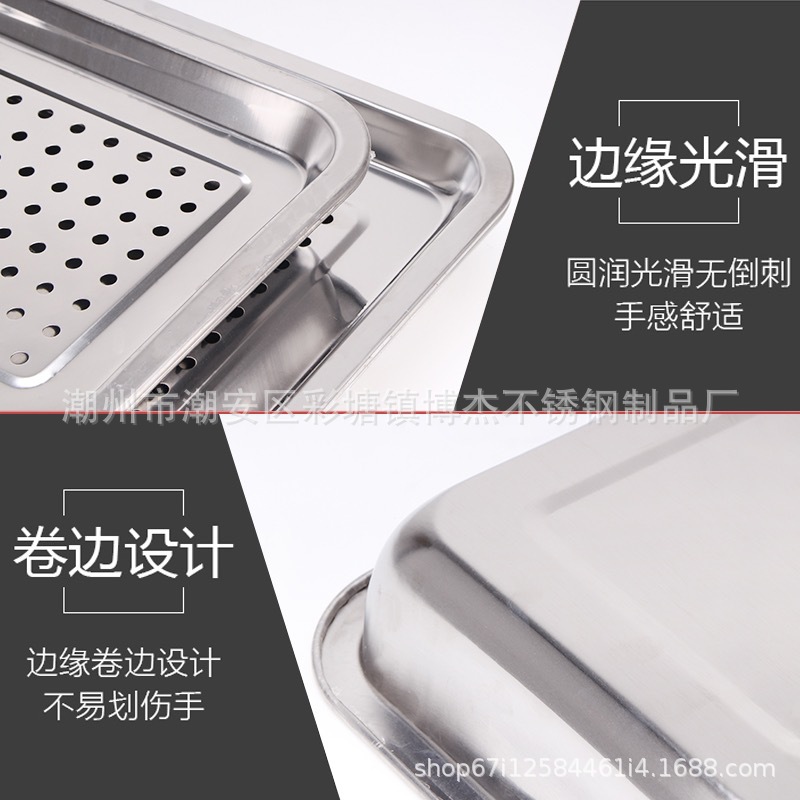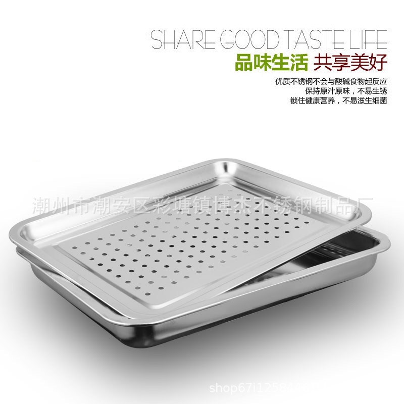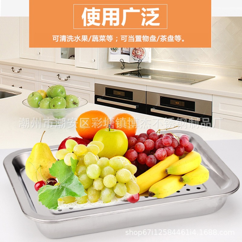厂家直发05加厚不锈钢双层茶池茶盘储水式托盘过滤水盘沥水盘方盘