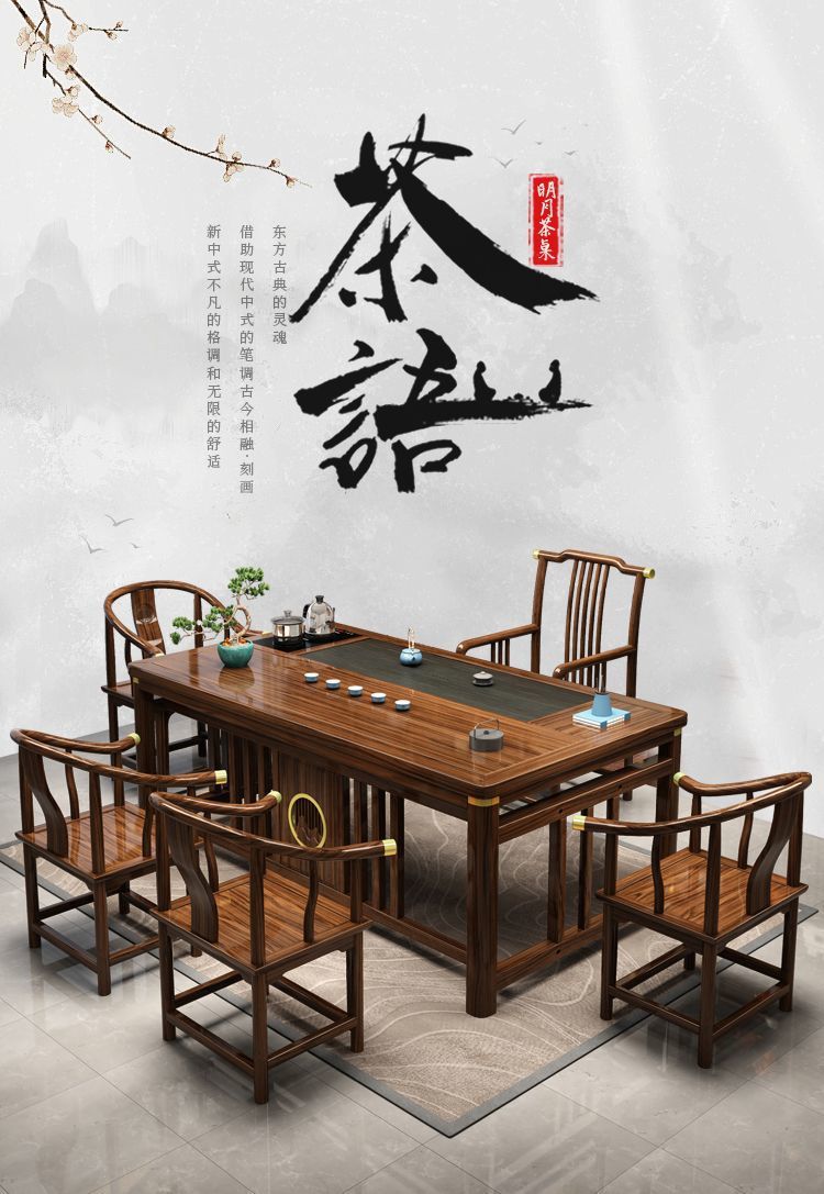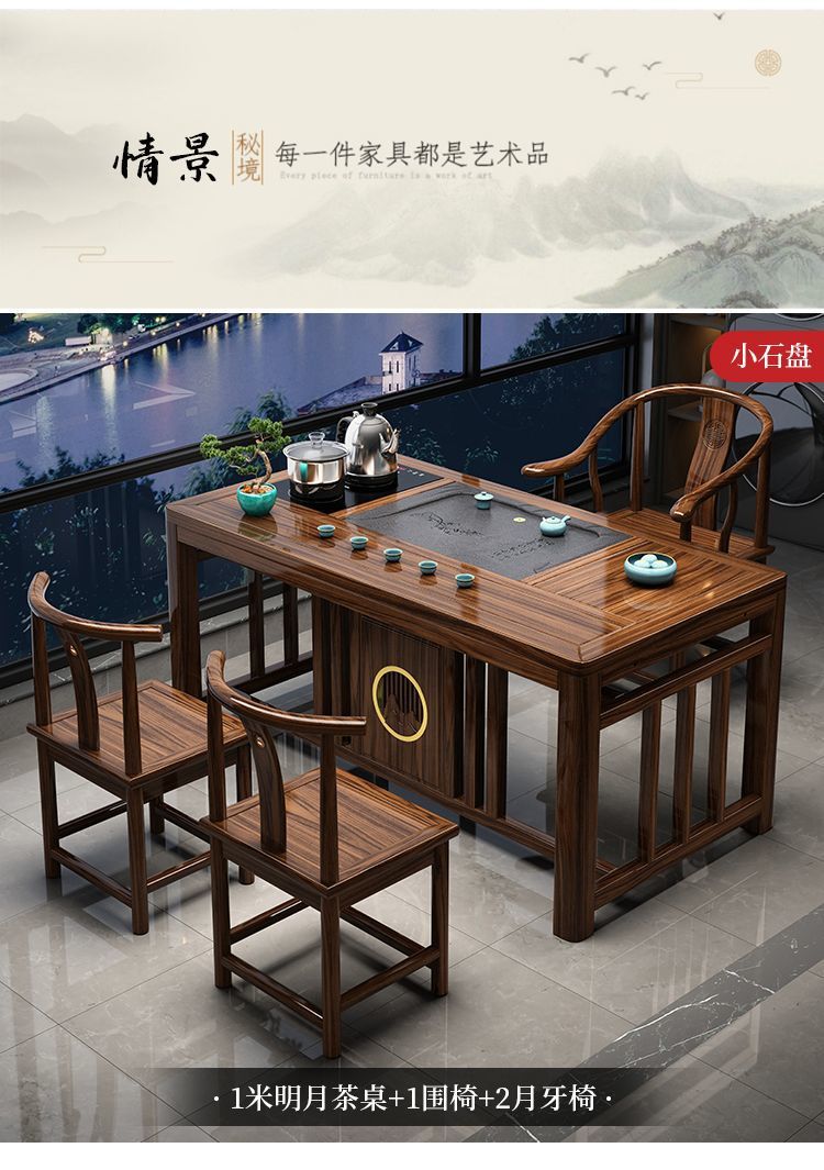 新中式实木茶桌椅组合家用泡茶台小户型茶几一体一整套禅意喝茶桌