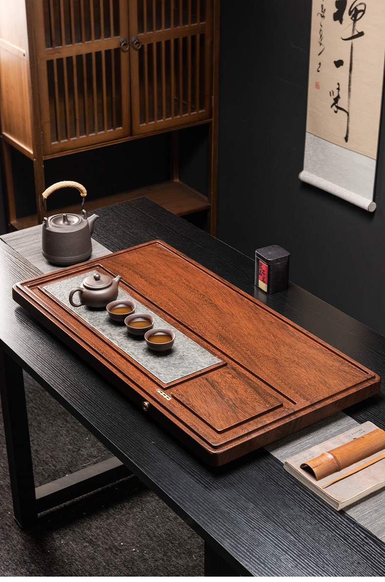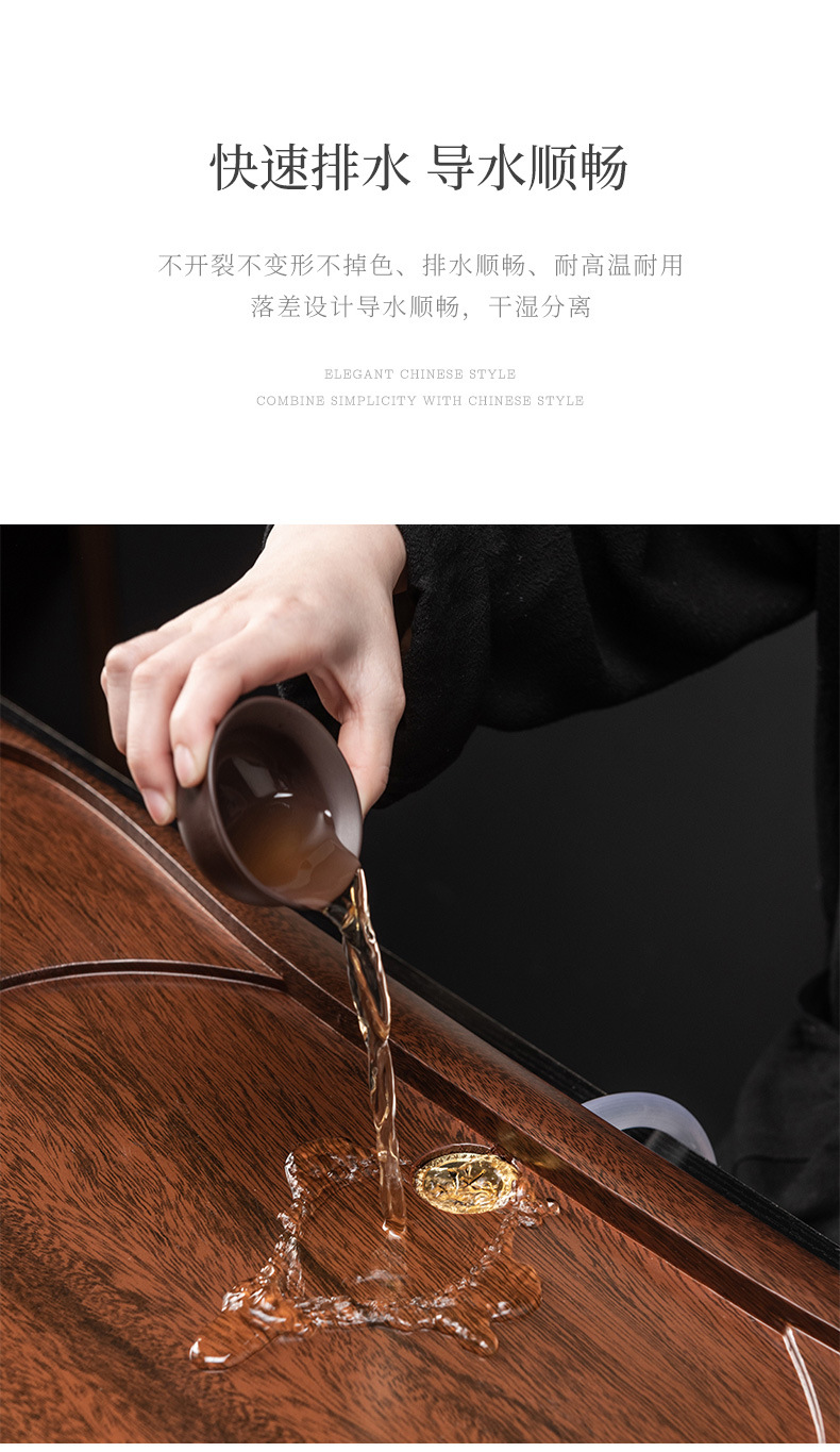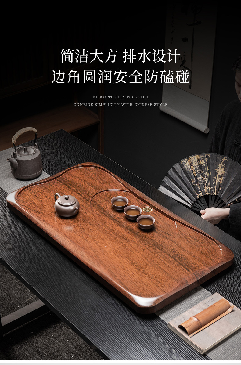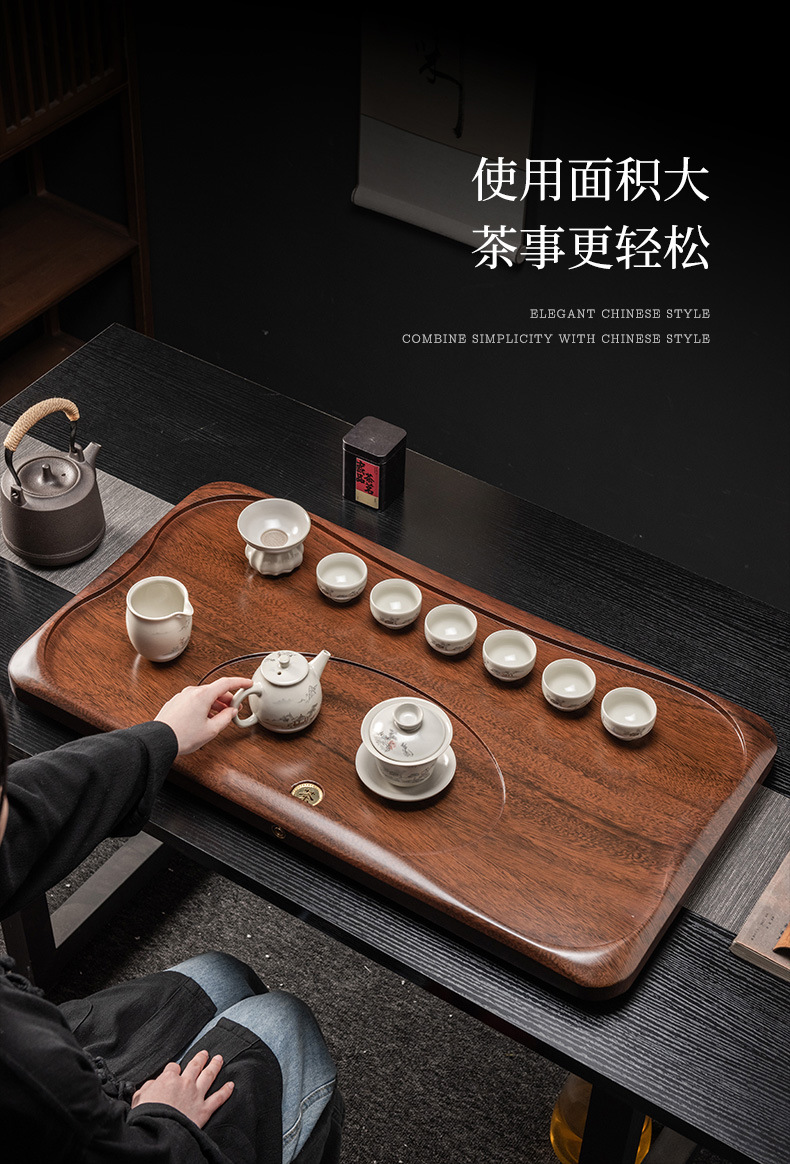 茶盘家用胡桃色实木茶台2024新款排水式轻奢现代一体式托盘