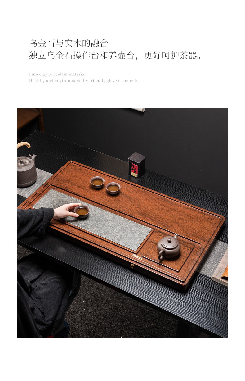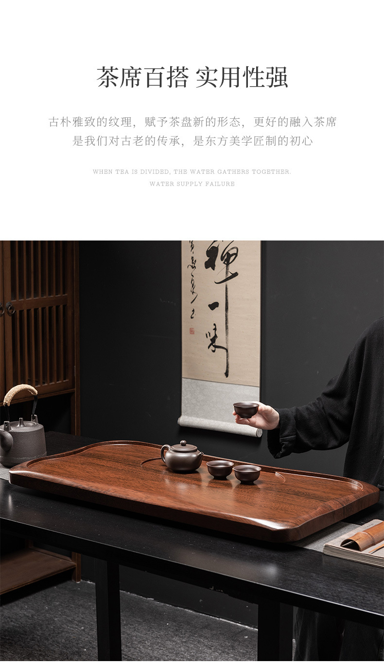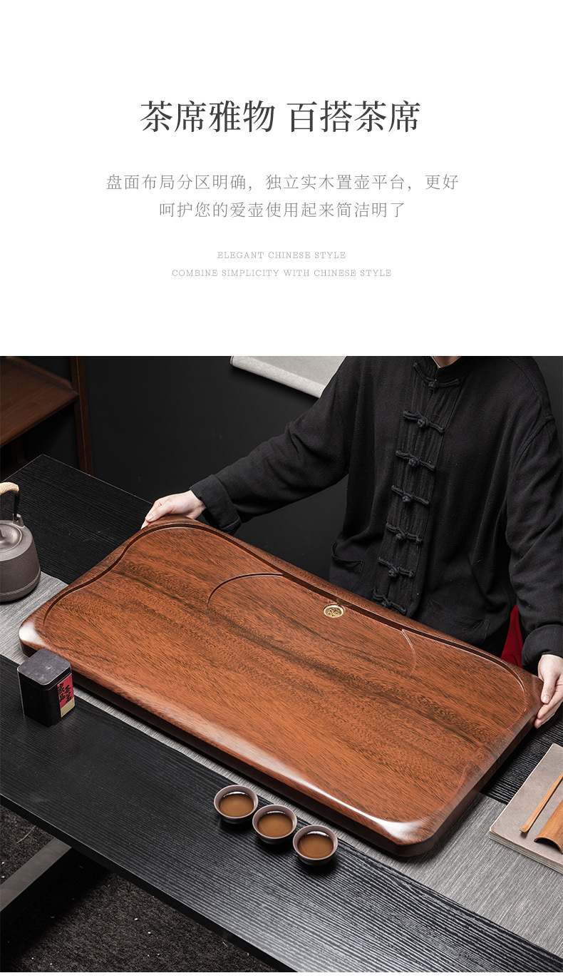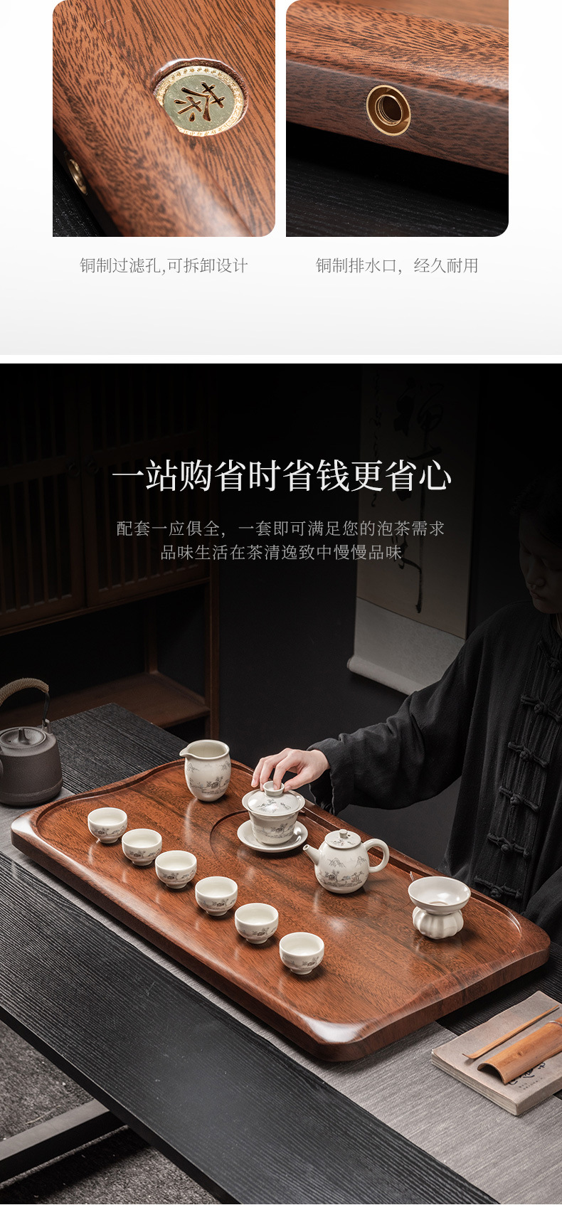 茶盘家用胡桃色实木茶台2024新款排水式轻奢现代一体式托盘