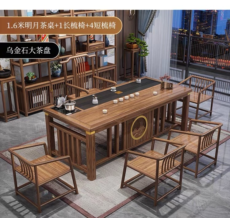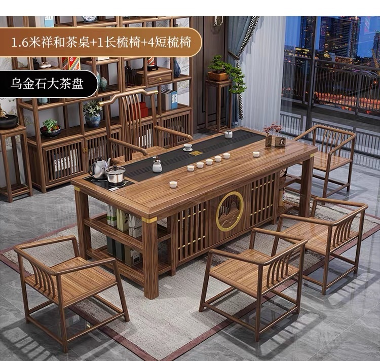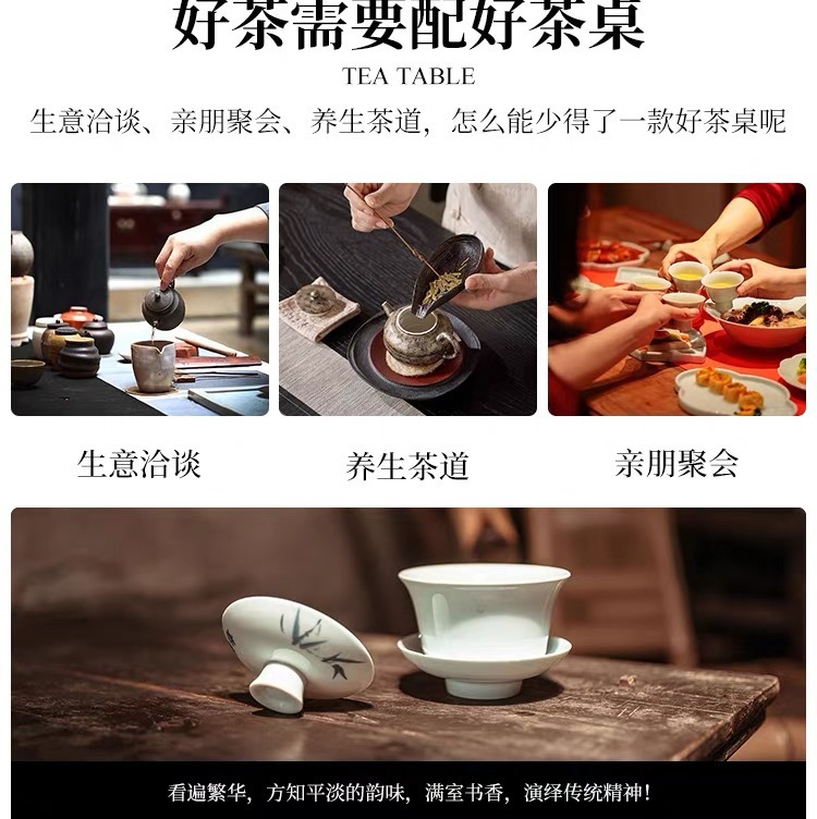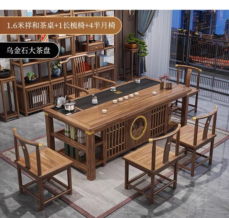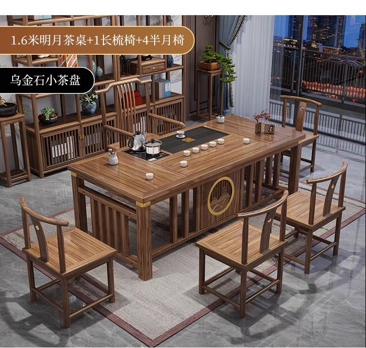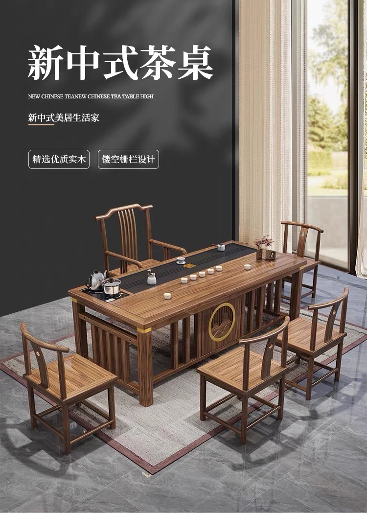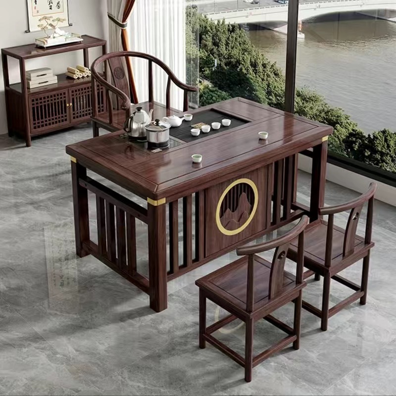 新中式阳台桌椅组合实木功夫茶台茶桌一体套家用泡茶茶具全套跨境