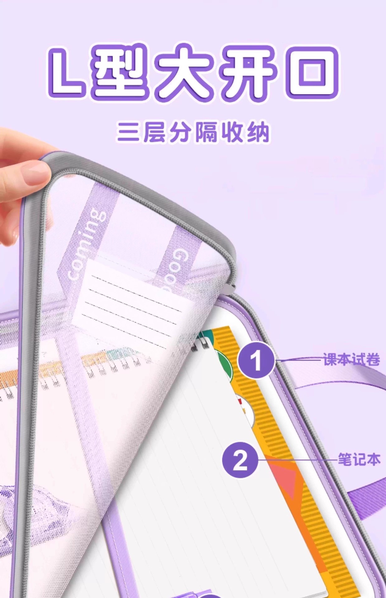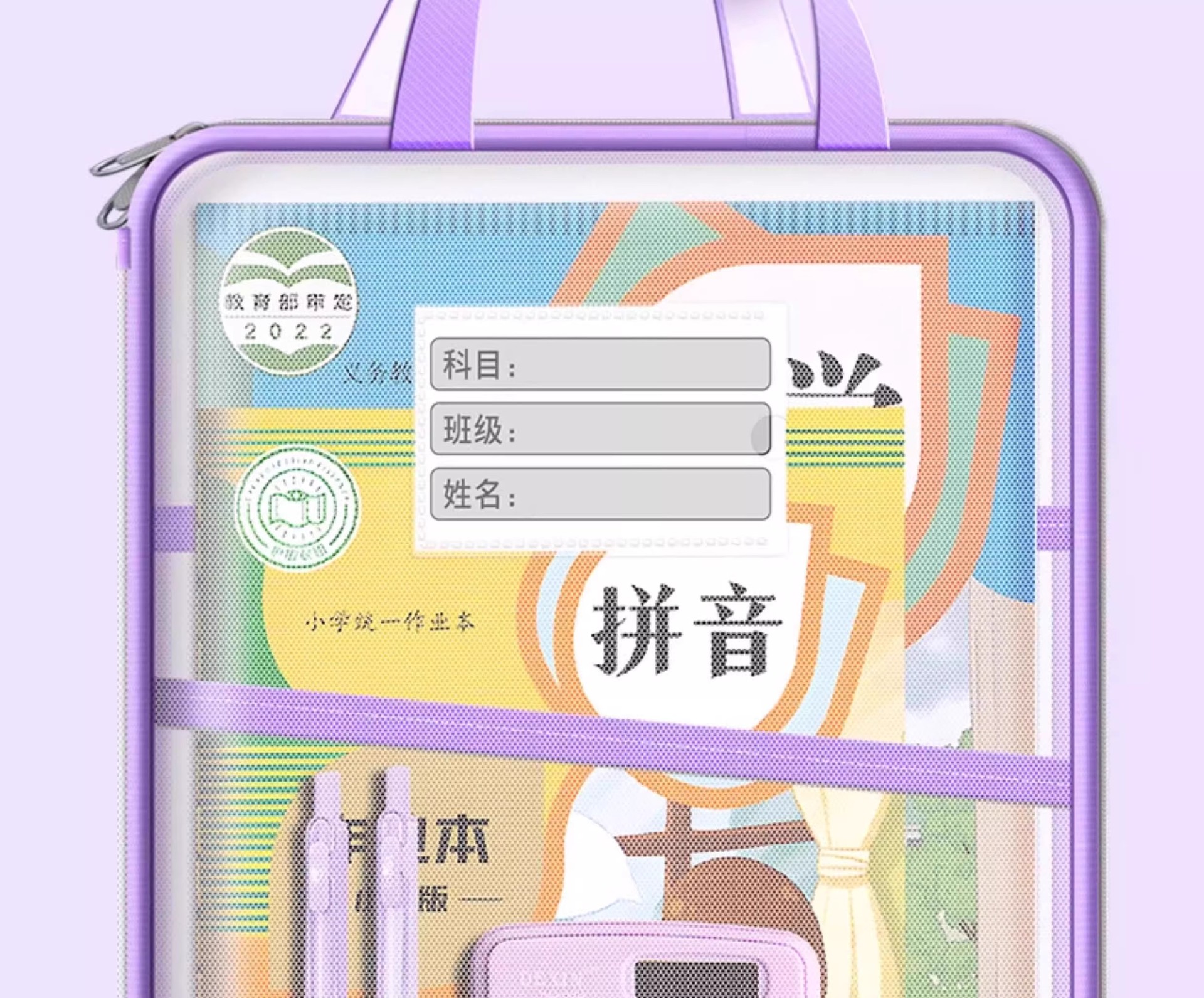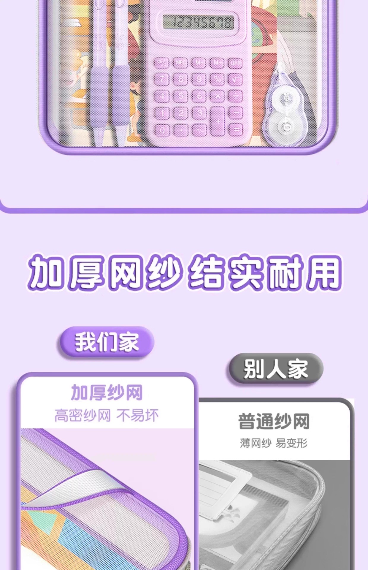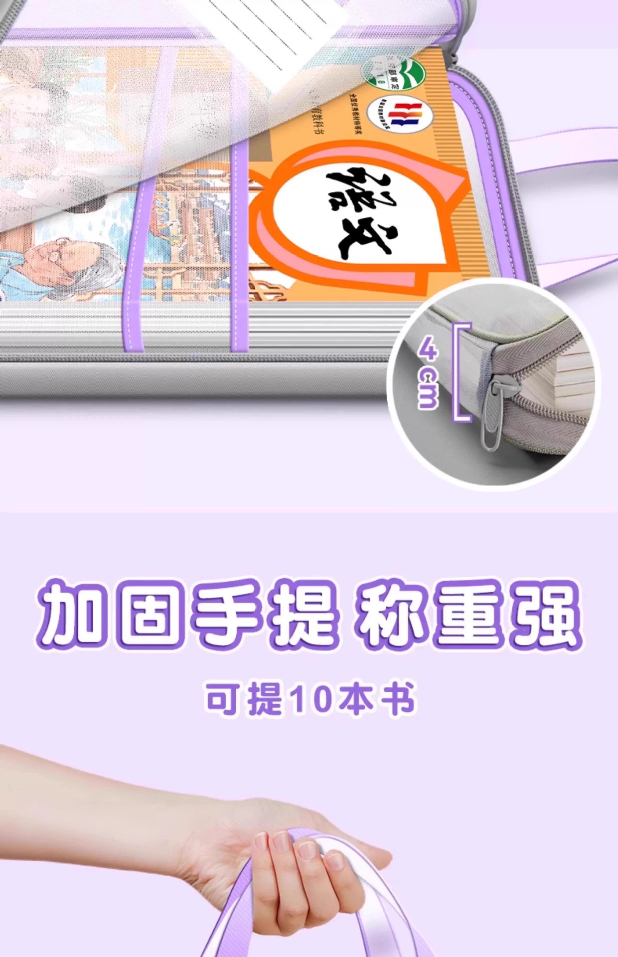 型科目分类袋手提透明文件袋拉链式网纱大开口学生拎书袋考试袋初