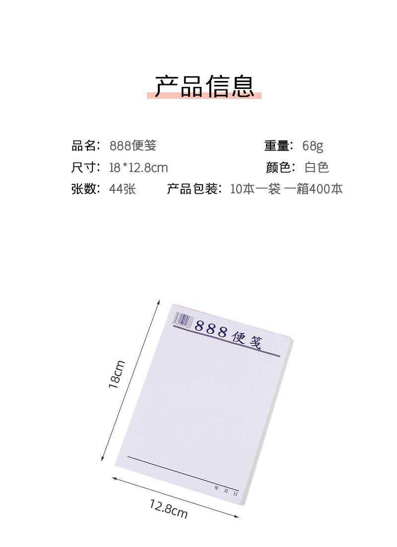 办公用品 888便笺白色易撕便签本记事本空白草稿纸便签纸文具批发