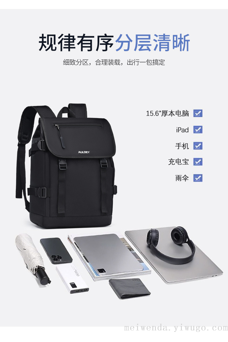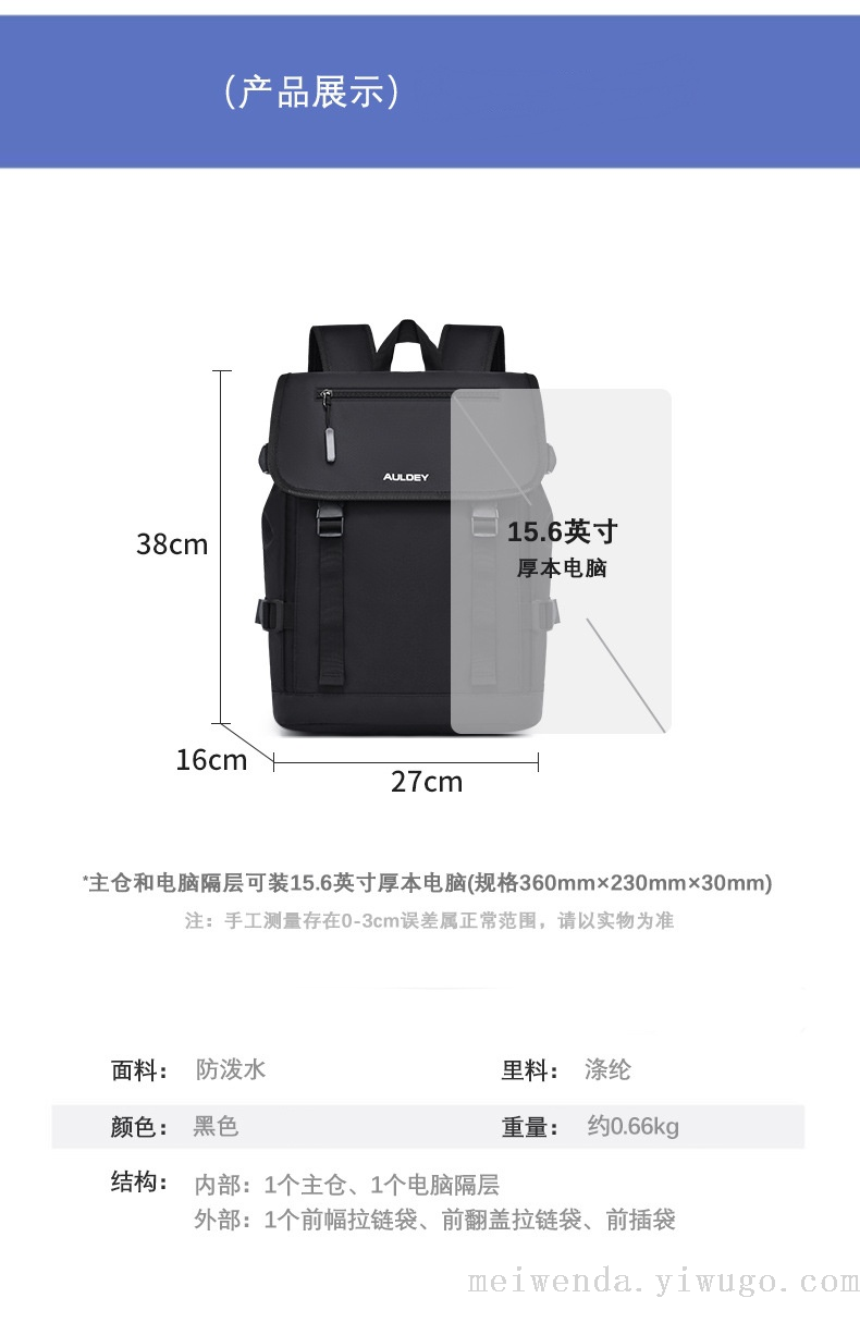 一件代发新款时尚商务休闲双肩包大容量便携耐磨学生书包