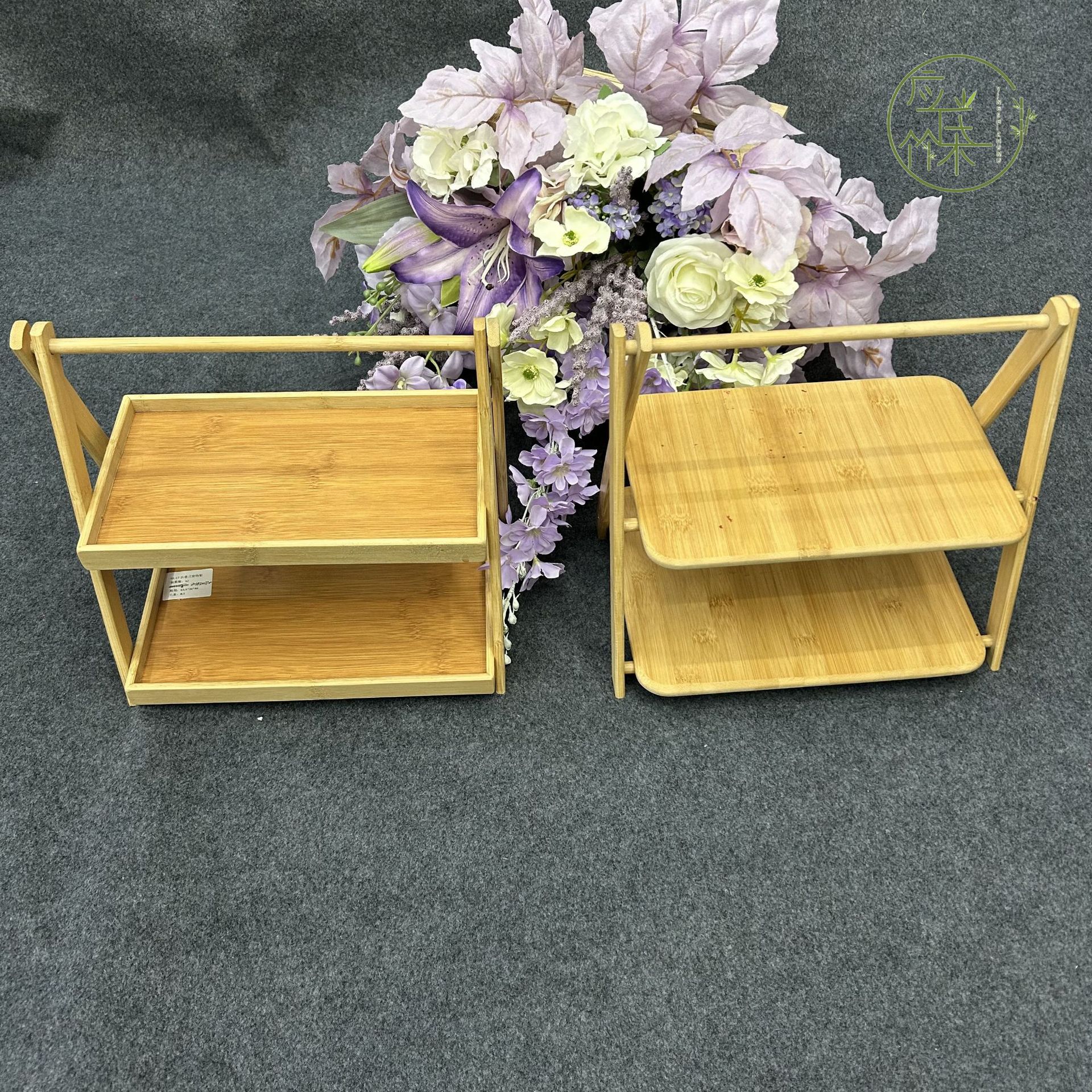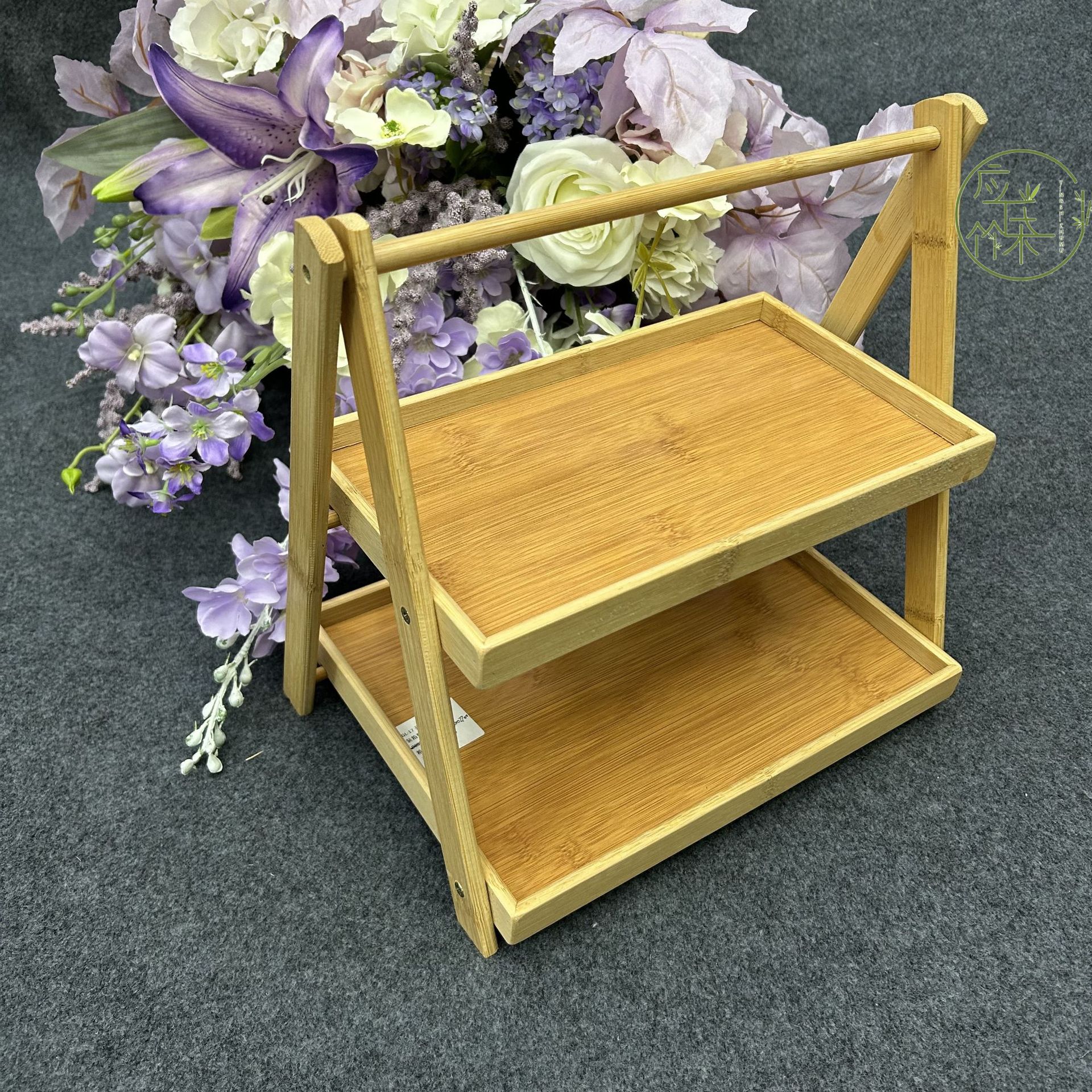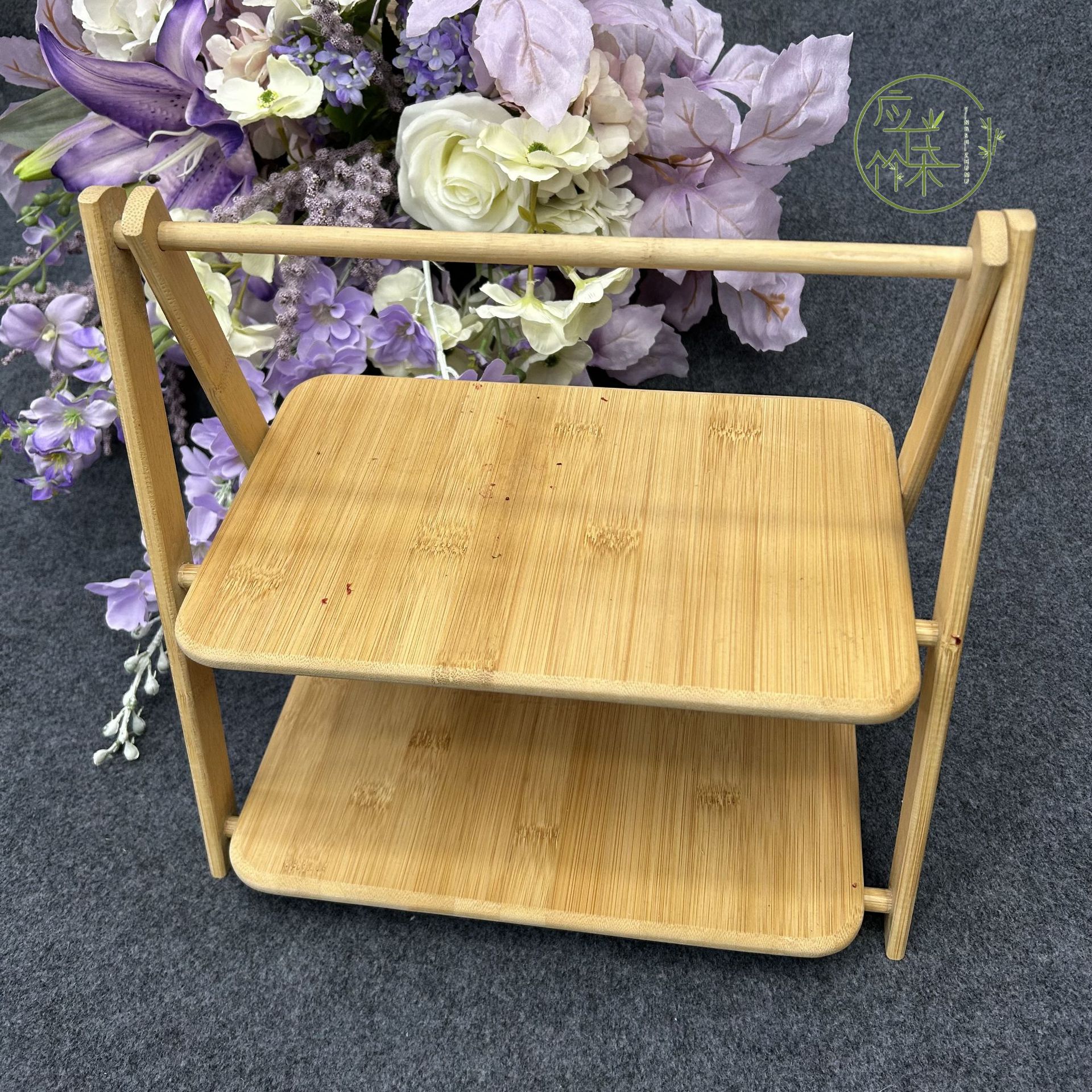 竹木双层寿司纸杯蛋糕架手提式木质甜点展示架甜点桌火锅寿司置物