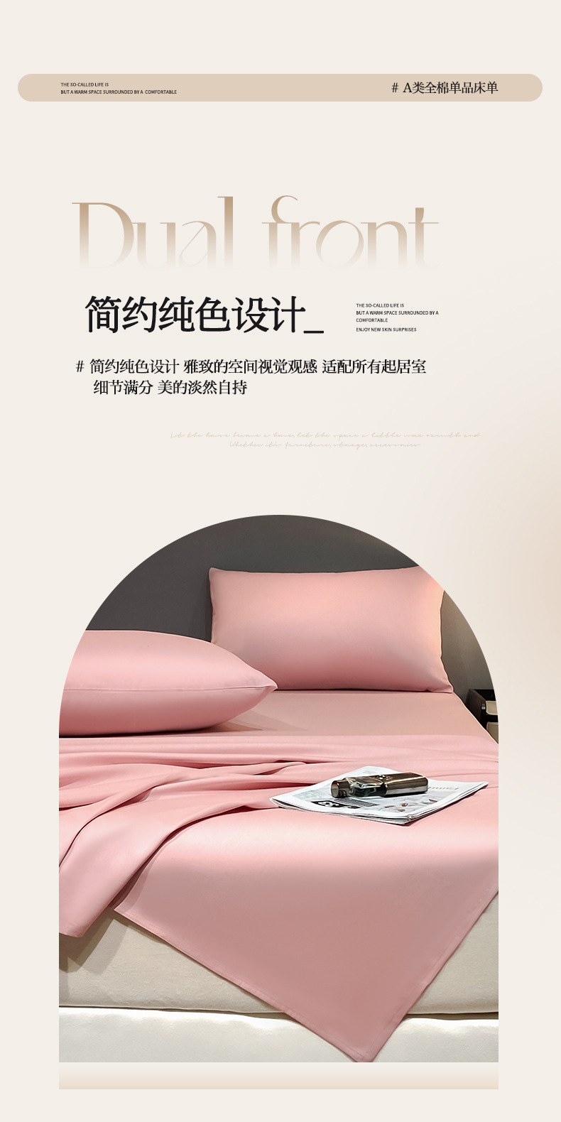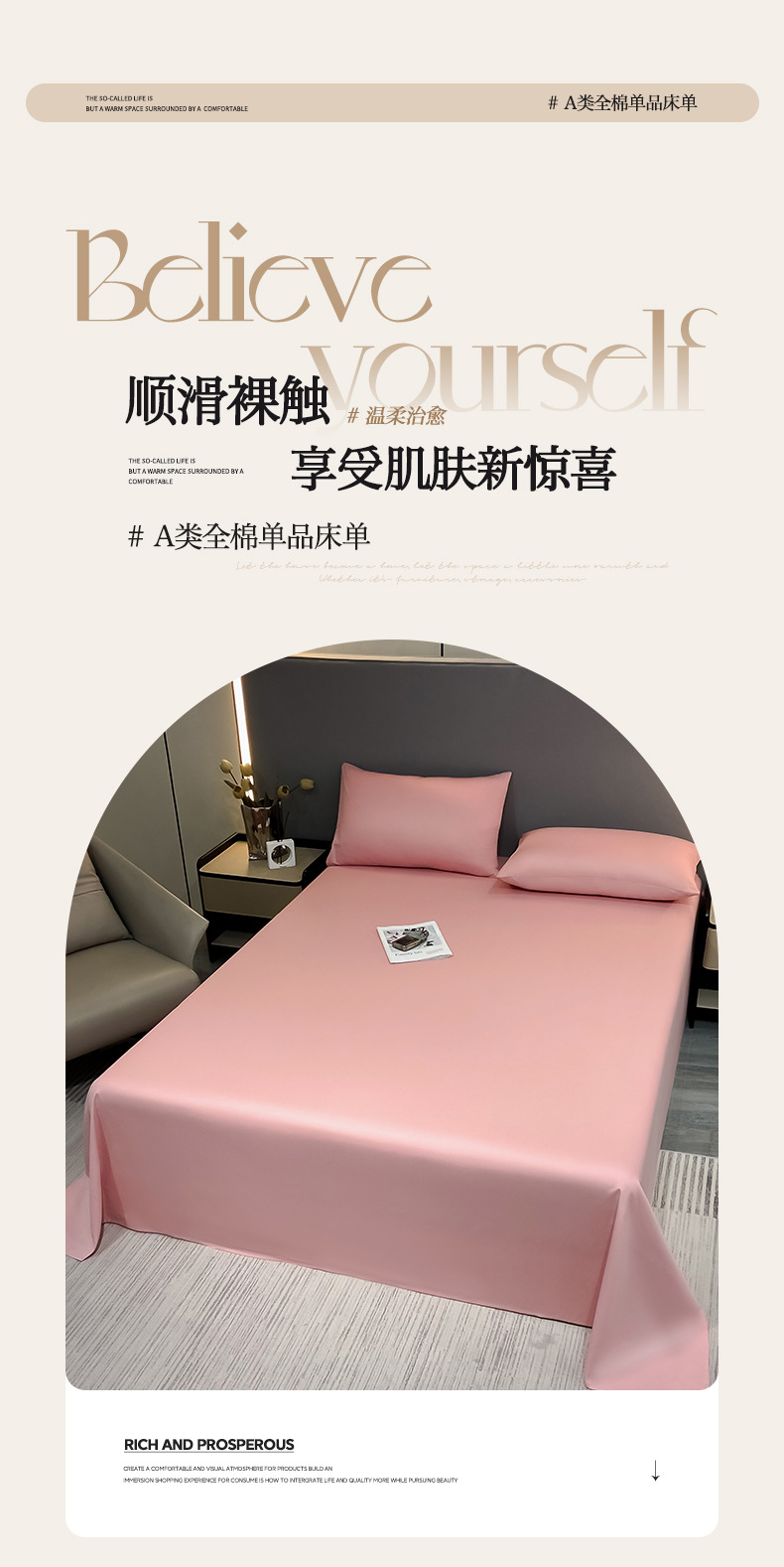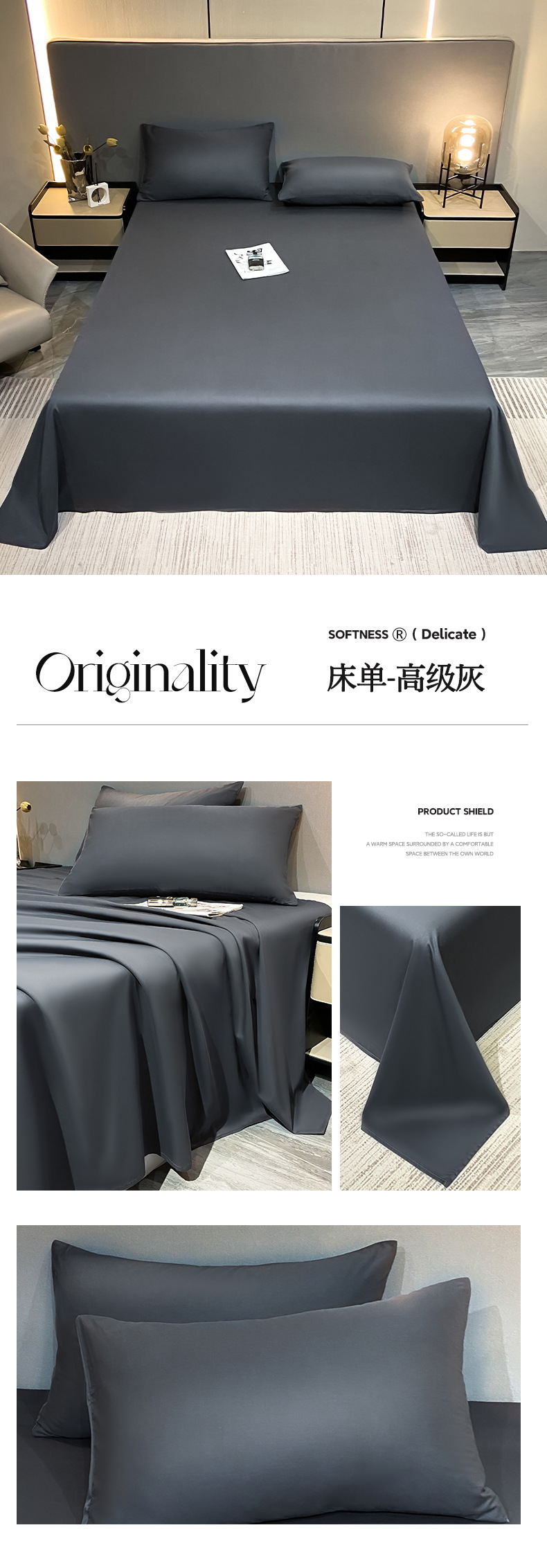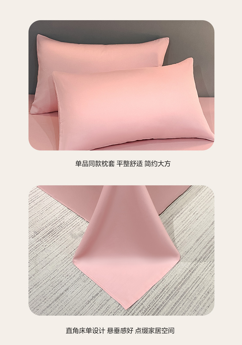 A类纯色60支长绒棉贡缎简约全棉床单被套纯棉枕套单品棉床上用品