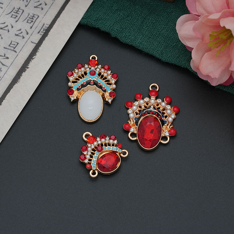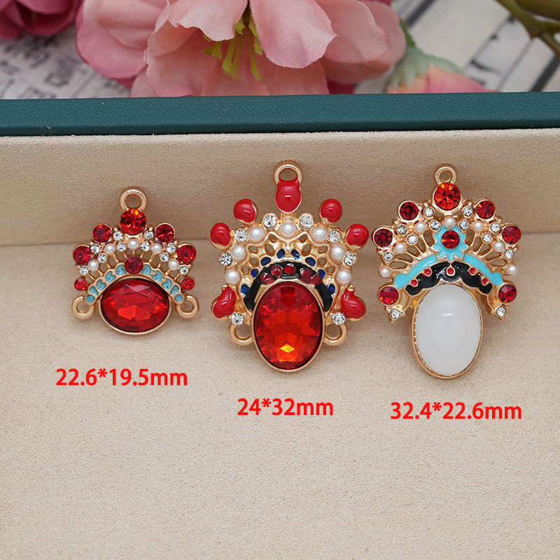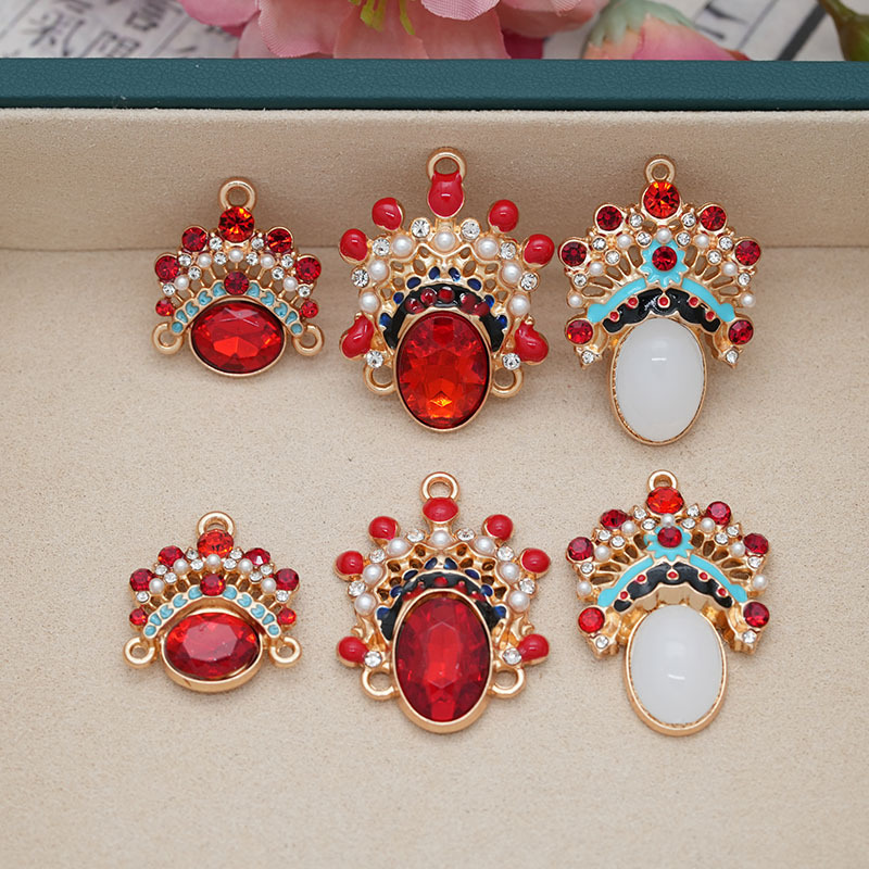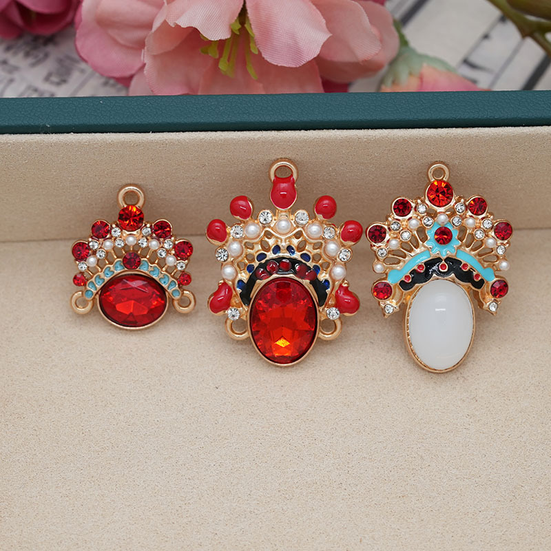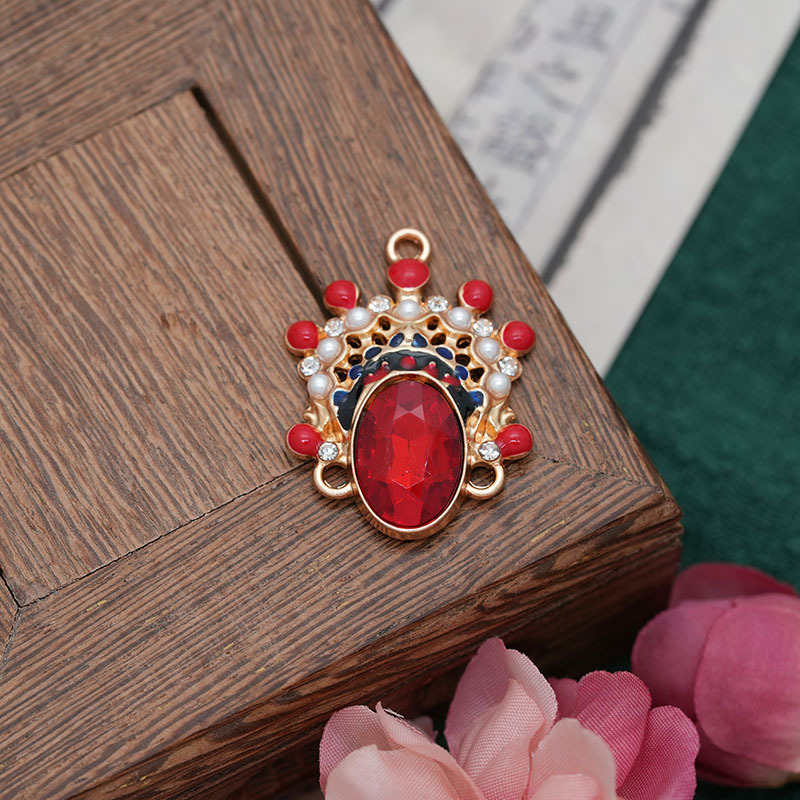 国风复古红刀马旦京剧脸谱项链耳环配件新娘胸针diy饰品合金配件