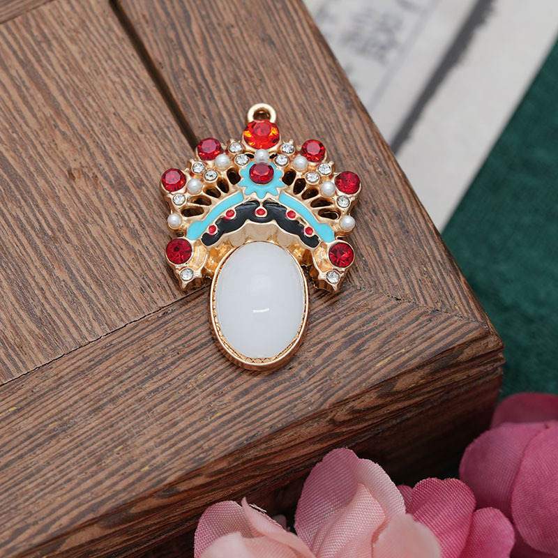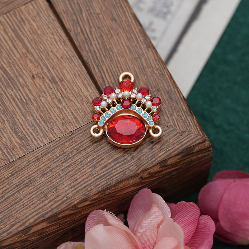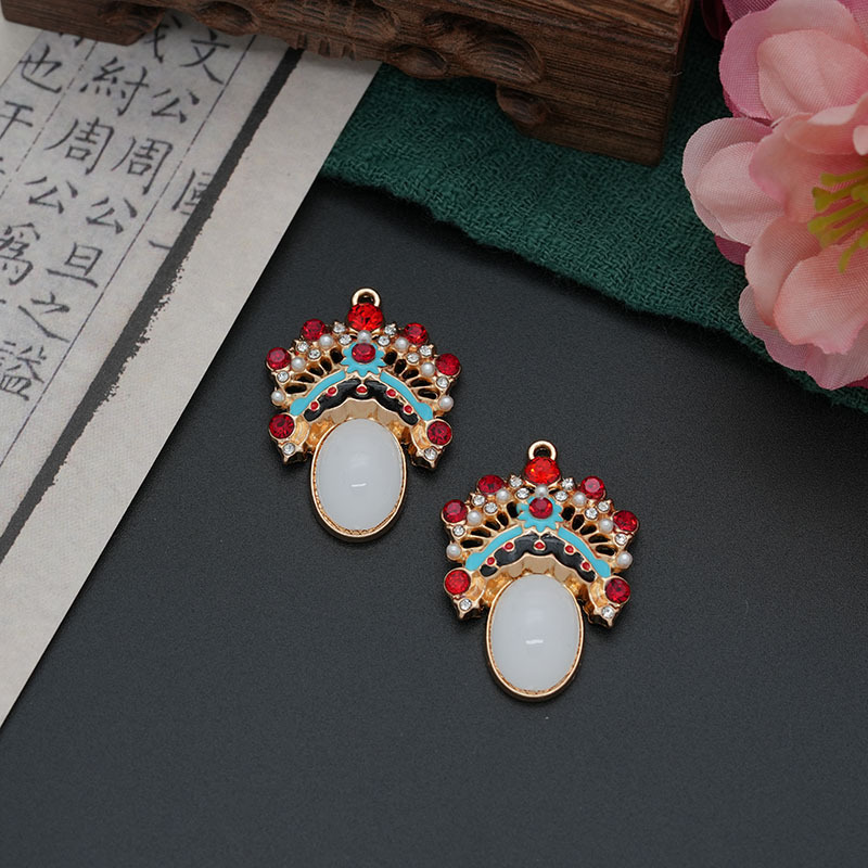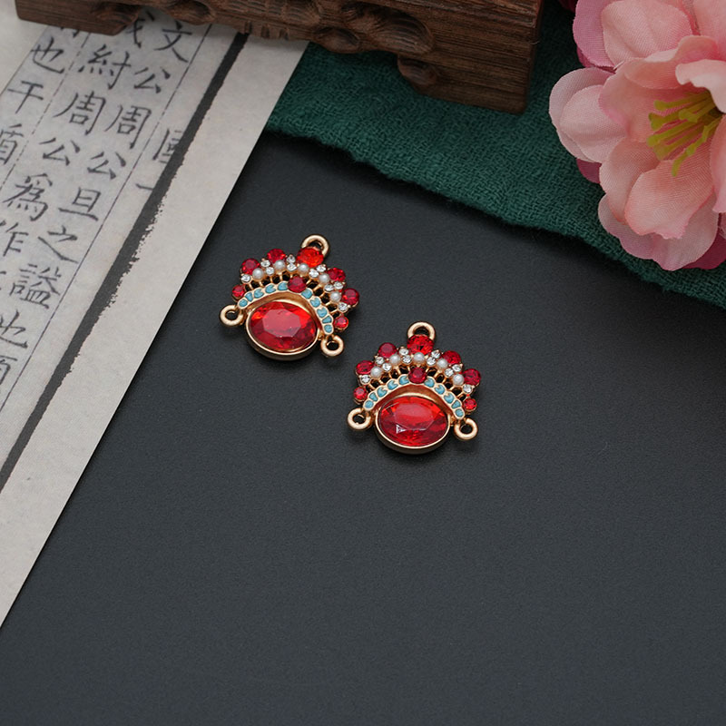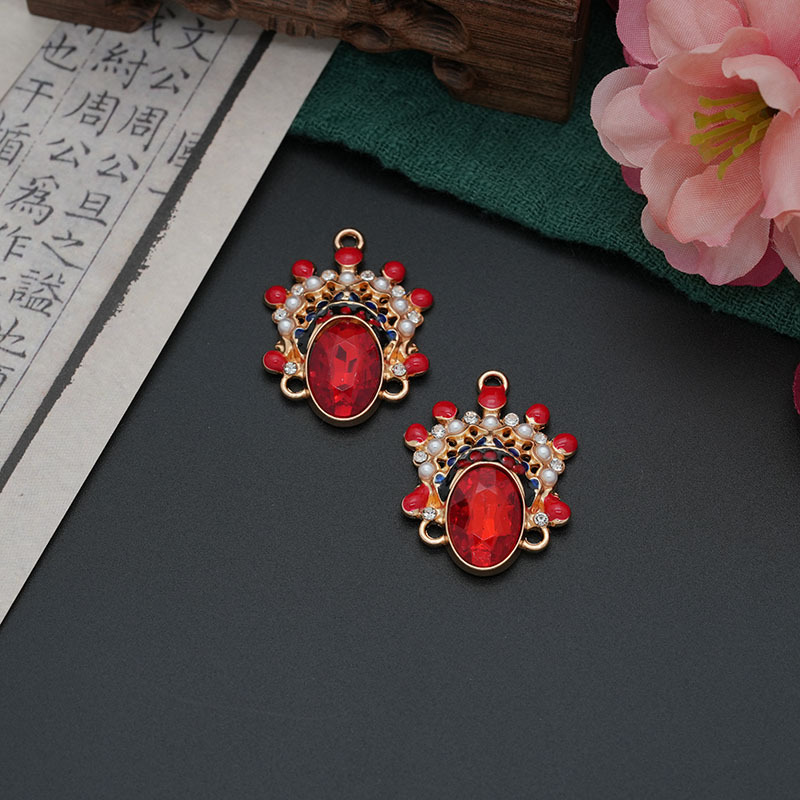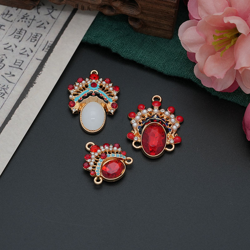 国风复古红刀马旦京剧脸谱项链耳环配件新娘胸针diy饰品合金配件