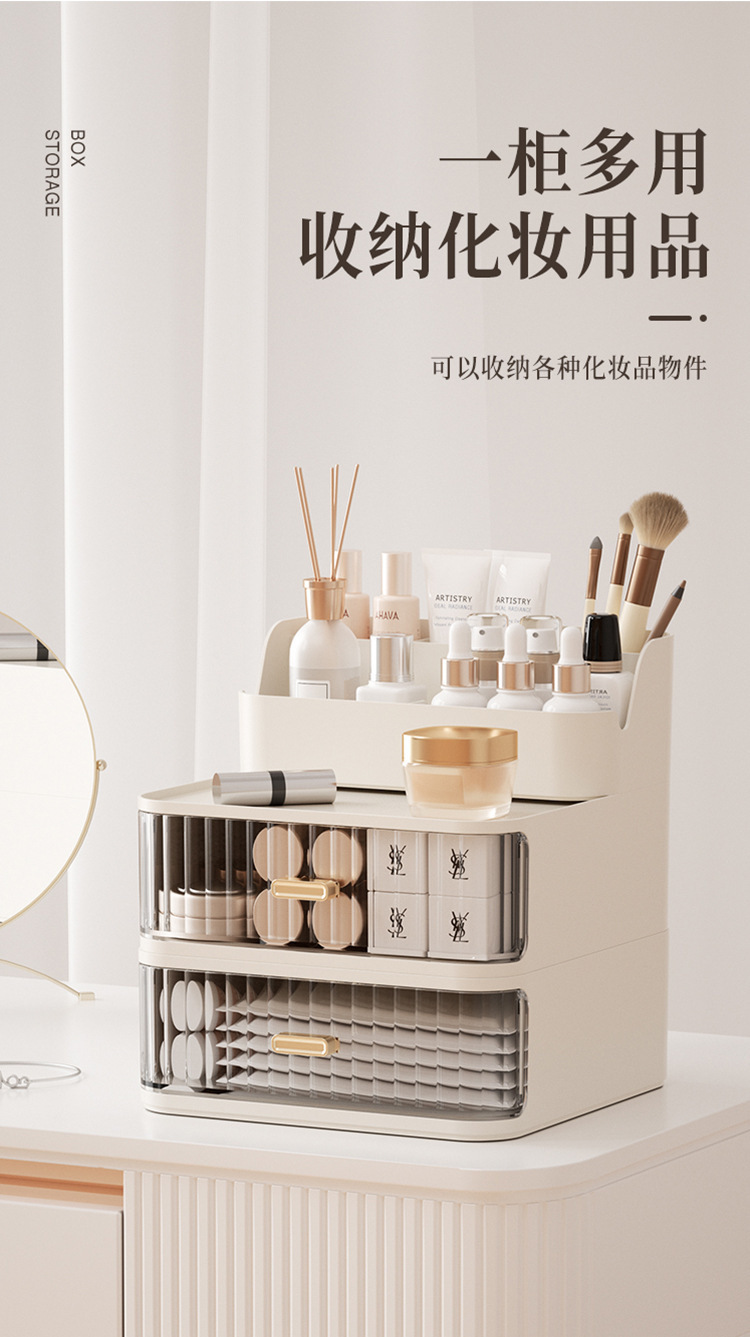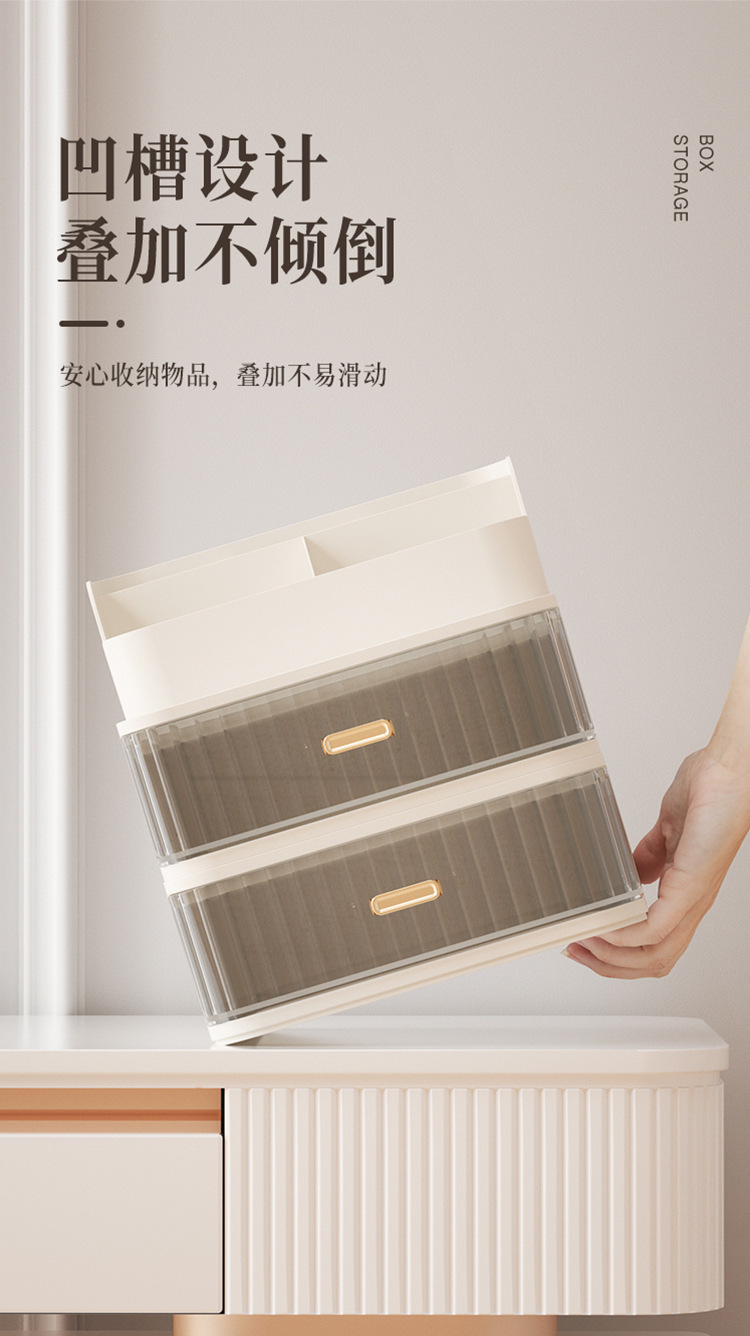 桌面收纳盒宿舍卧室办公书桌杂物置物架储物柜抽屉式文具整理盒子