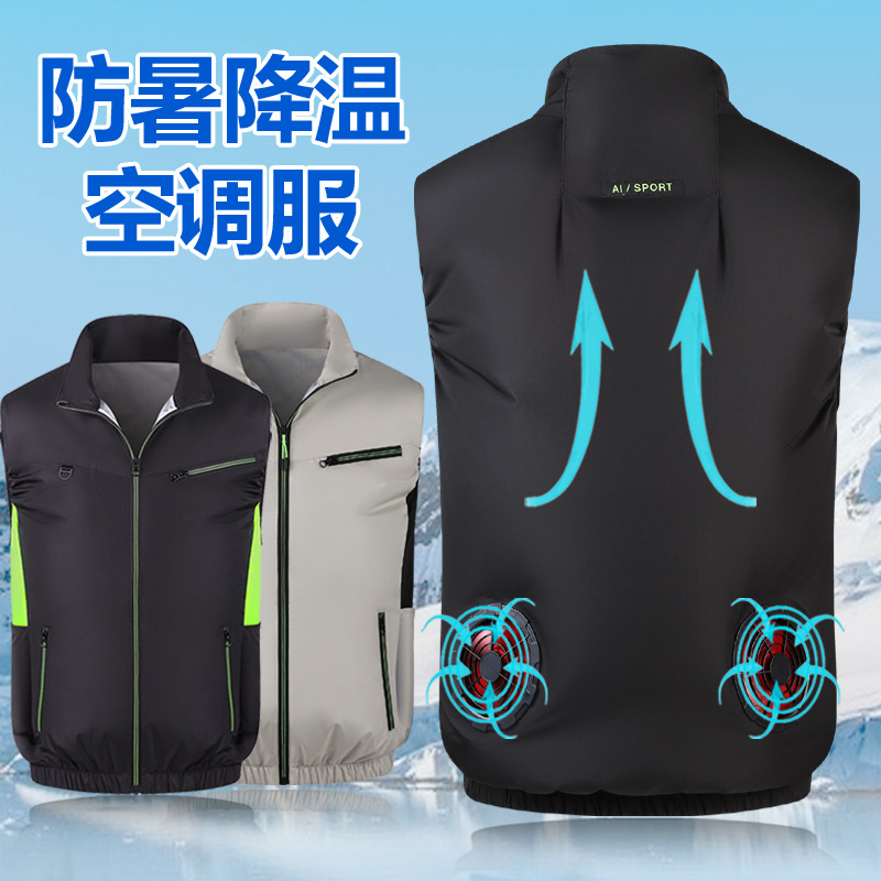新款无袖风扇服空调服夏季户外防暑降温带风扇的衣服跨境日韩批发
