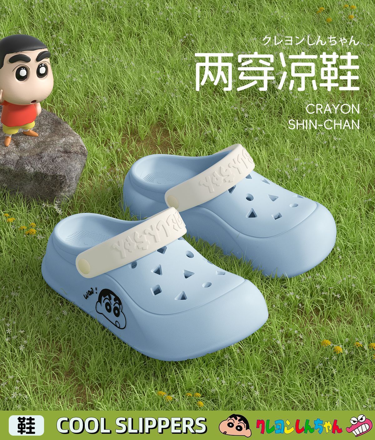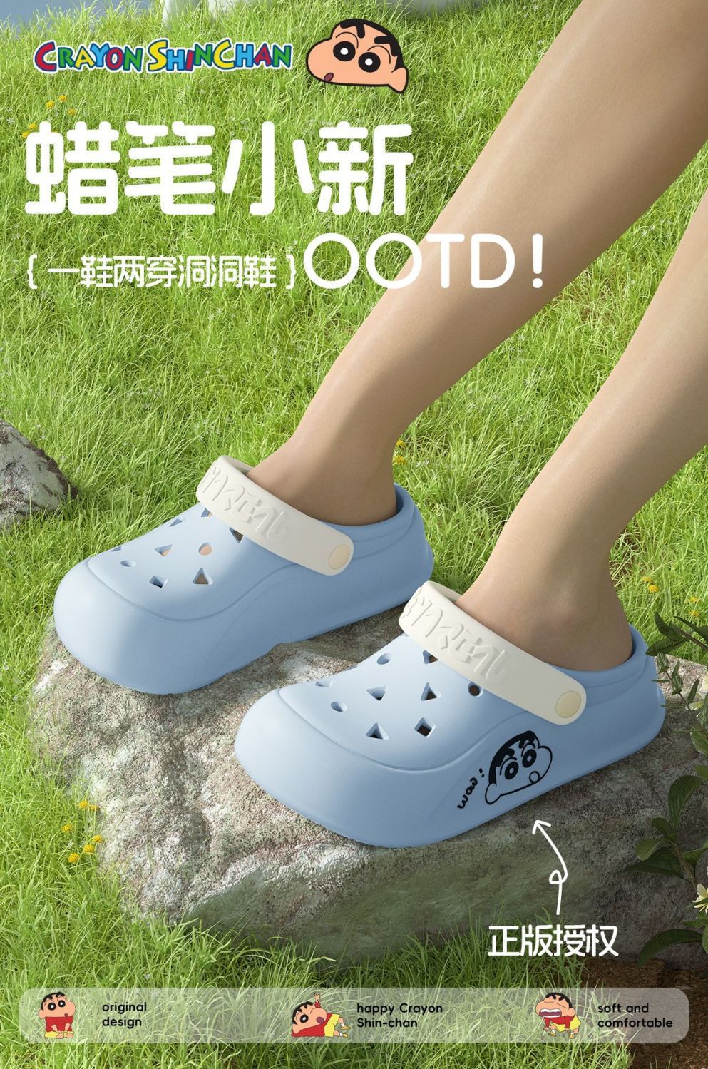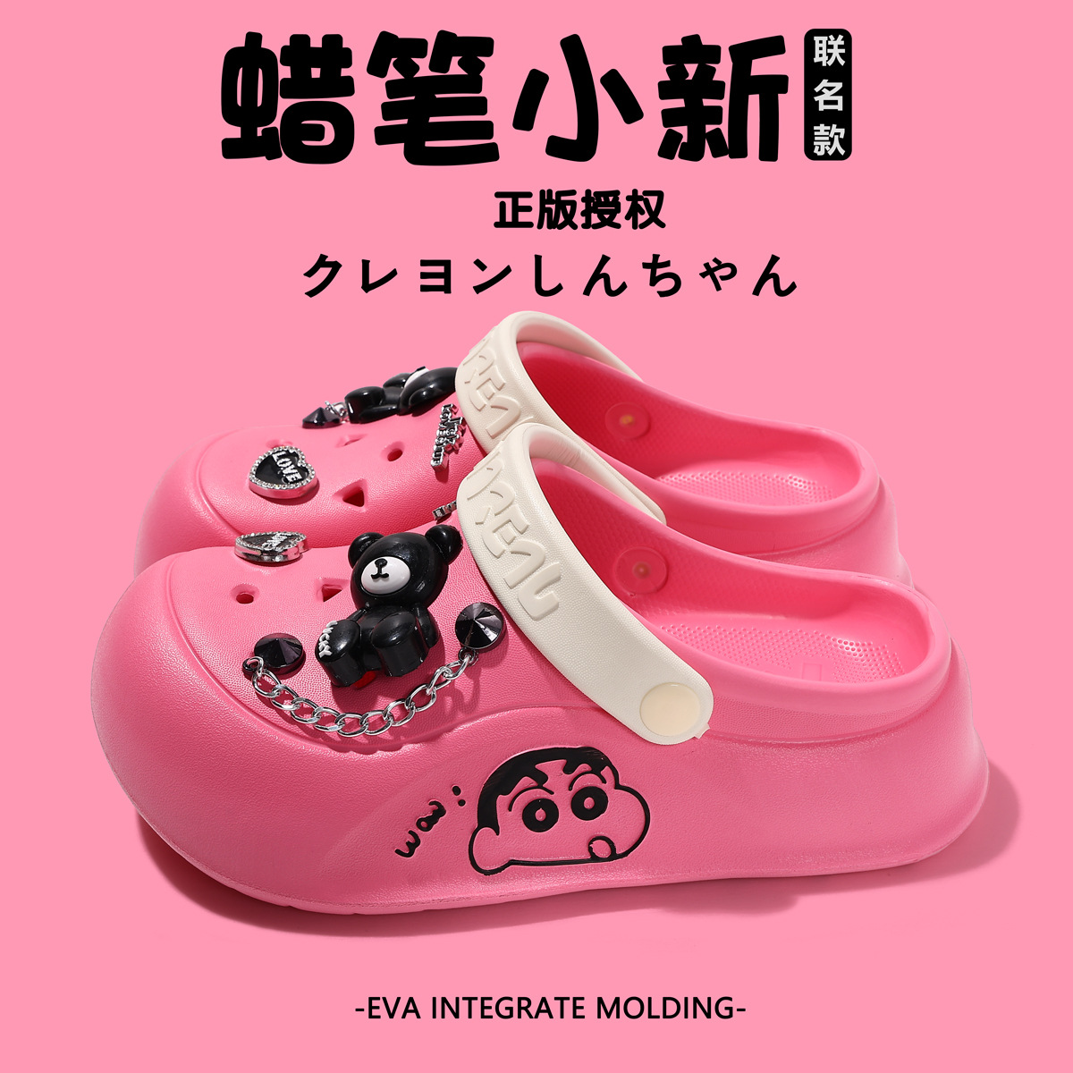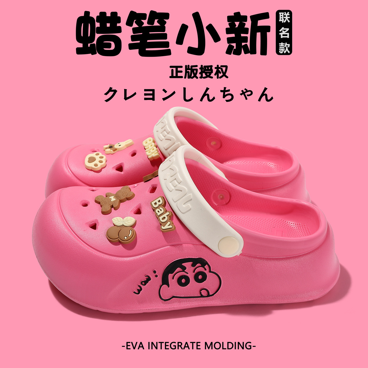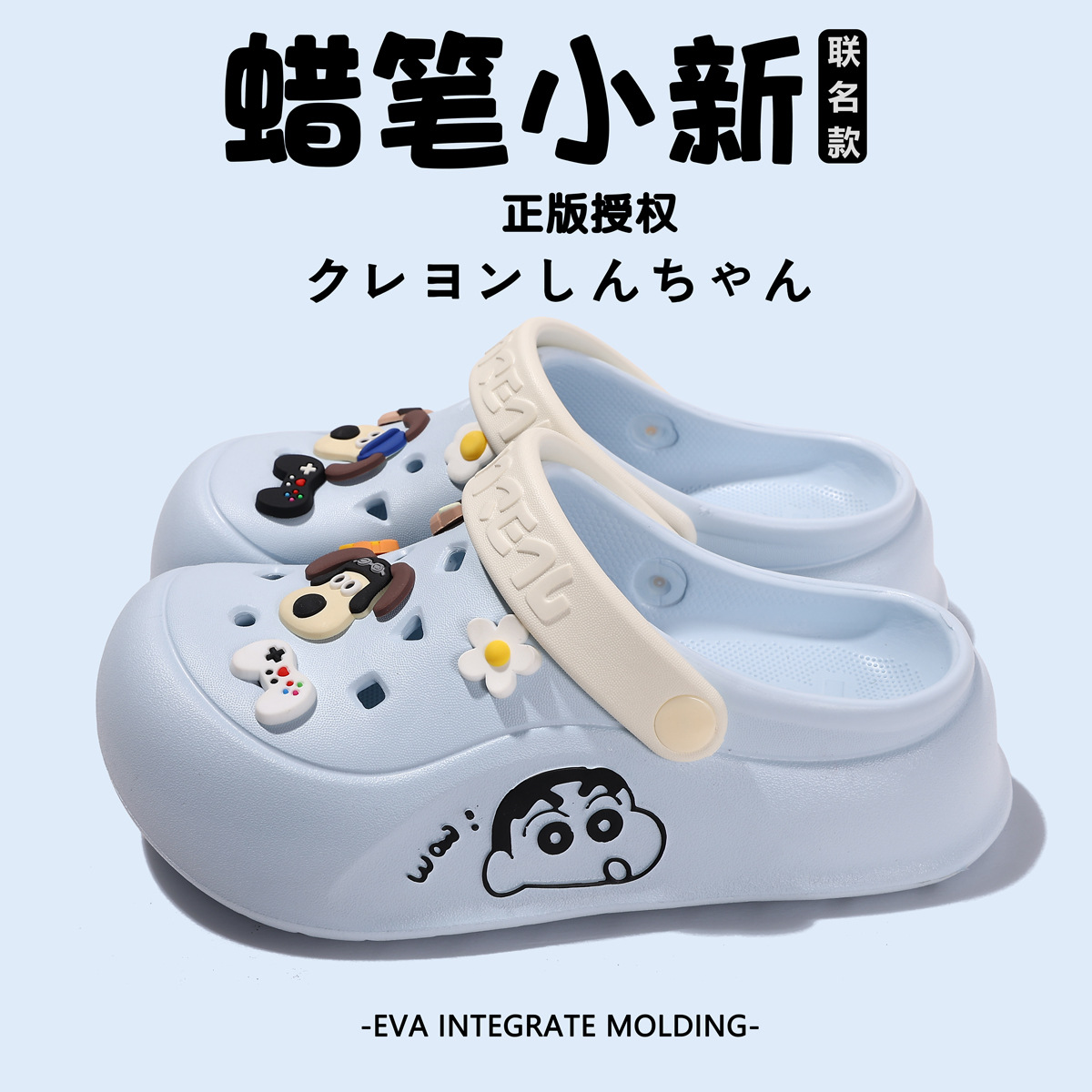 蜡笔小新联名洞洞鞋2025新款超软踩屎感厚底百搭情侣款两穿凉拖鞋