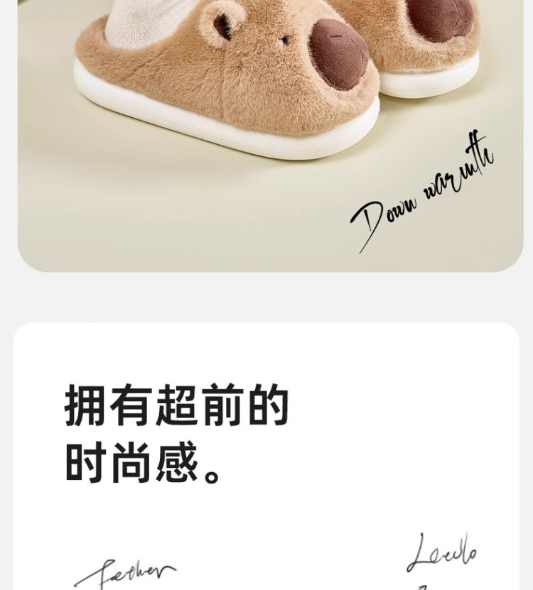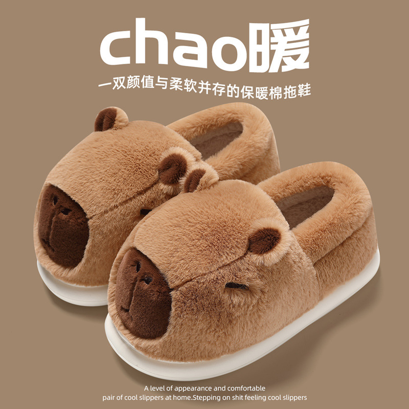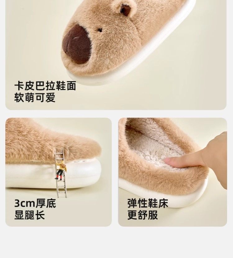 可爱卡皮巴拉棉拖鞋女款冬季新款外穿厚底居家棉鞋女保暖月子棉鞋