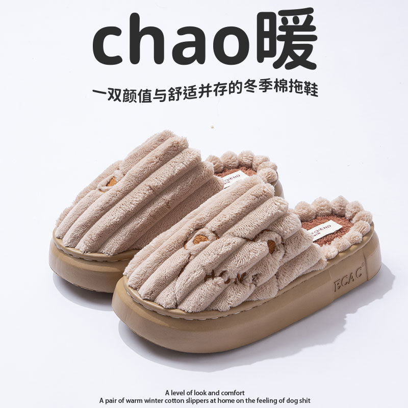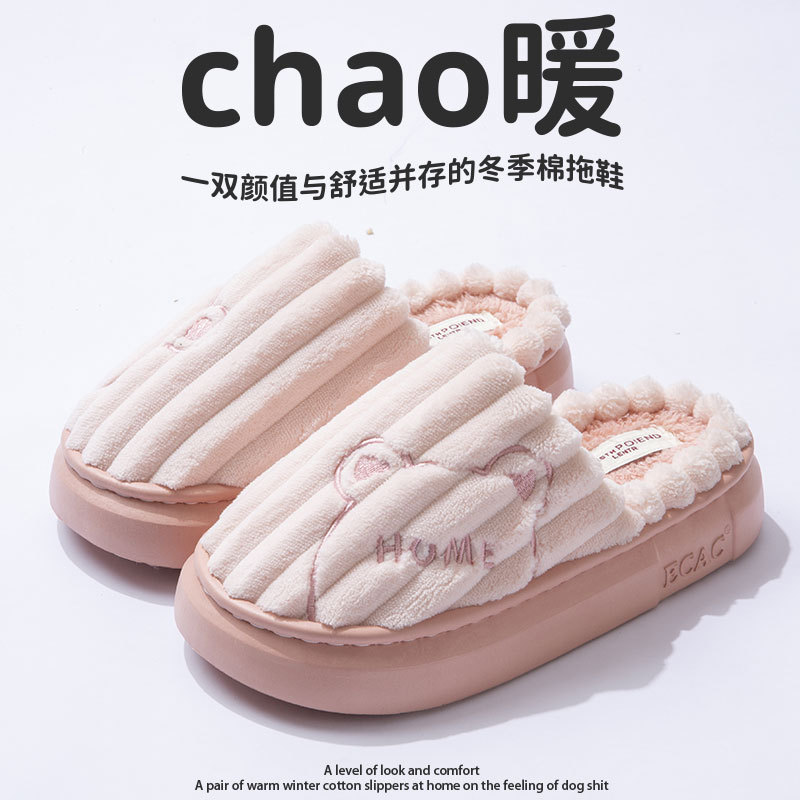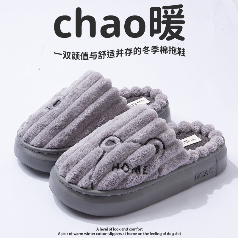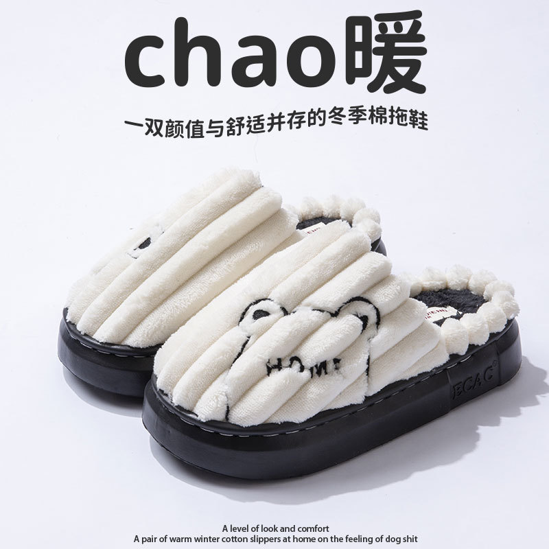 棉拖鞋女冬季2024新款室内居家软底防滑情侣冬天加绒保暖毛毛棉拖
