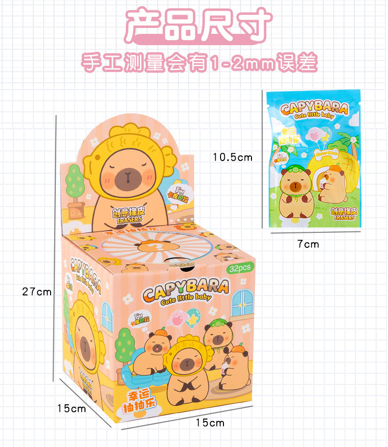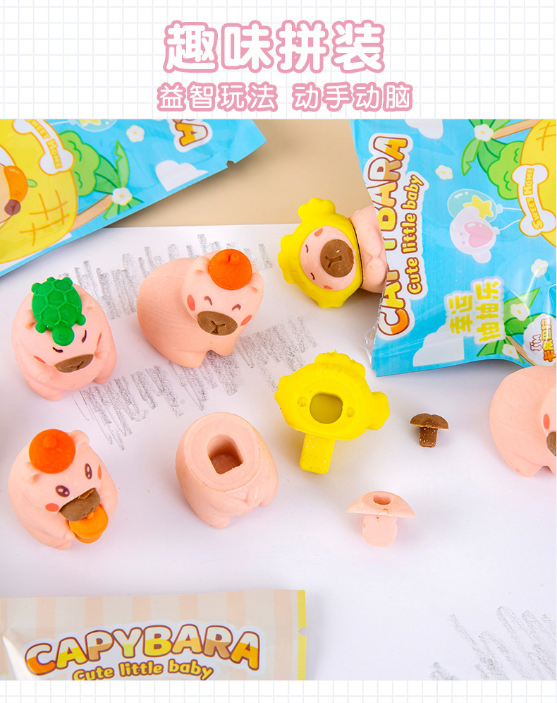 卡皮巴拉惊喜盲袋橡皮擦学生可爱水豚造型橡皮儿童学习文具奖品
