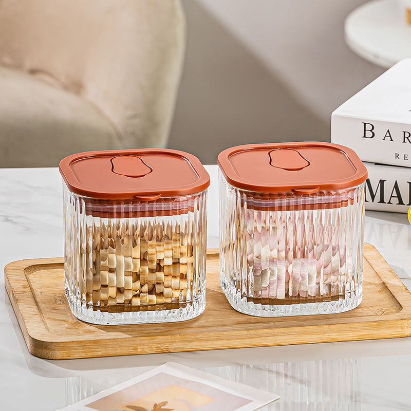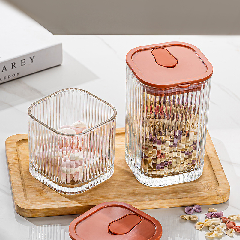 厂家批发透明玻璃密封罐竹盖茶叶罐干货杂粮调料储物罐零食糖果罐