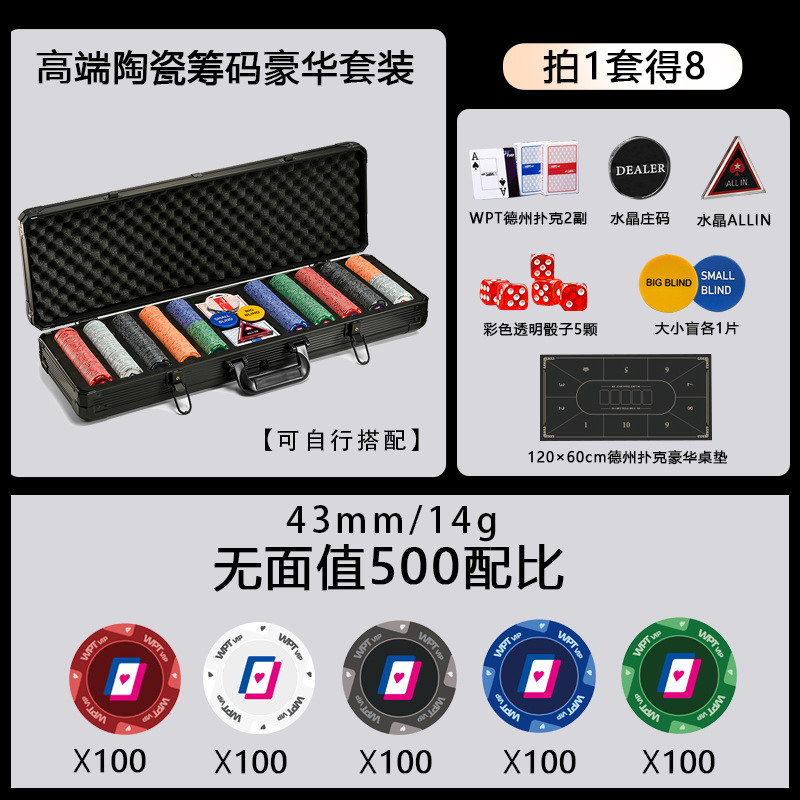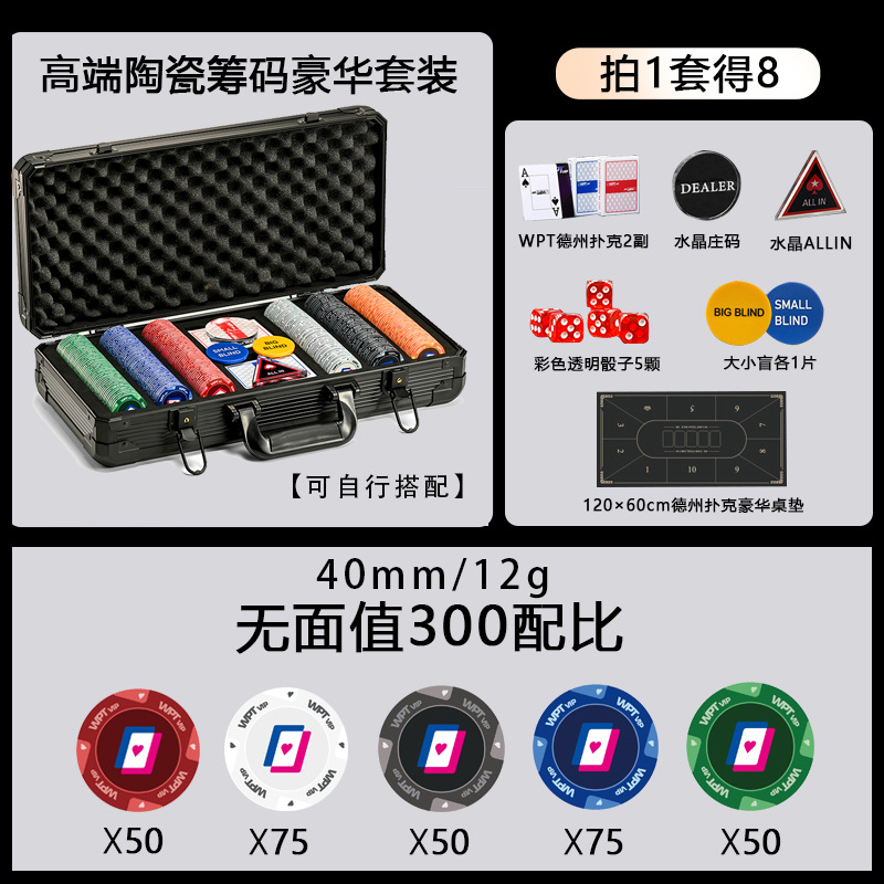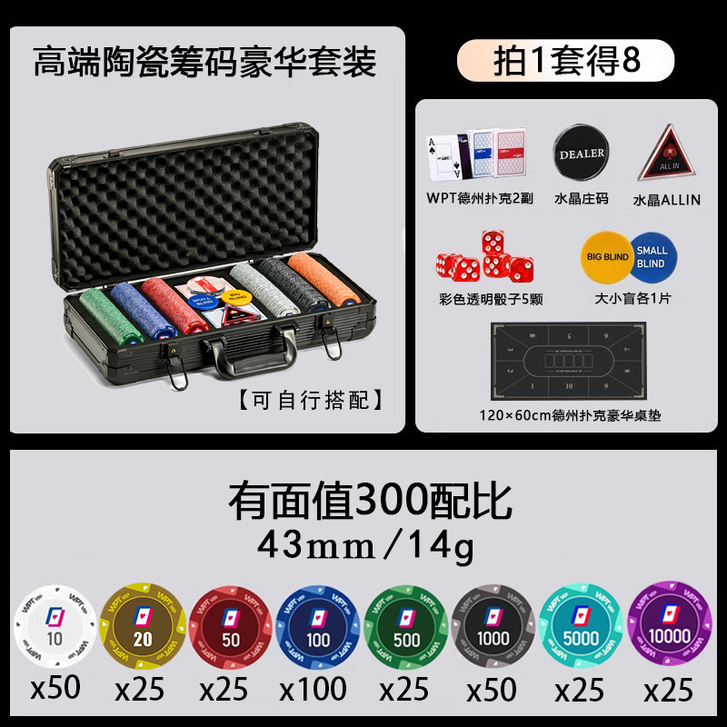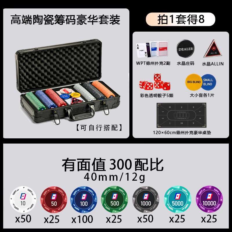 高端陶瓷筹码套装专业棋牌币poker有无面值德扑整套筹码卡K型黑箱